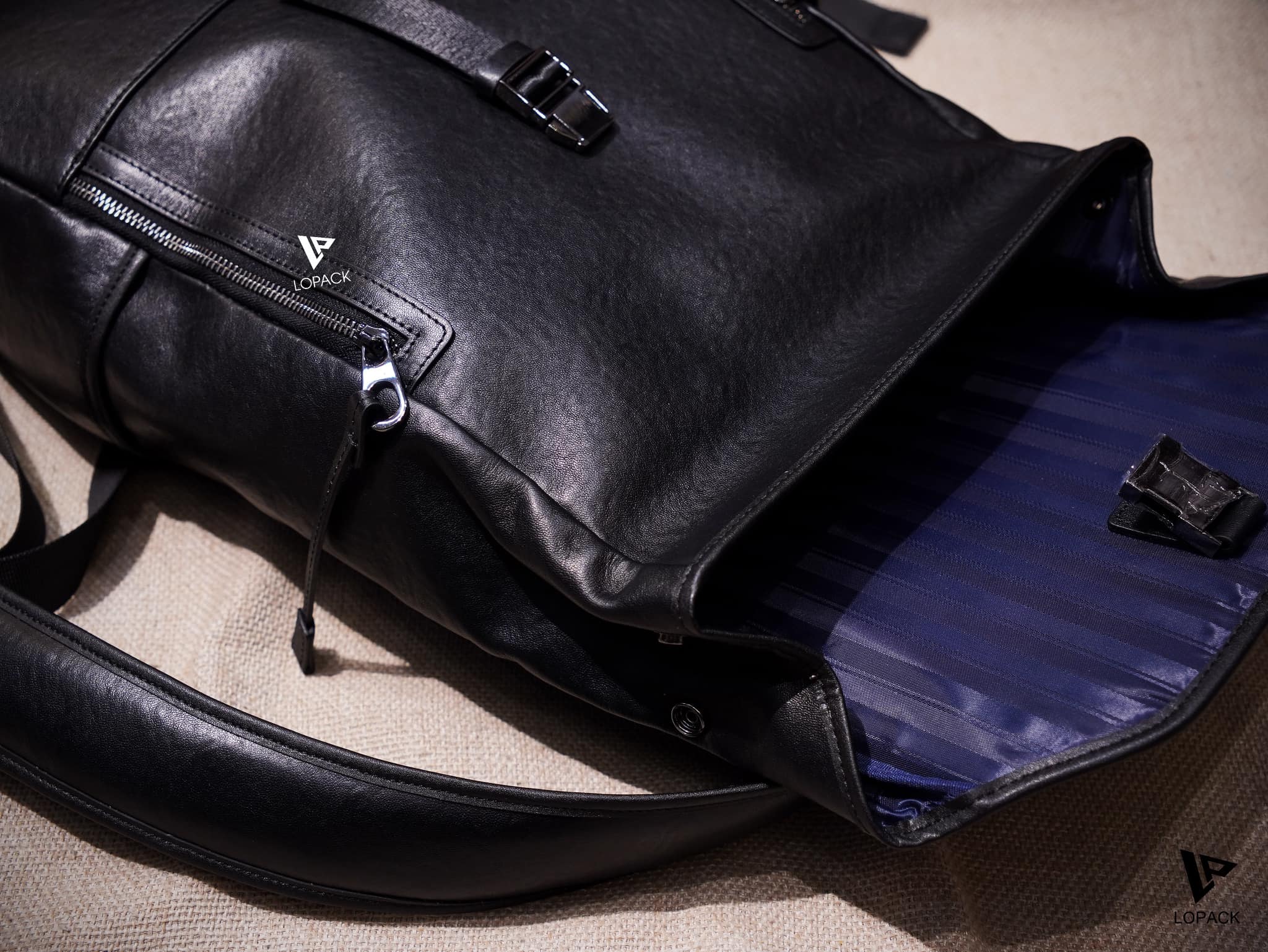 - Màu đen trơn với chất da có độ đanh vừa phải nhưng form túi vẫn mềm.