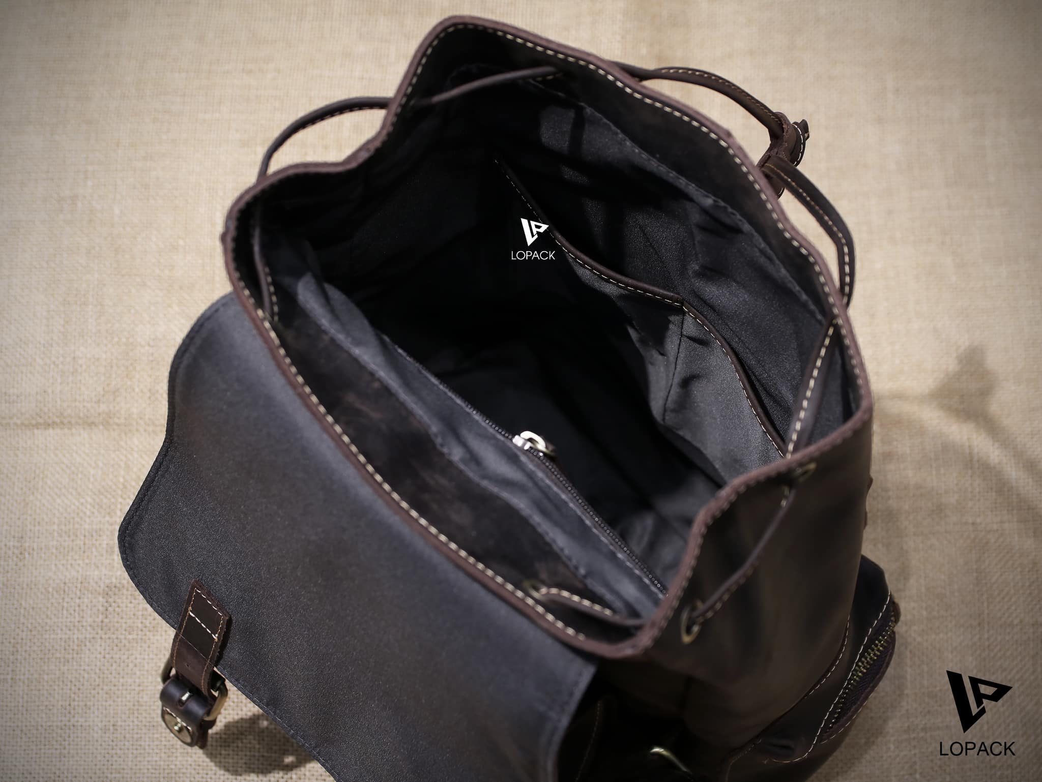 - Miệng giữ bằng dây rút, xung quanh có nhiều ngăn phụ nhỏ đựng phụ kiện.