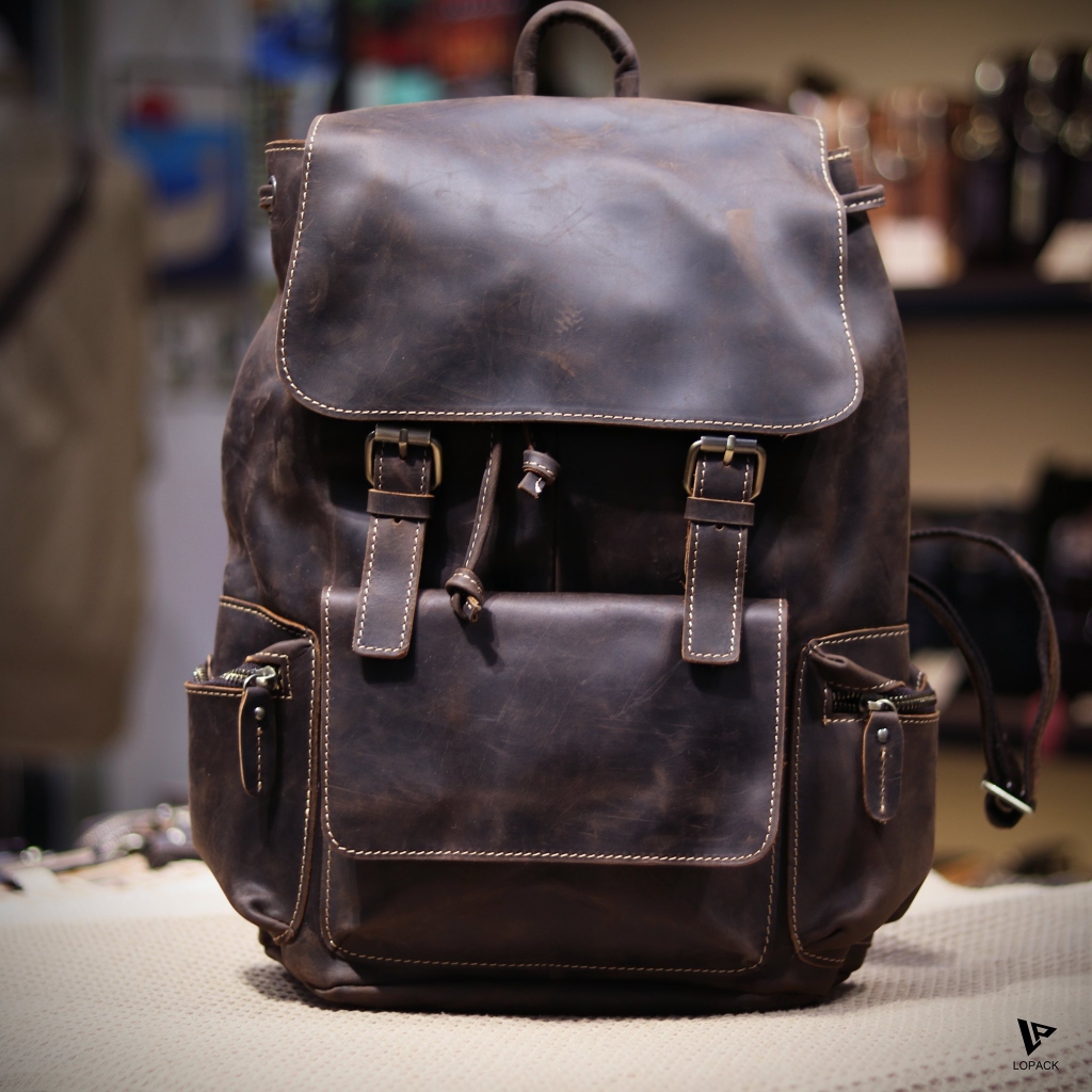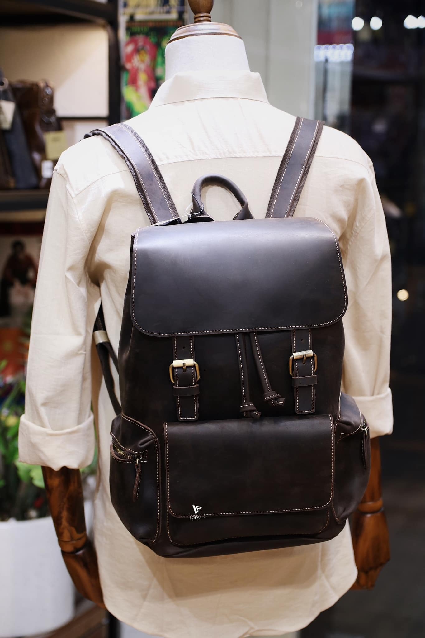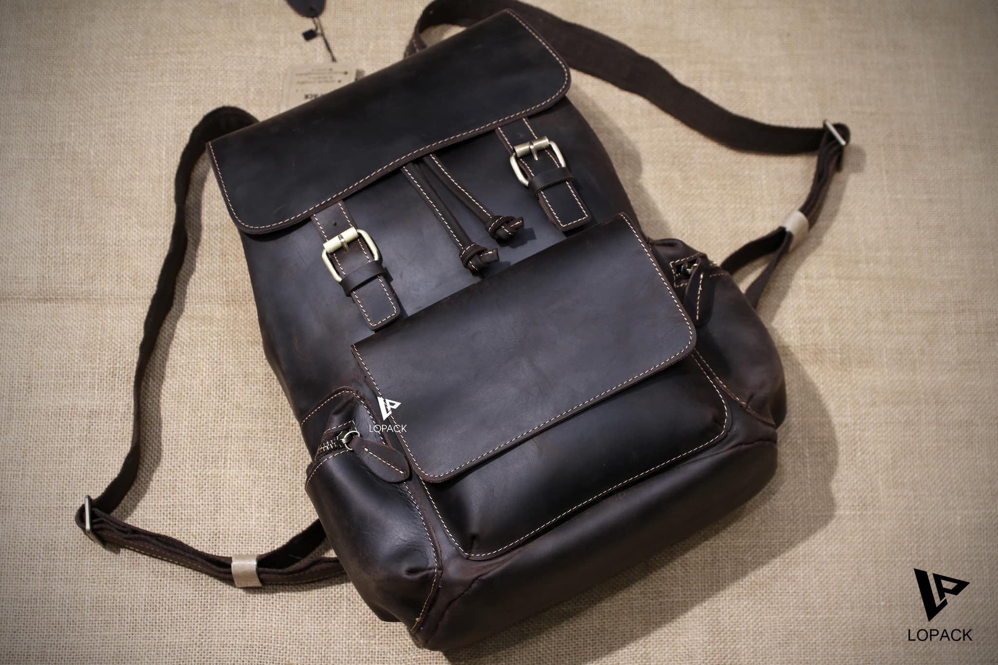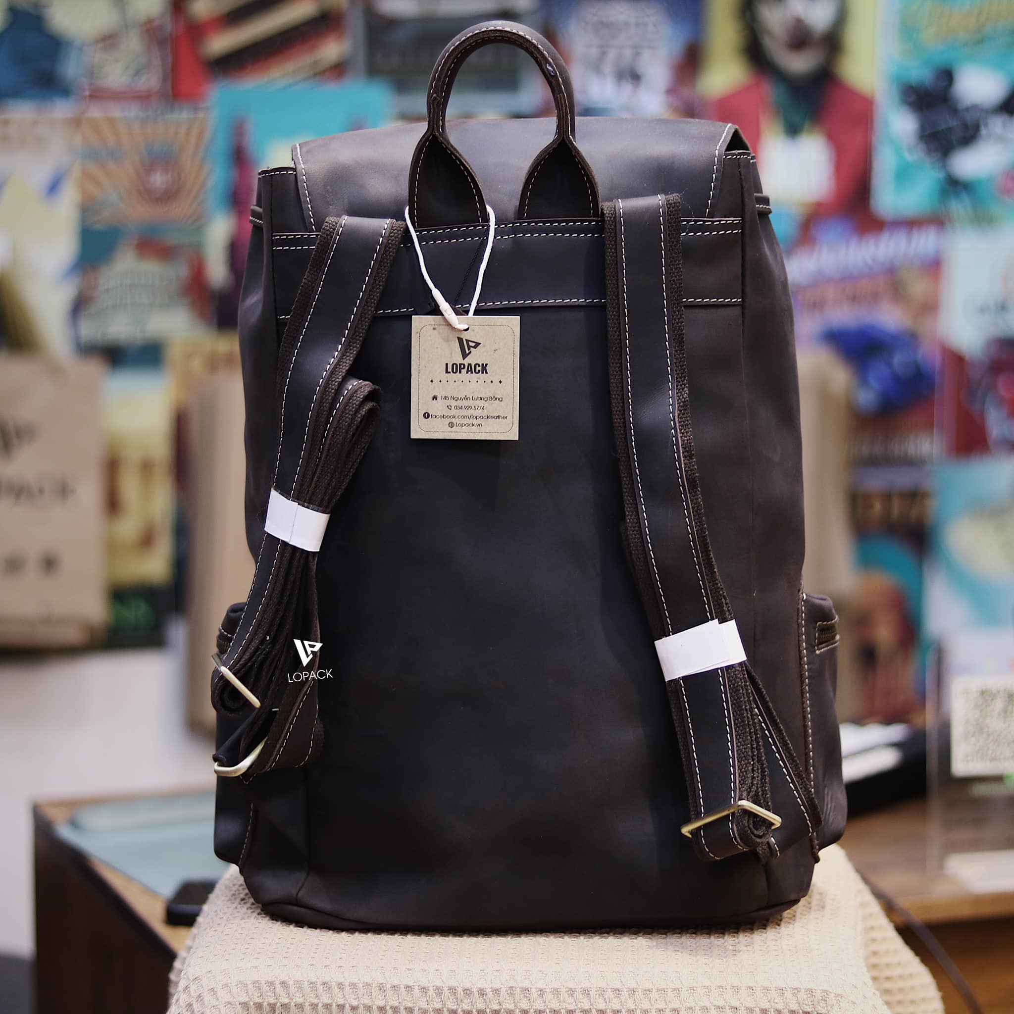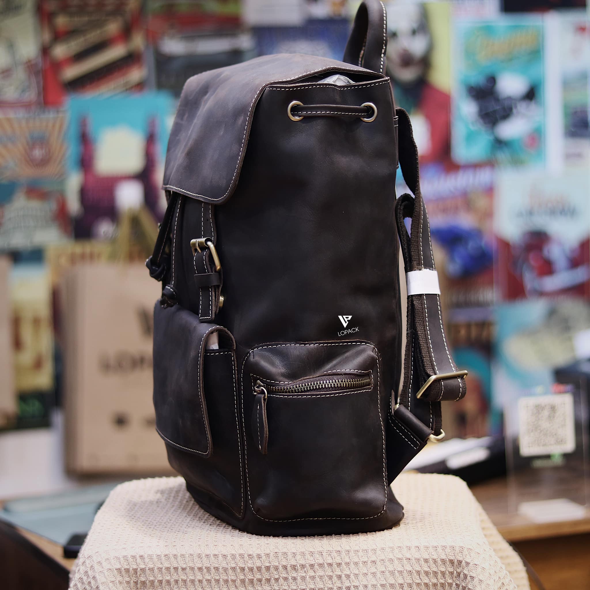 - Balo du lịch chất da nguyên miếng dày dặn, màu Nâu cafe