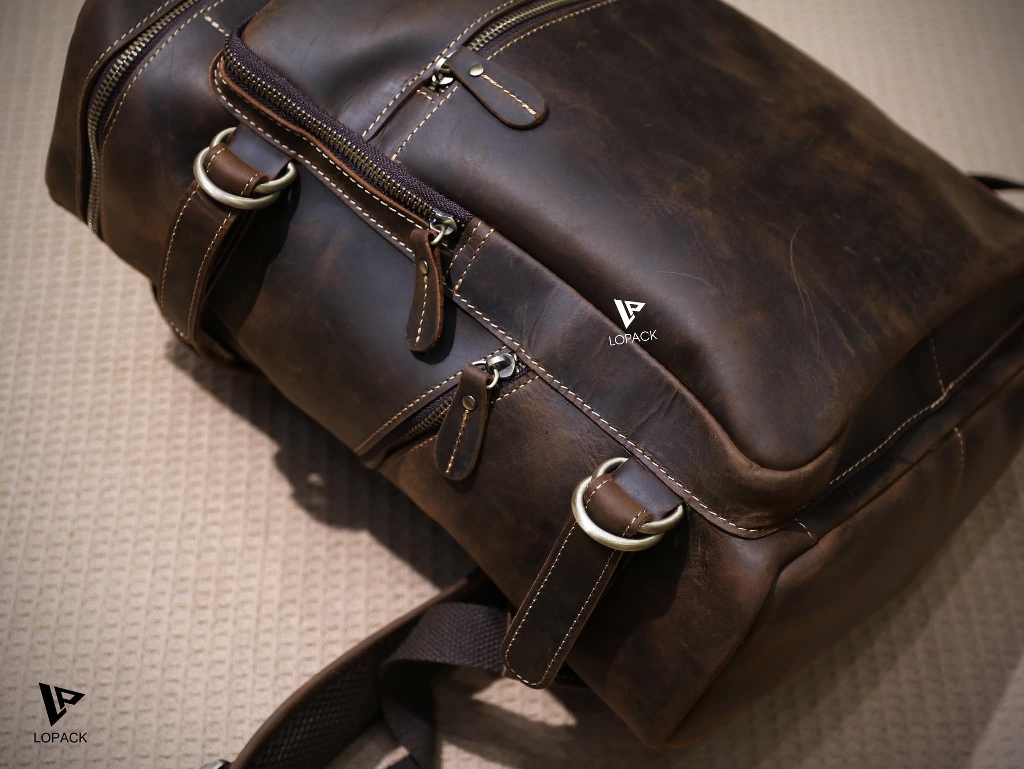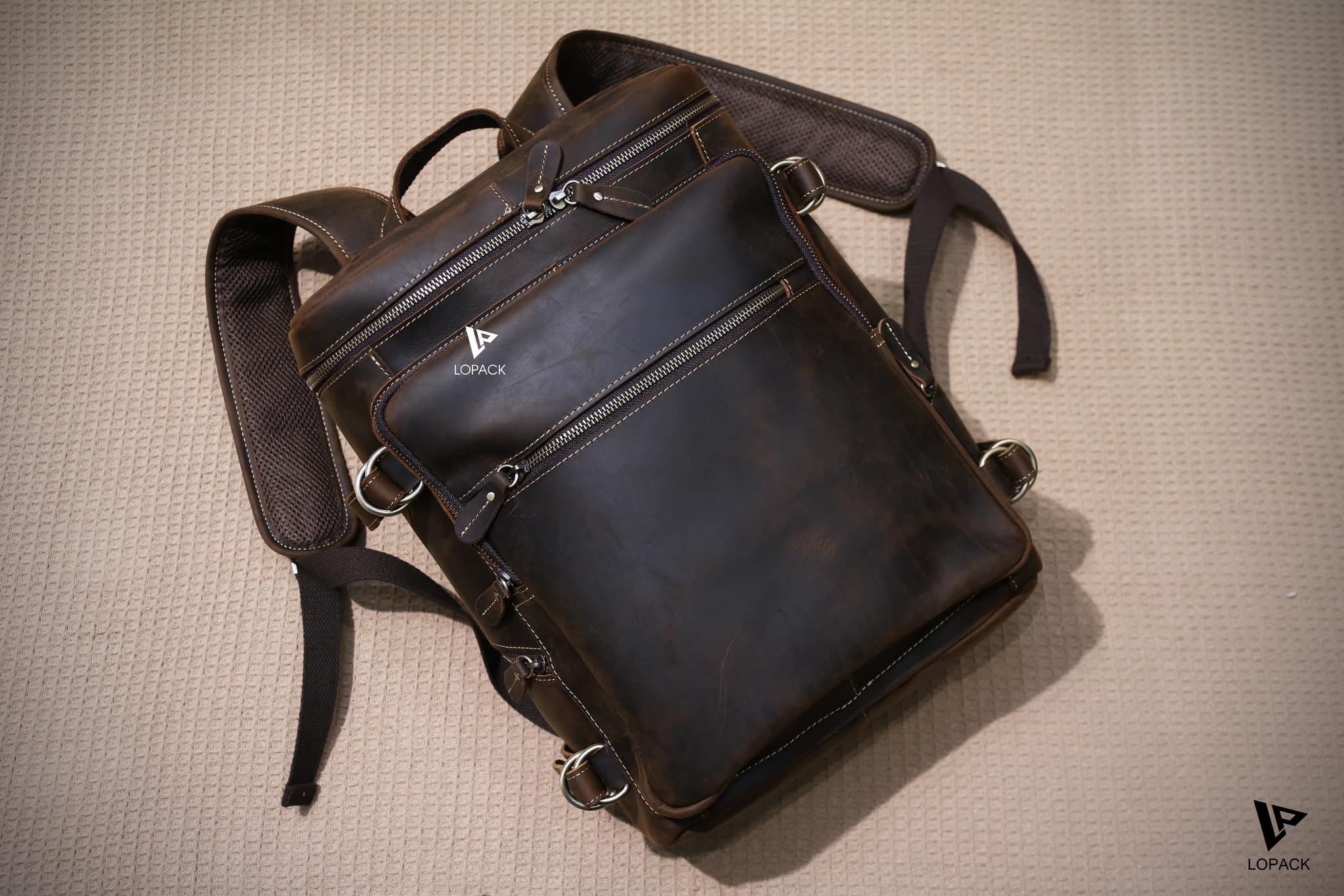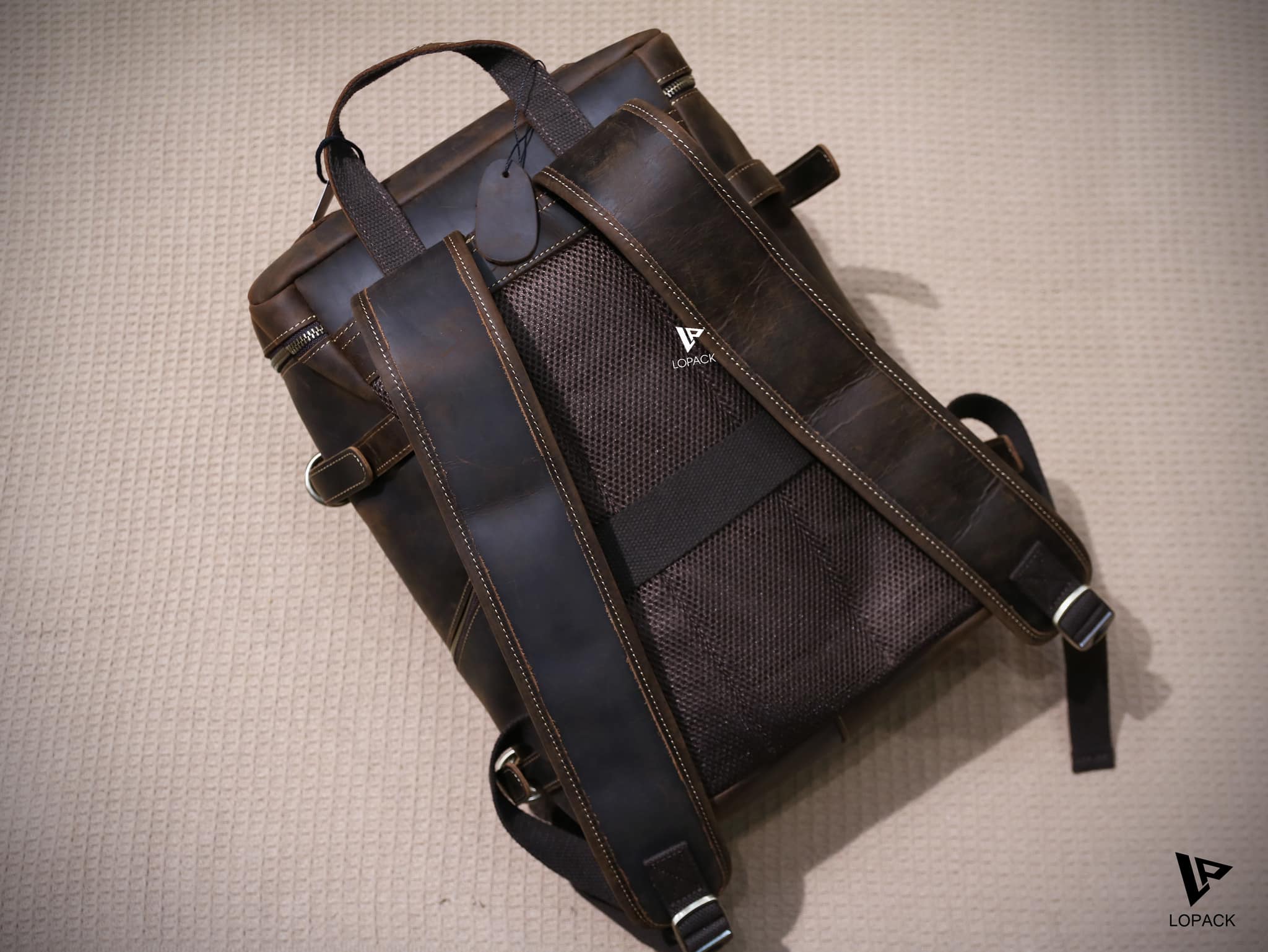 - Mặt sau có lớp mút xốp, có đai xỏ vali, đeo lên người tạo cảm giác nhẹ nhàng và thoáng khí hơn các mẫu full da.