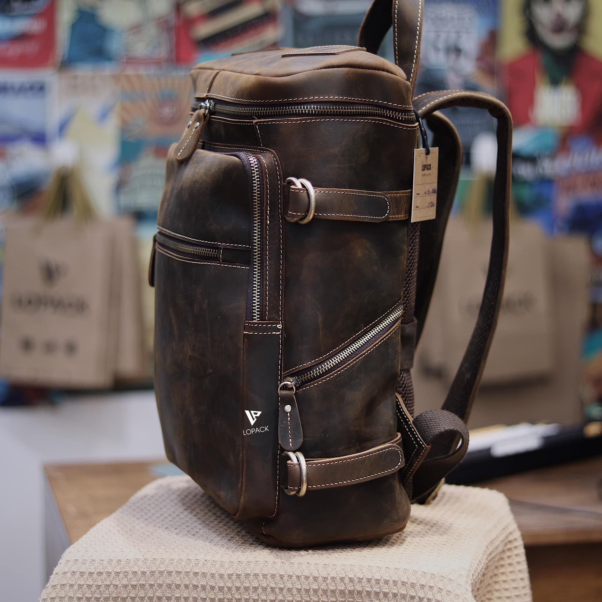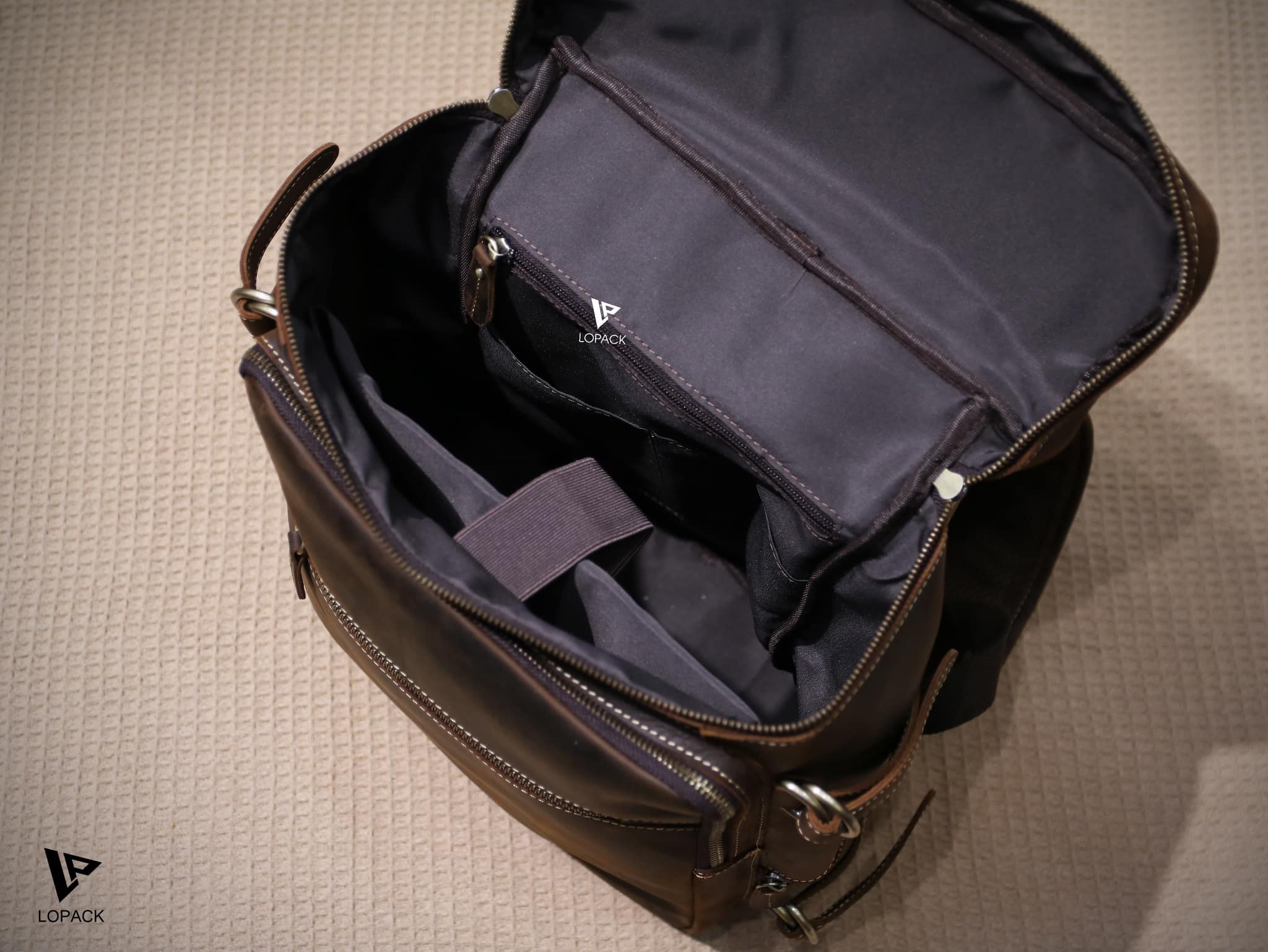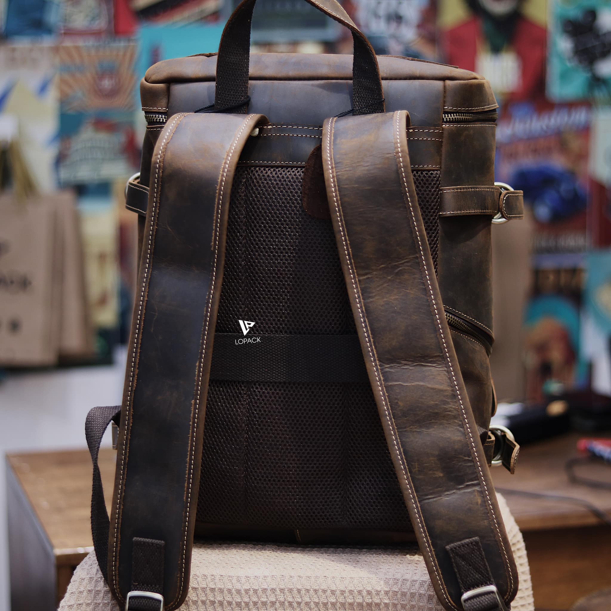 - Mặt sau có lớp mút xốp, có đai xỏ vali, đeo lên người tạo cảm giác nhẹ nhàng và thoáng khí hơn các mẫu full da.