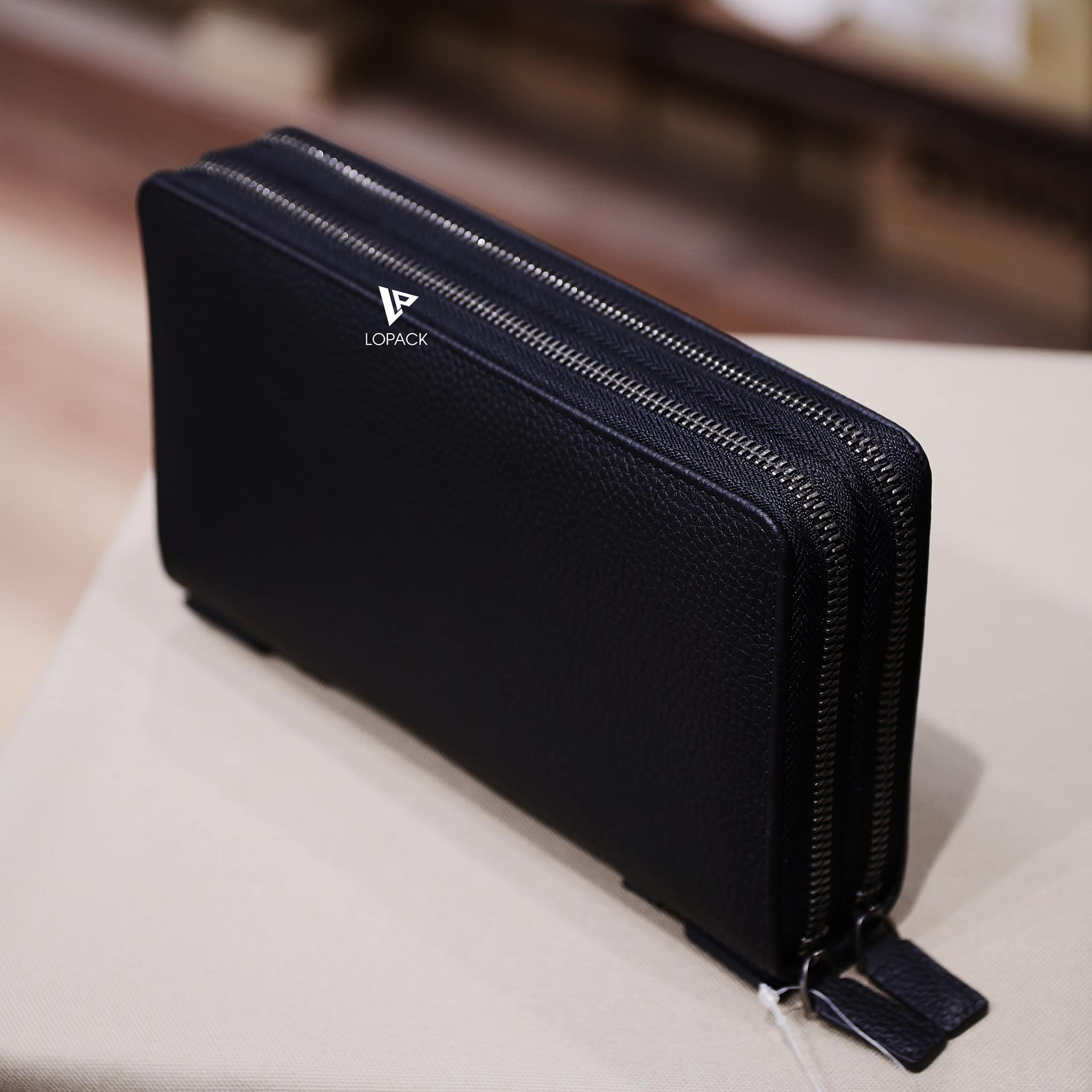 Clutch 2 khoá kéo màu đen trơn
