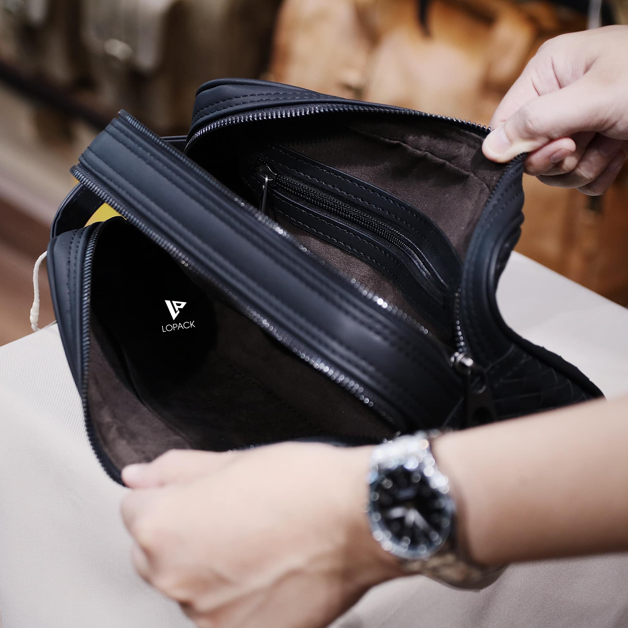 - Màu đen trơn sang trọng với các đường gân túi may tỉ mỉ xung quanh, giữ form túi đứng tốt.