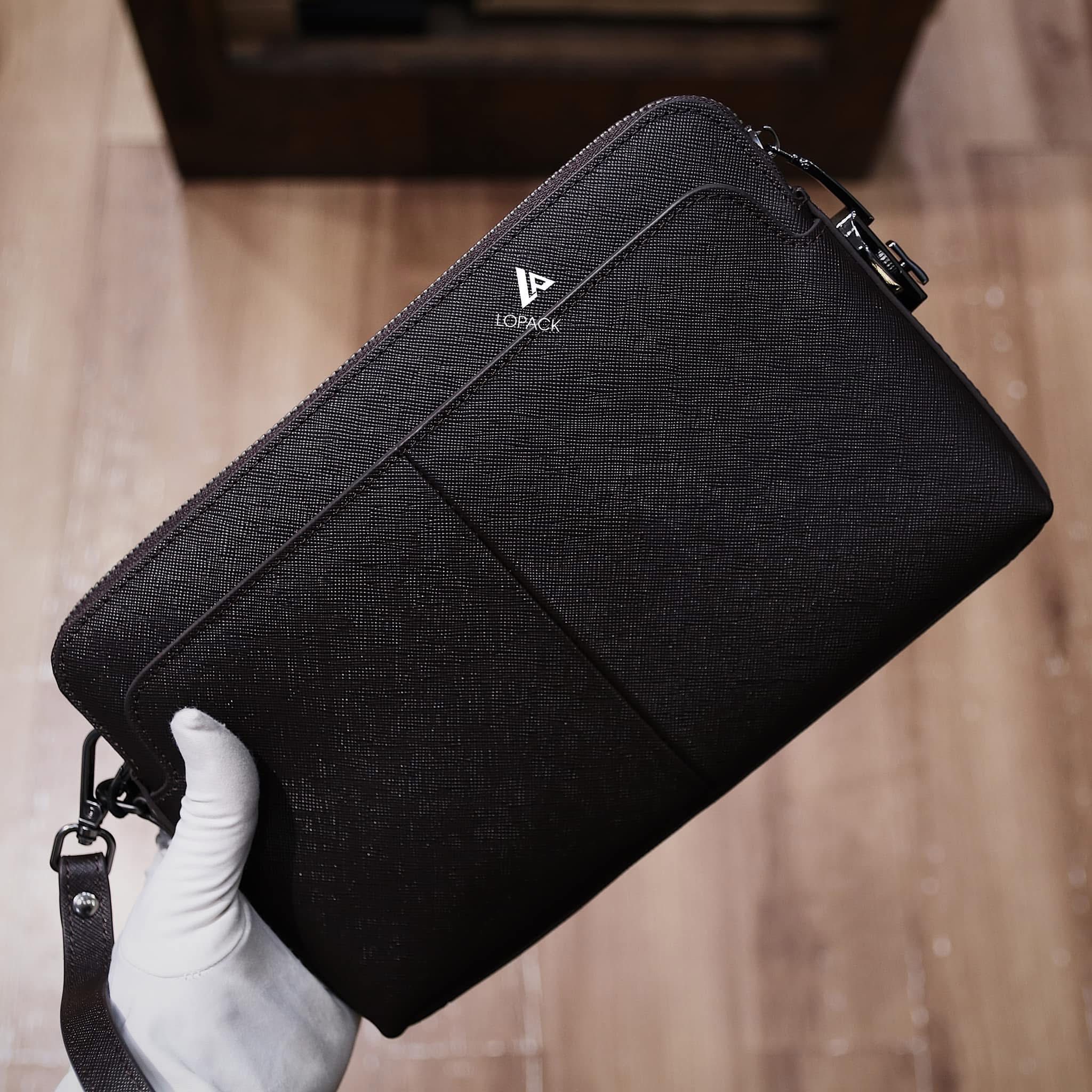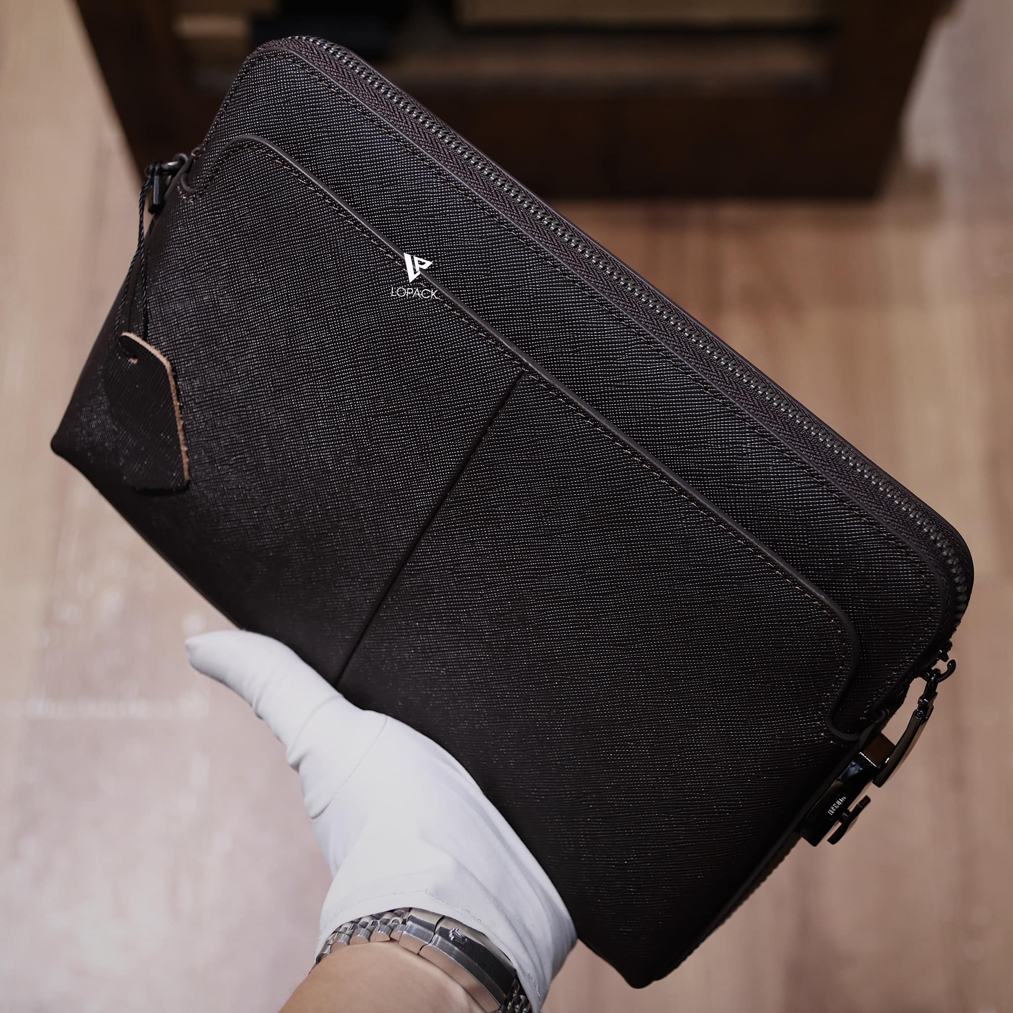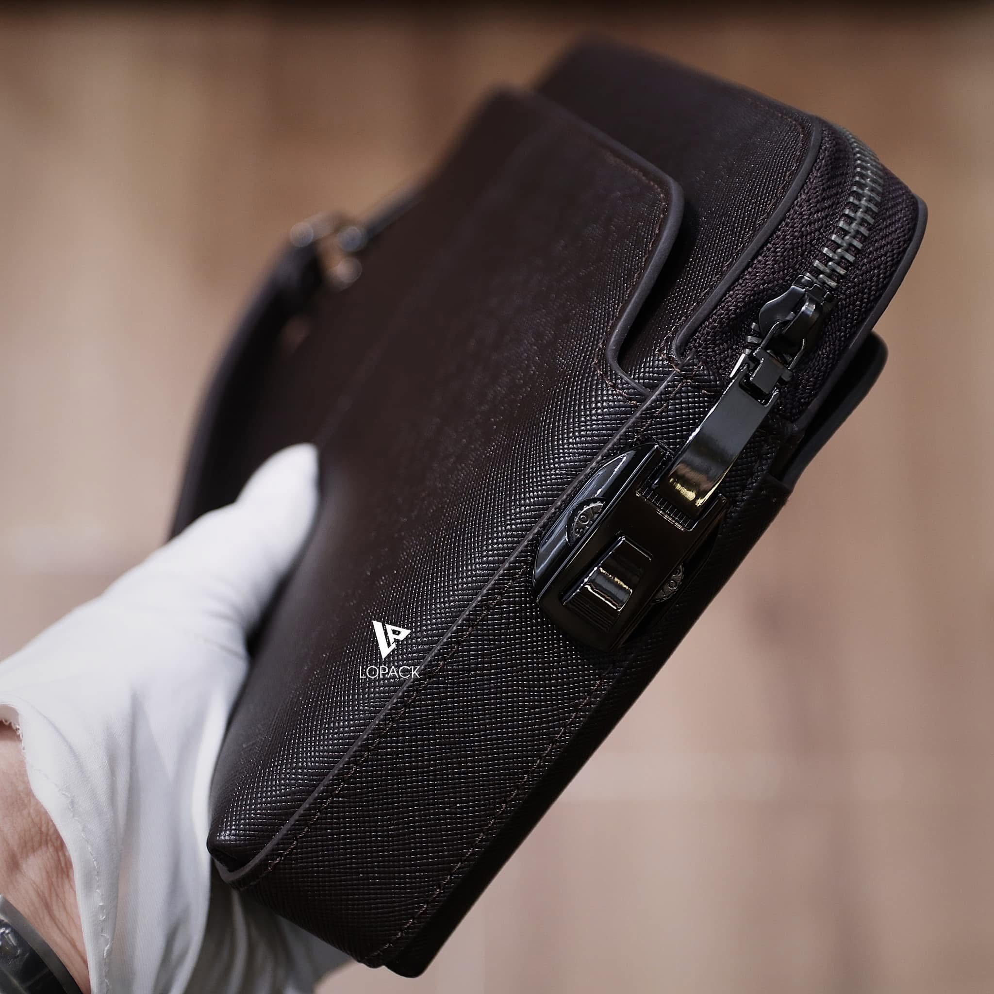 - Vân da Saffiano giúp chống xước tốt, bề mặt da đồng đều lịch sự.