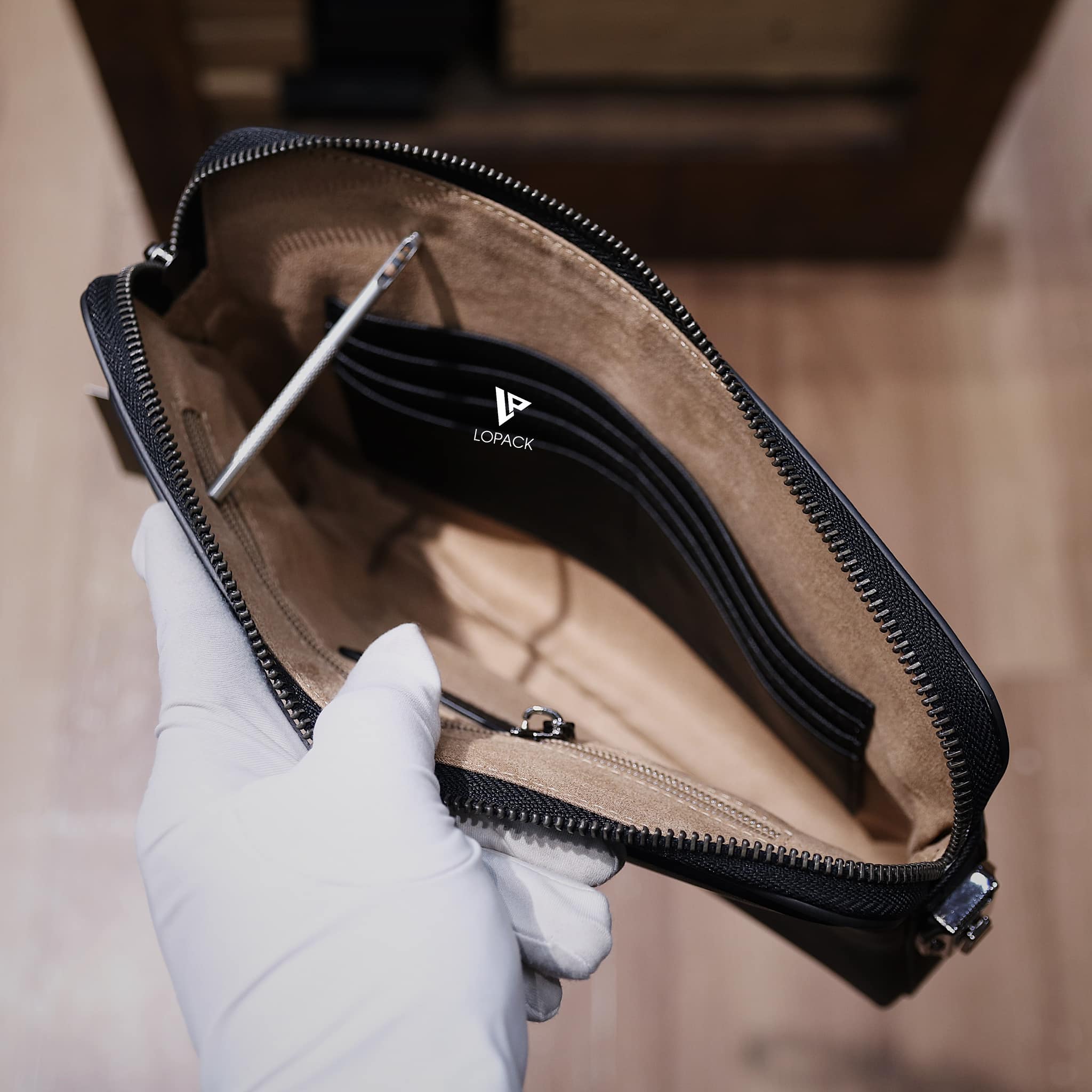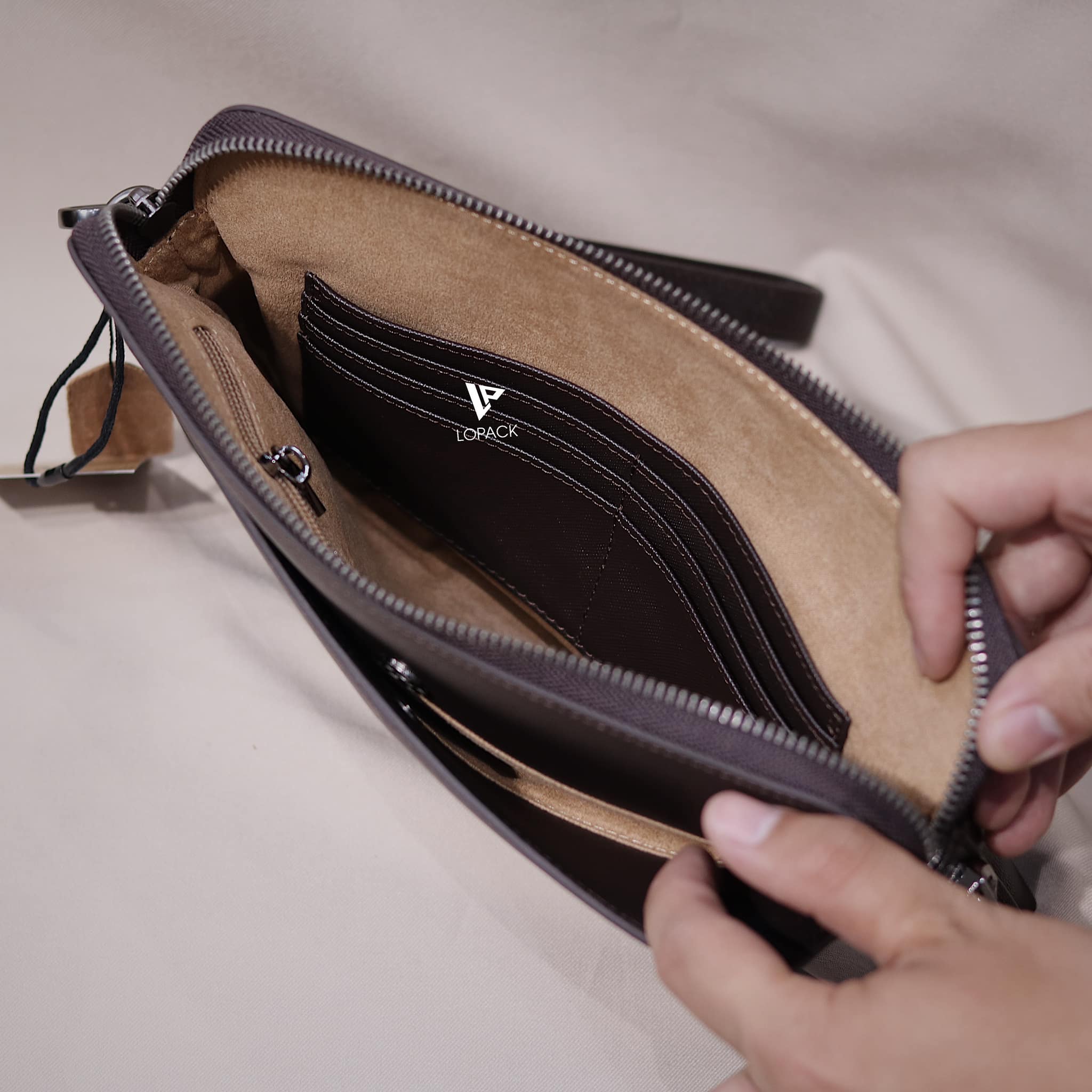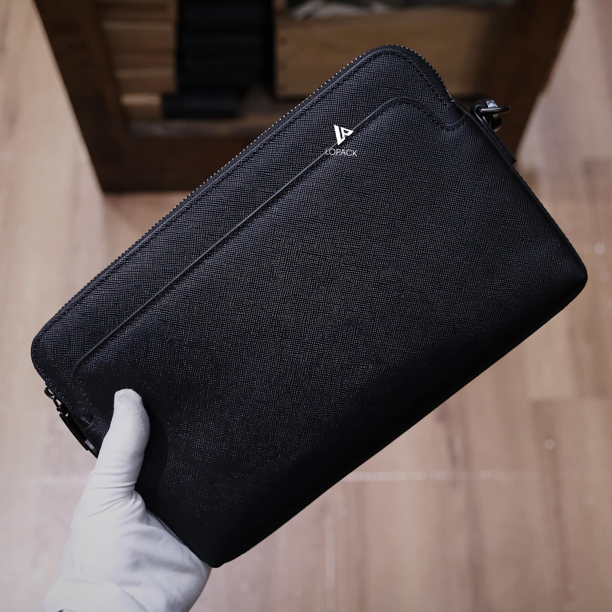 - Vân da Saffiano giúp chống xước tốt, bề mặt da đồng đều lịch sự.
