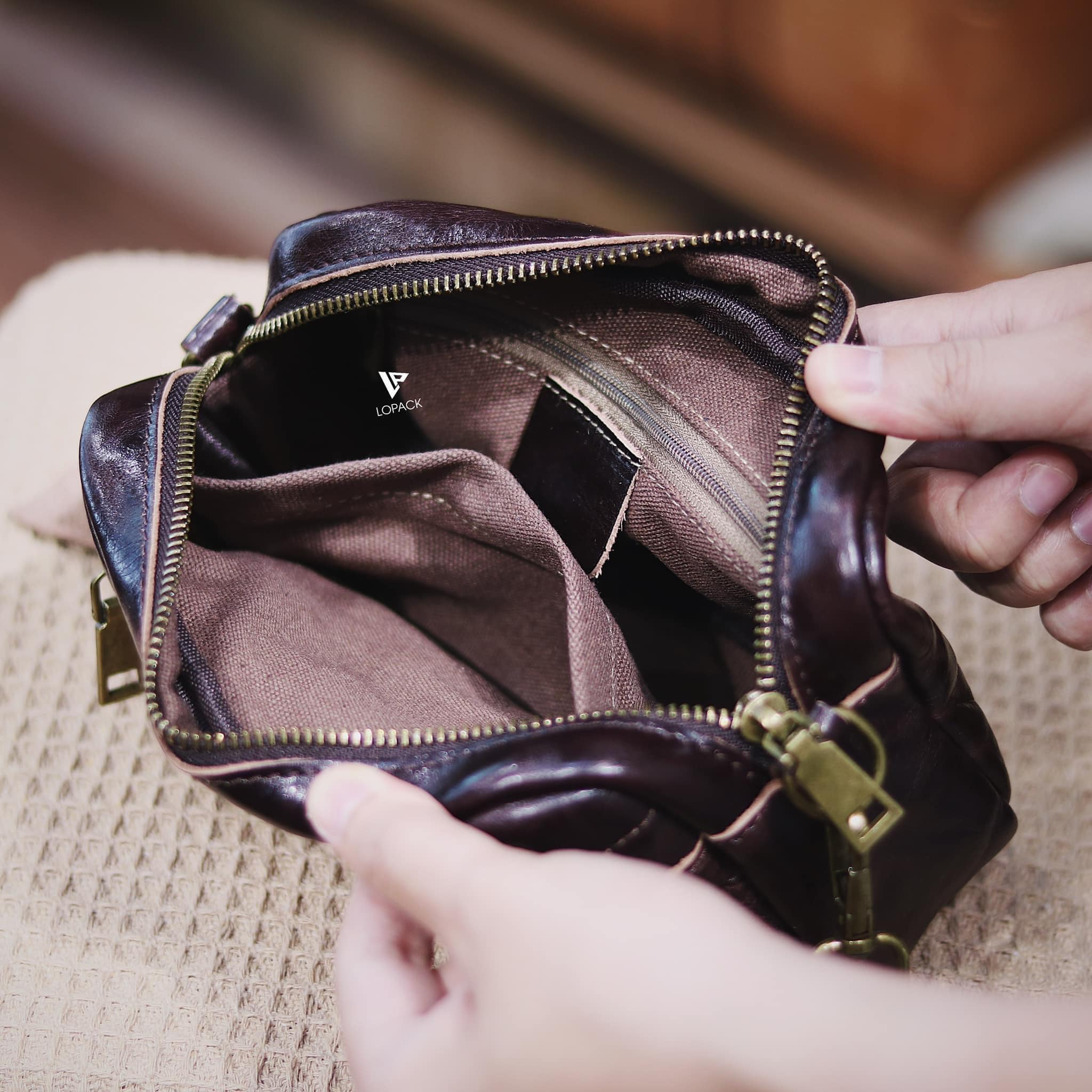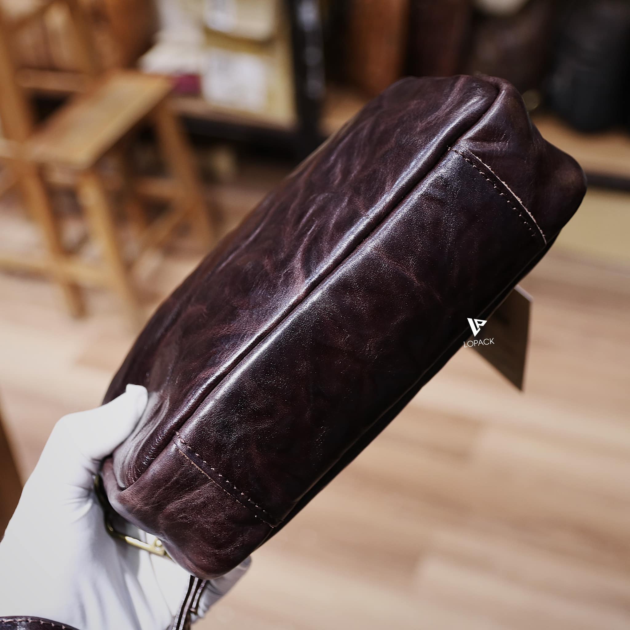 - Chất da nguyên miếng dày dặn, bề mặt da được xử lí vân nhăn độc đáo.