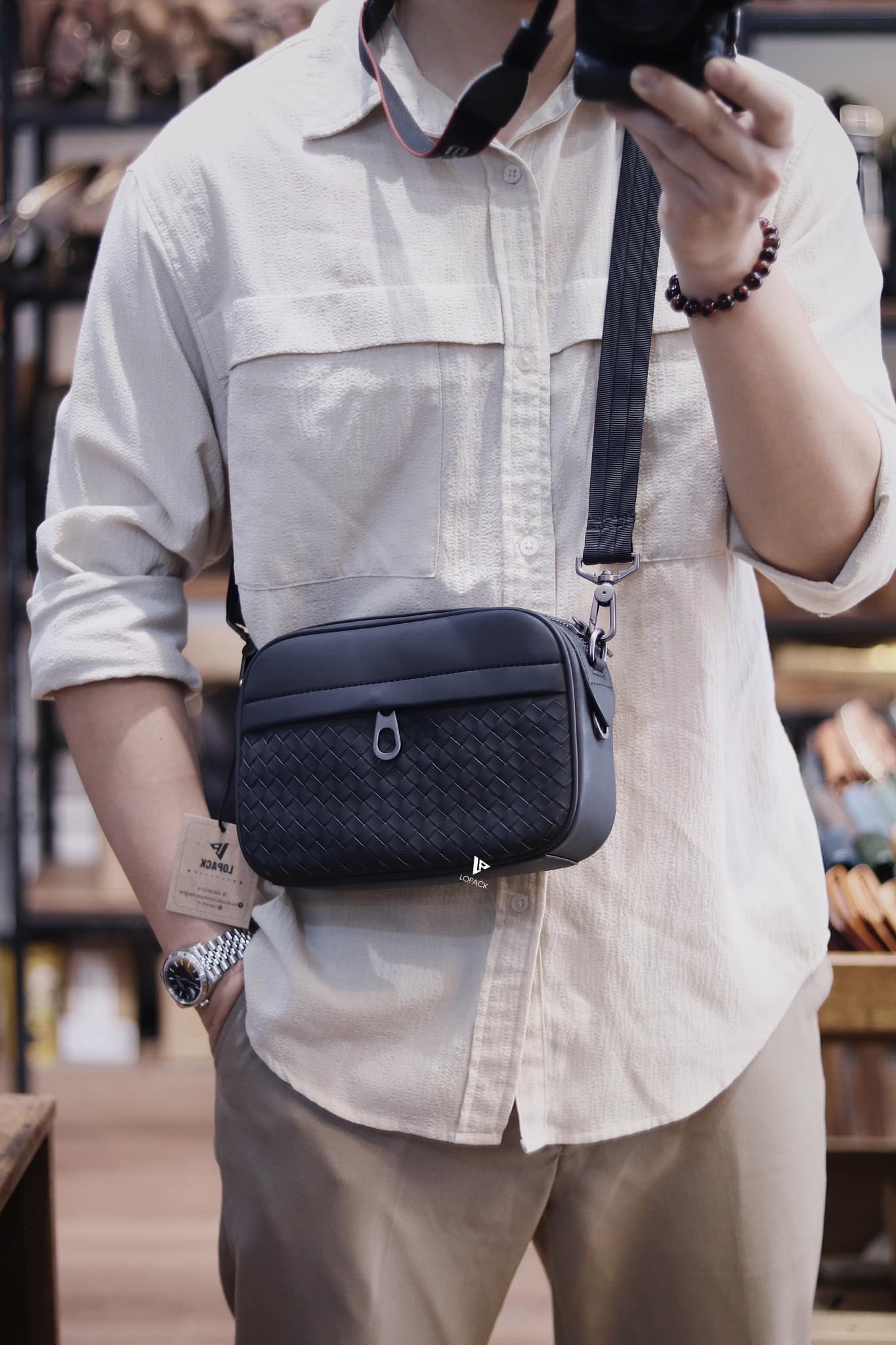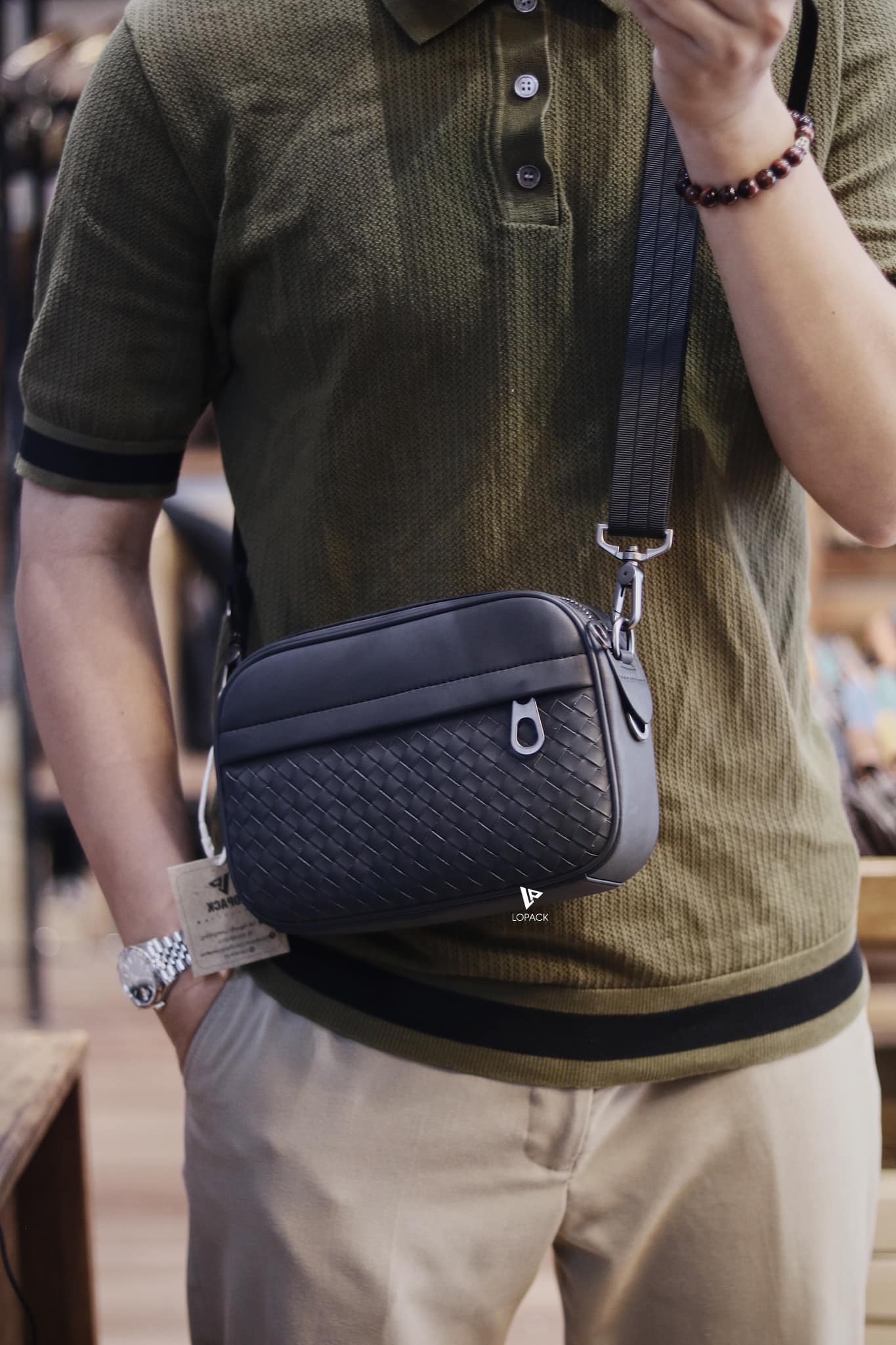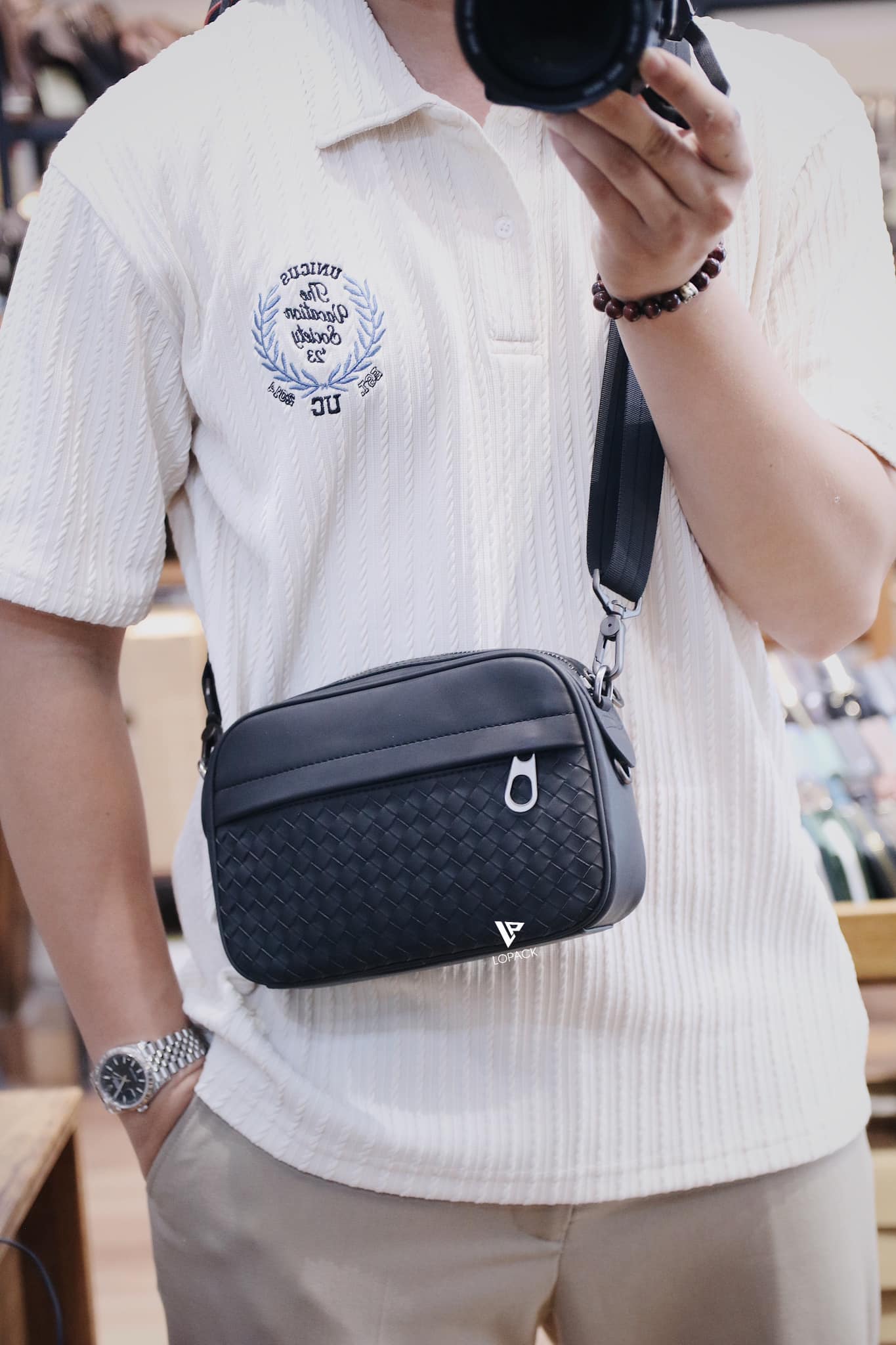 - Clutch kiêm túi đeo chéo da đan: 2 loại dây để sử dụng đi kèm, cầm tay lịch sự, đeo chéo tiện lợi.