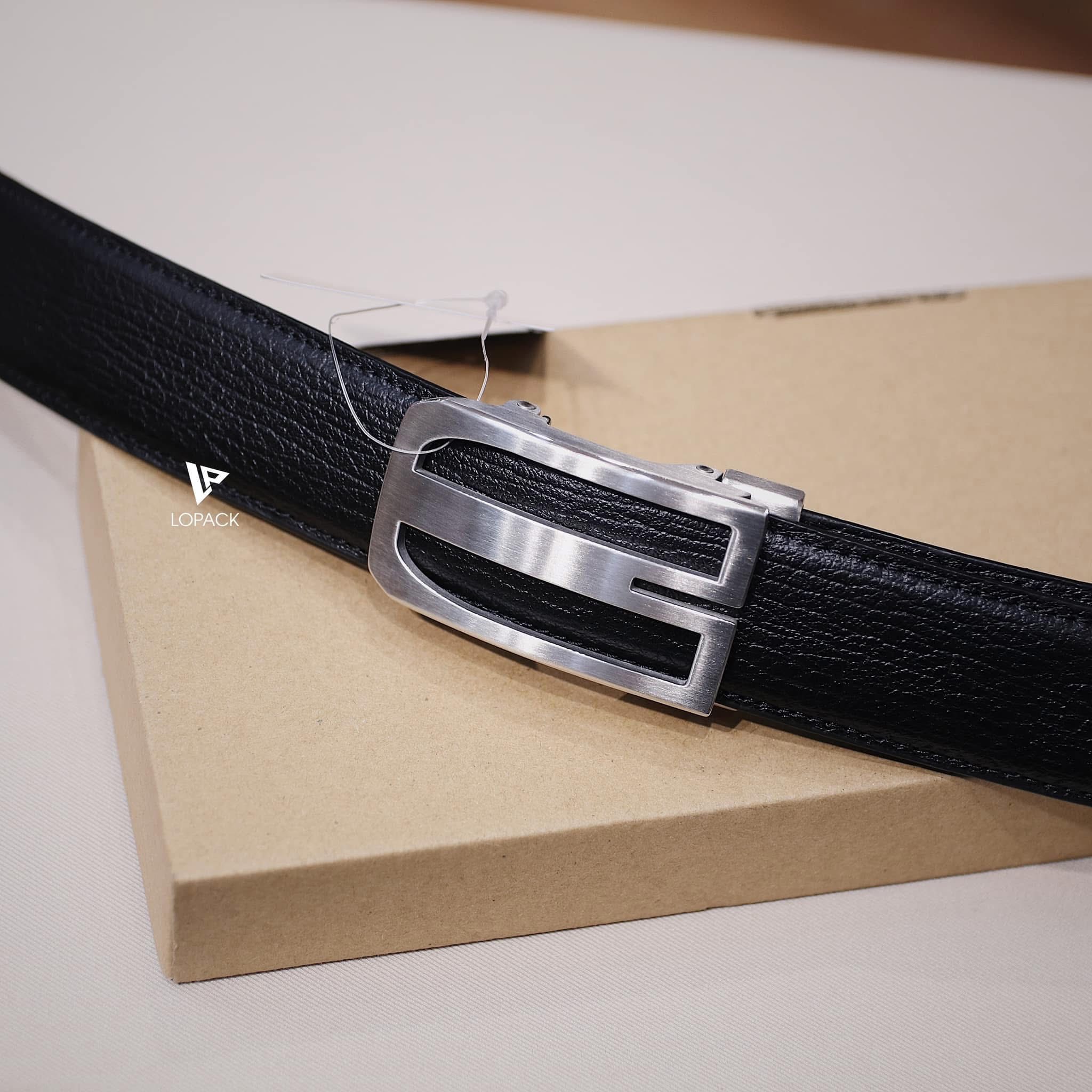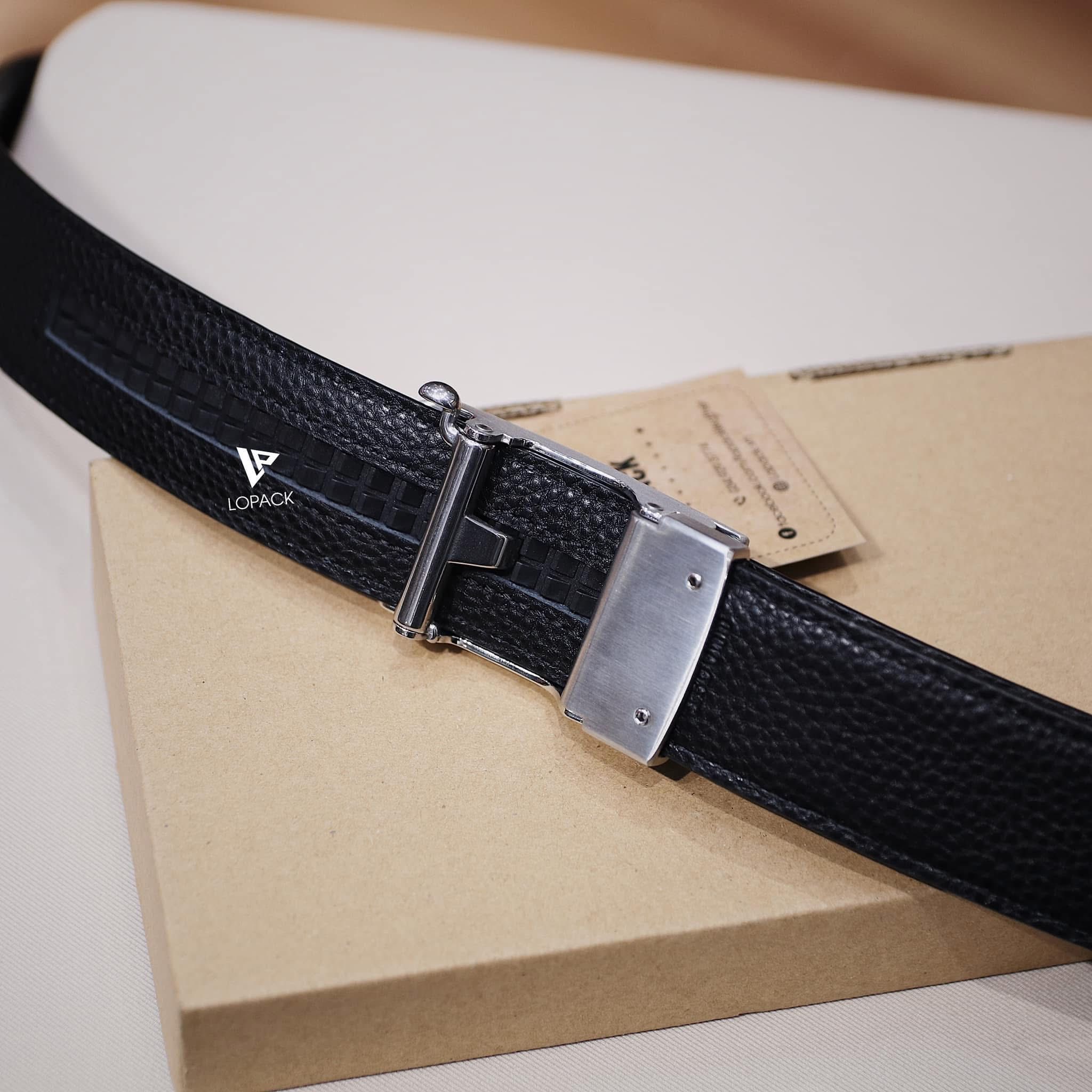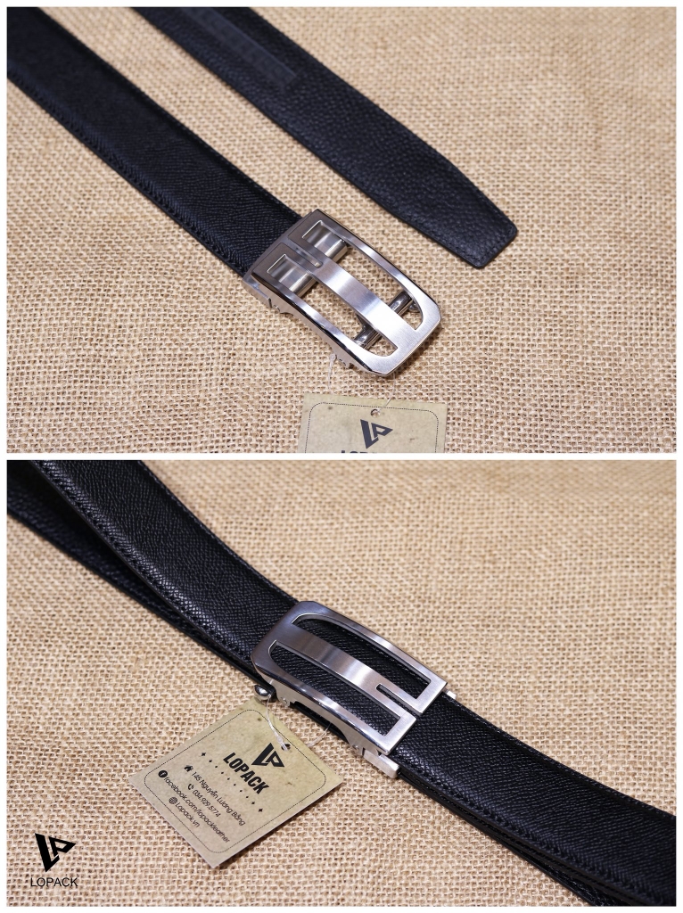 - Dây da đen trơn vân to khoẻ khoắn, khâu viền chắc chắn.