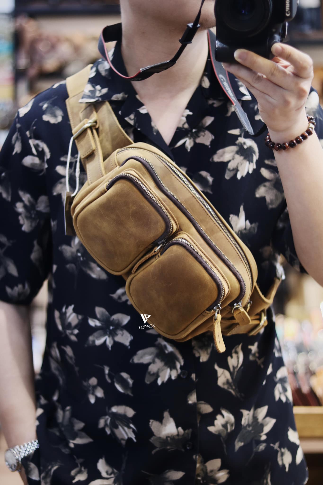 - Dáng túi dày hơn so với các mẫu cùng loại, dây đeo phối da full mặt trước, khoá bấm kim loại, tính thẩm mỹ cao.