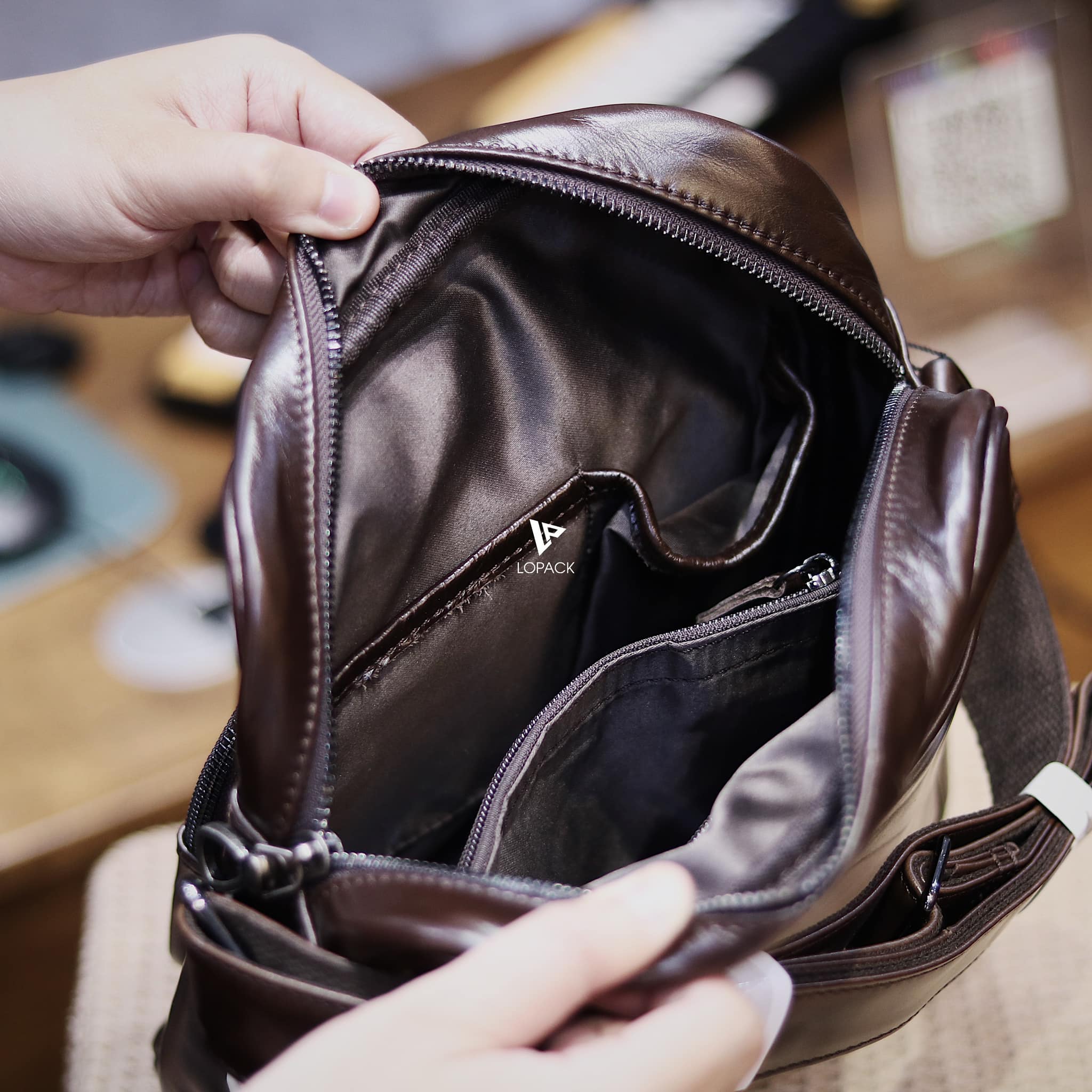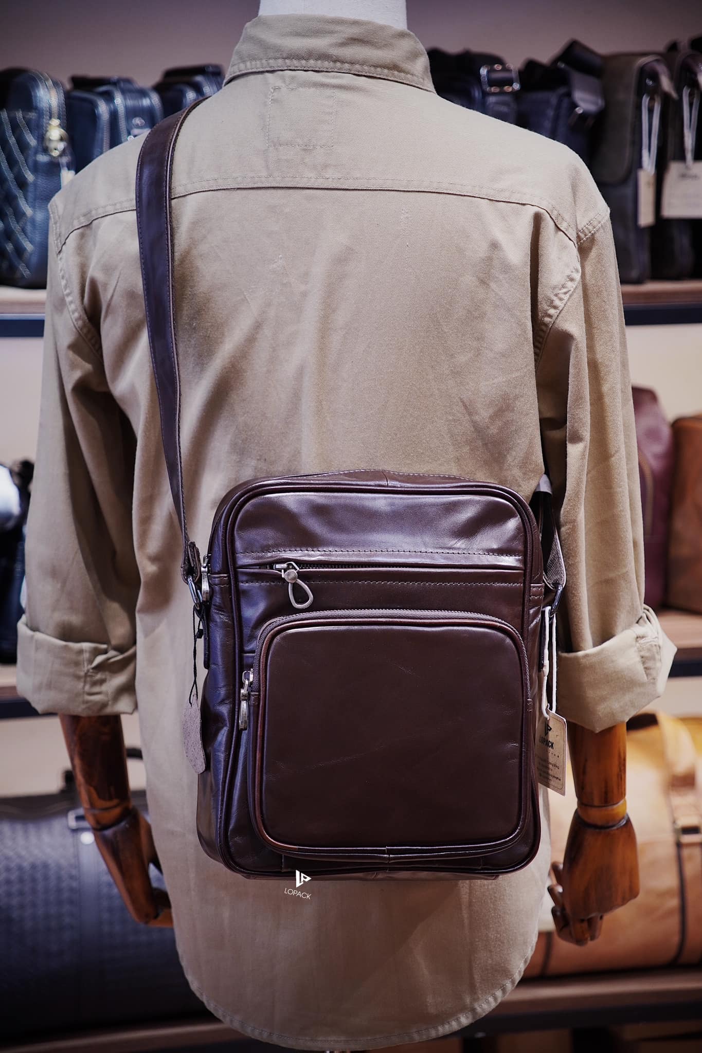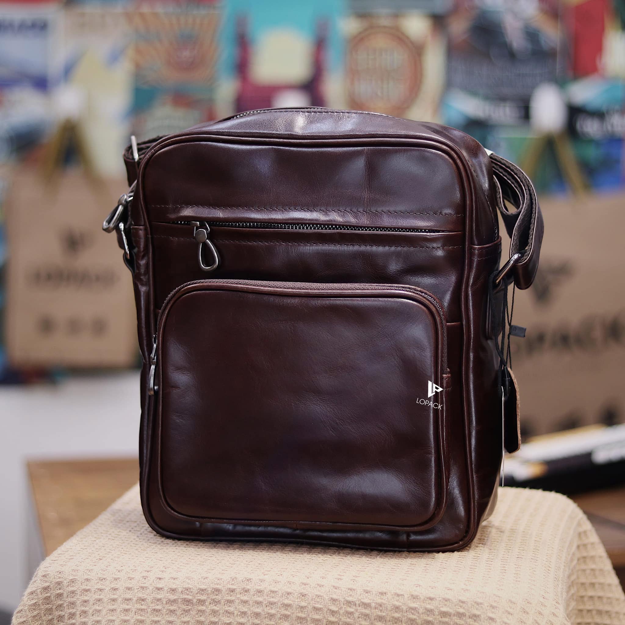 - Túi đeo chéo dáng dọc size to, phù hợp cho anh em dáng người cao to hoặc cần đựng nhiều đồ.