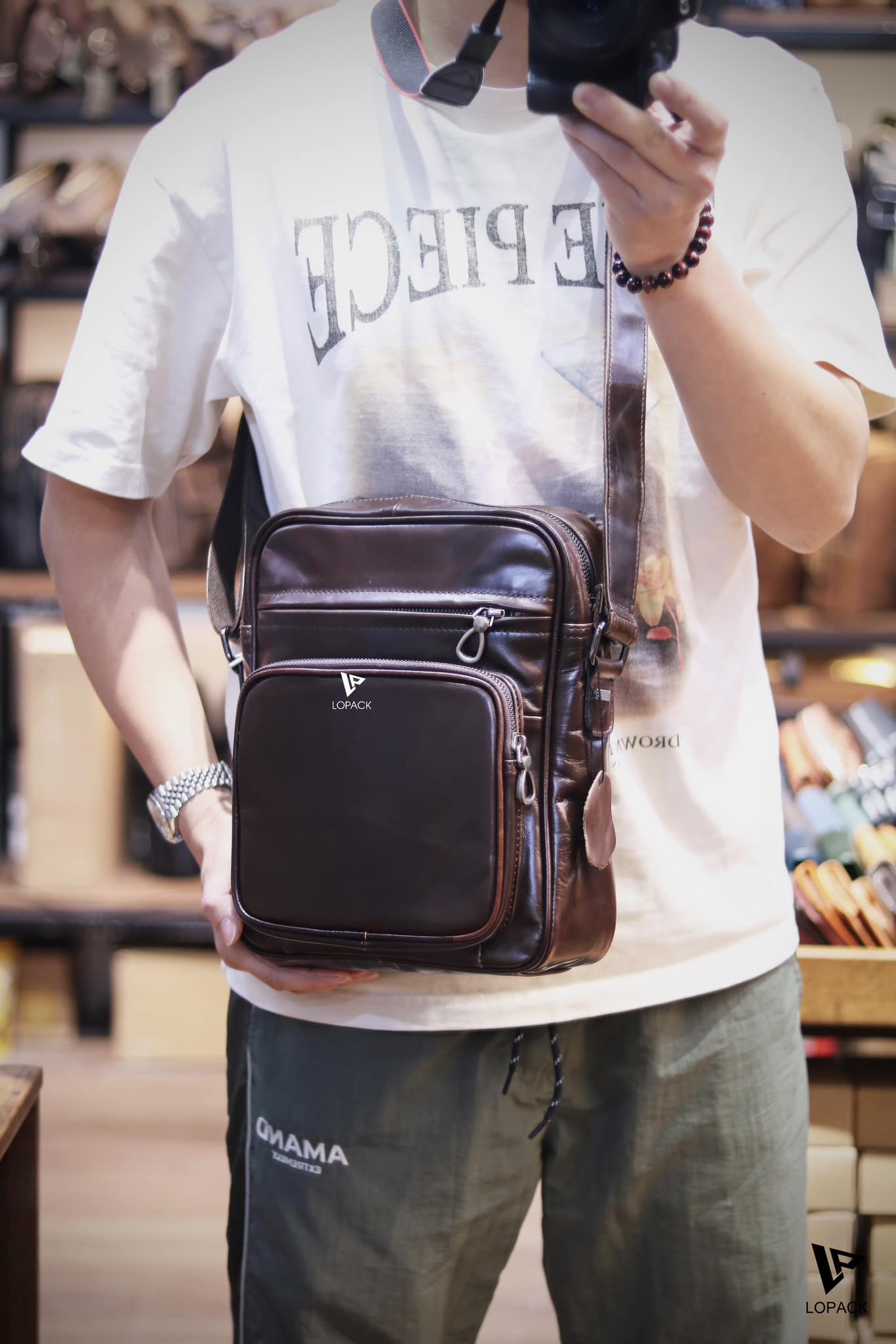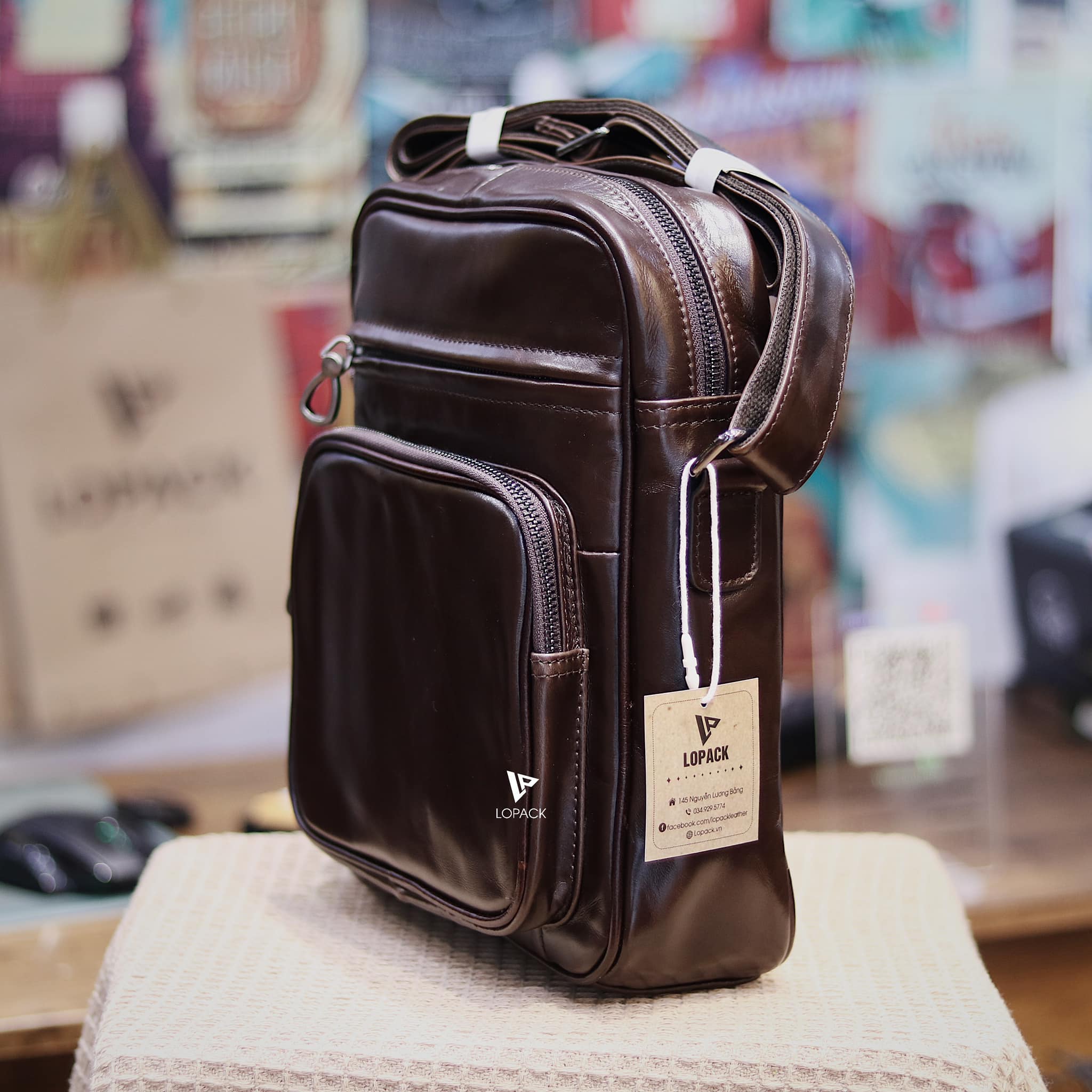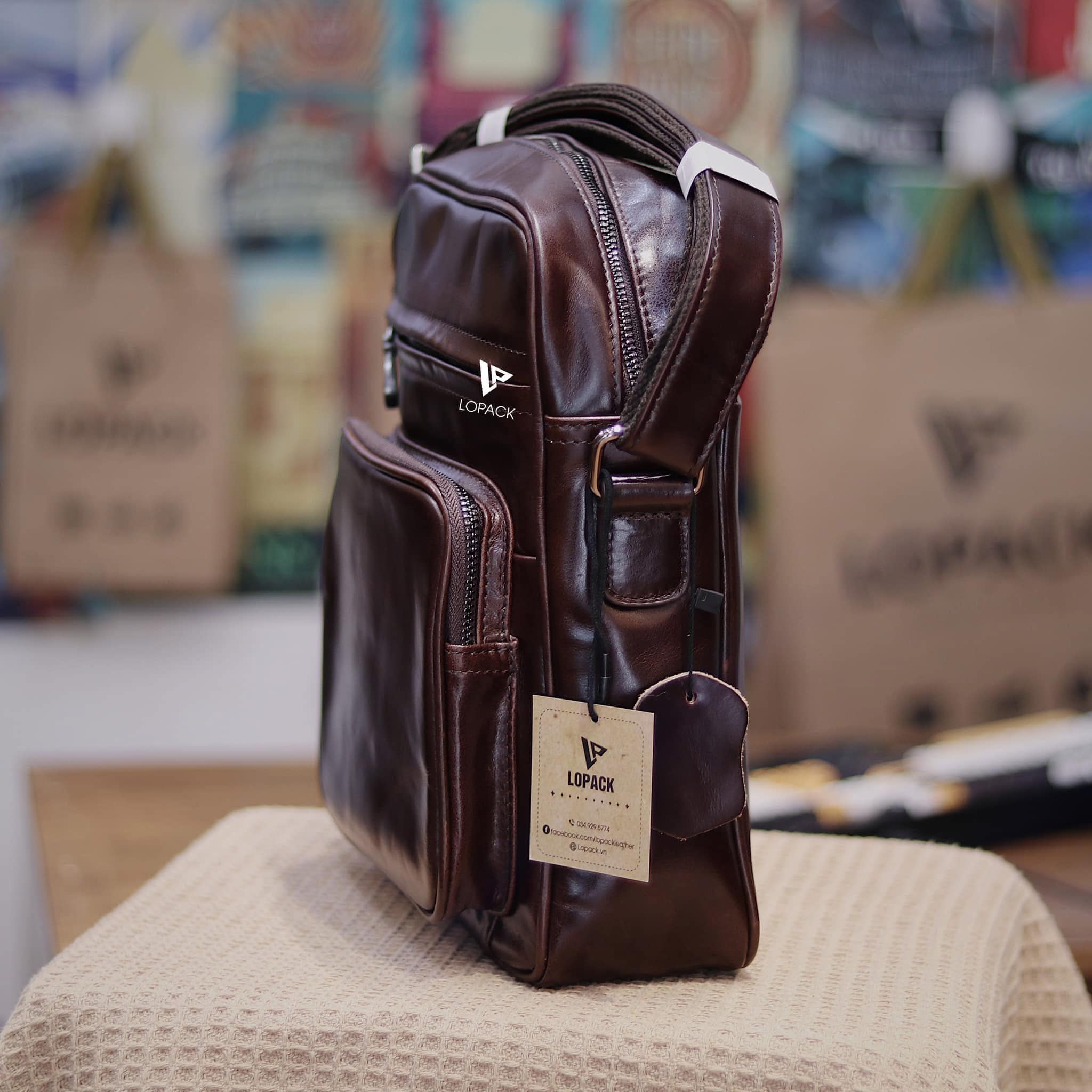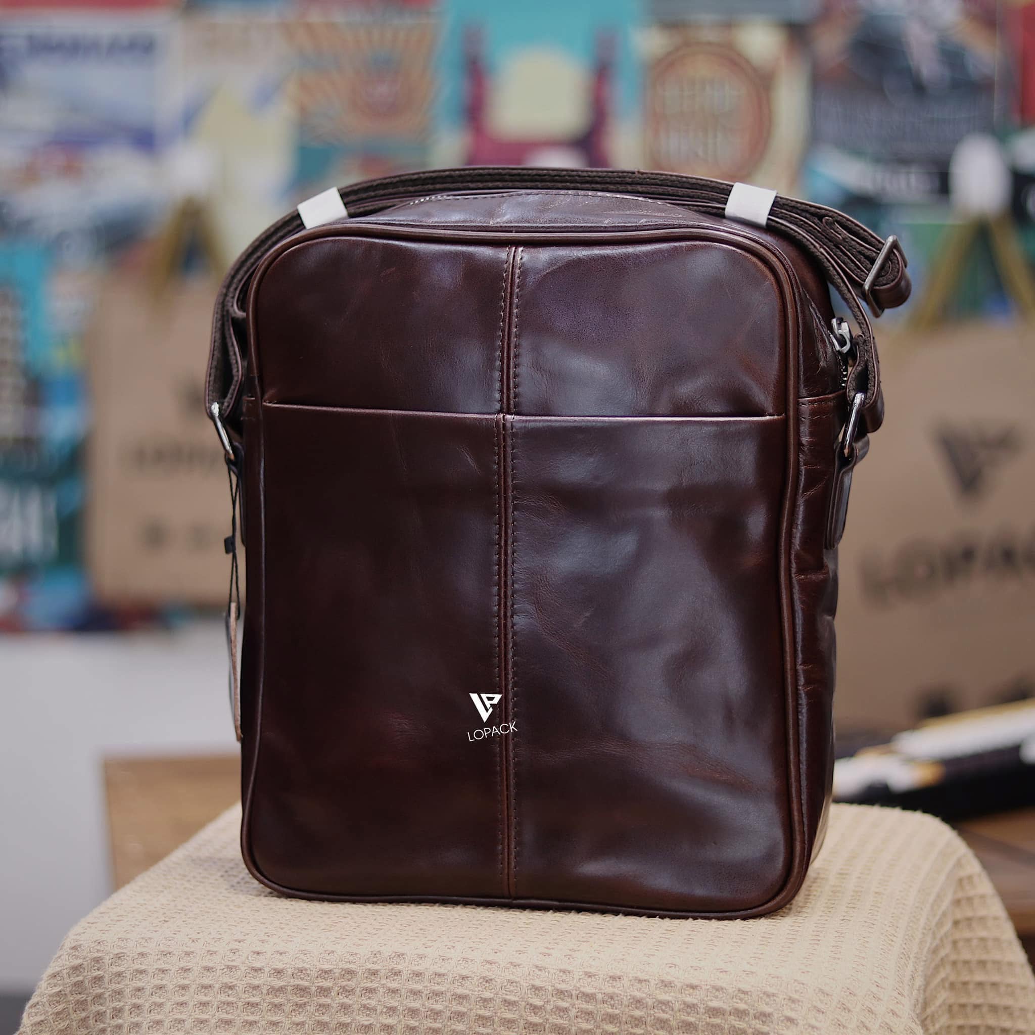 - Túi đeo chéo dáng dọc size to, phù hợp cho anh em dáng người cao to hoặc cần đựng nhiều đồ.