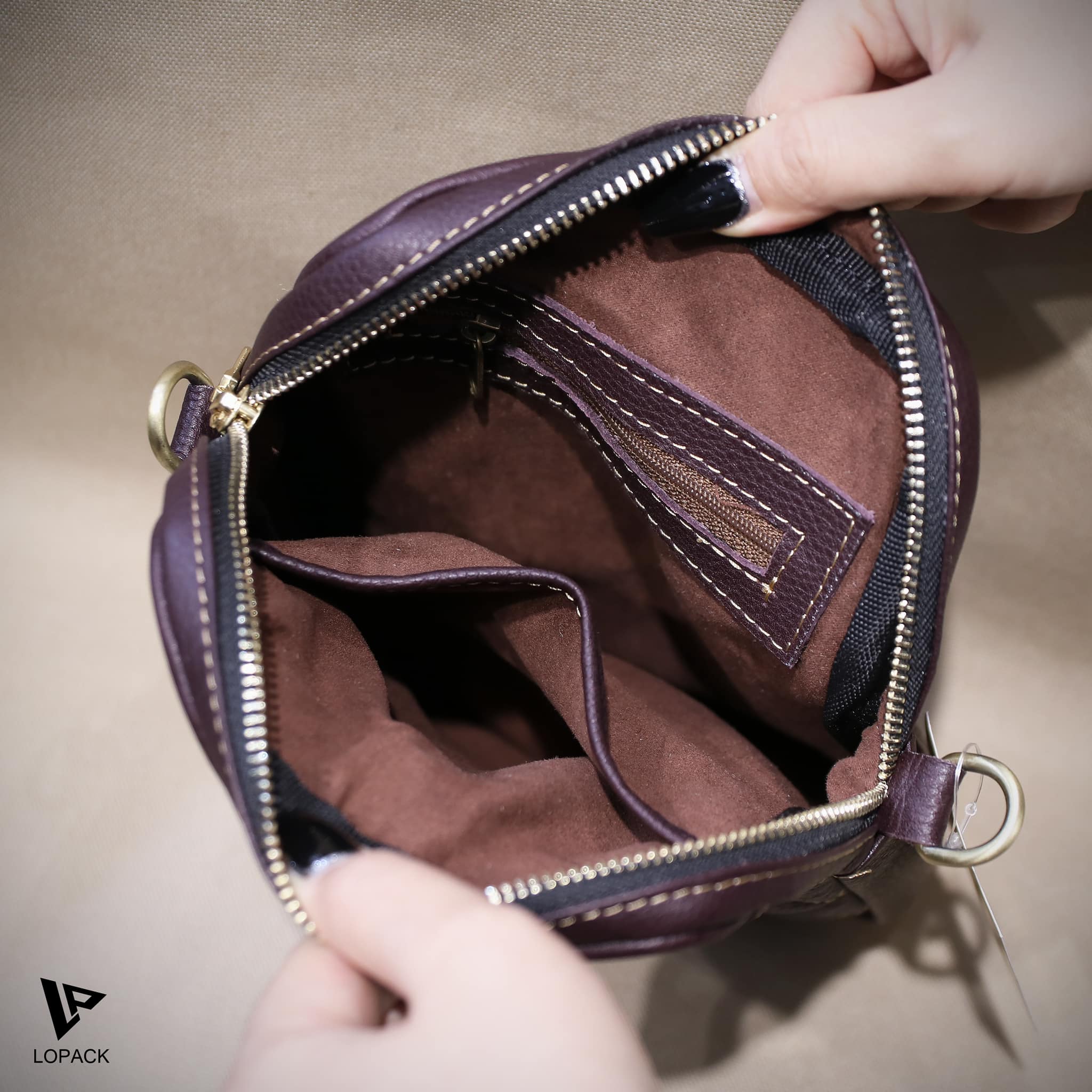 - Bên trong lót nhung sang trọng, chất da mềm, vân hạt, bề mặt da trơn lịch sự.