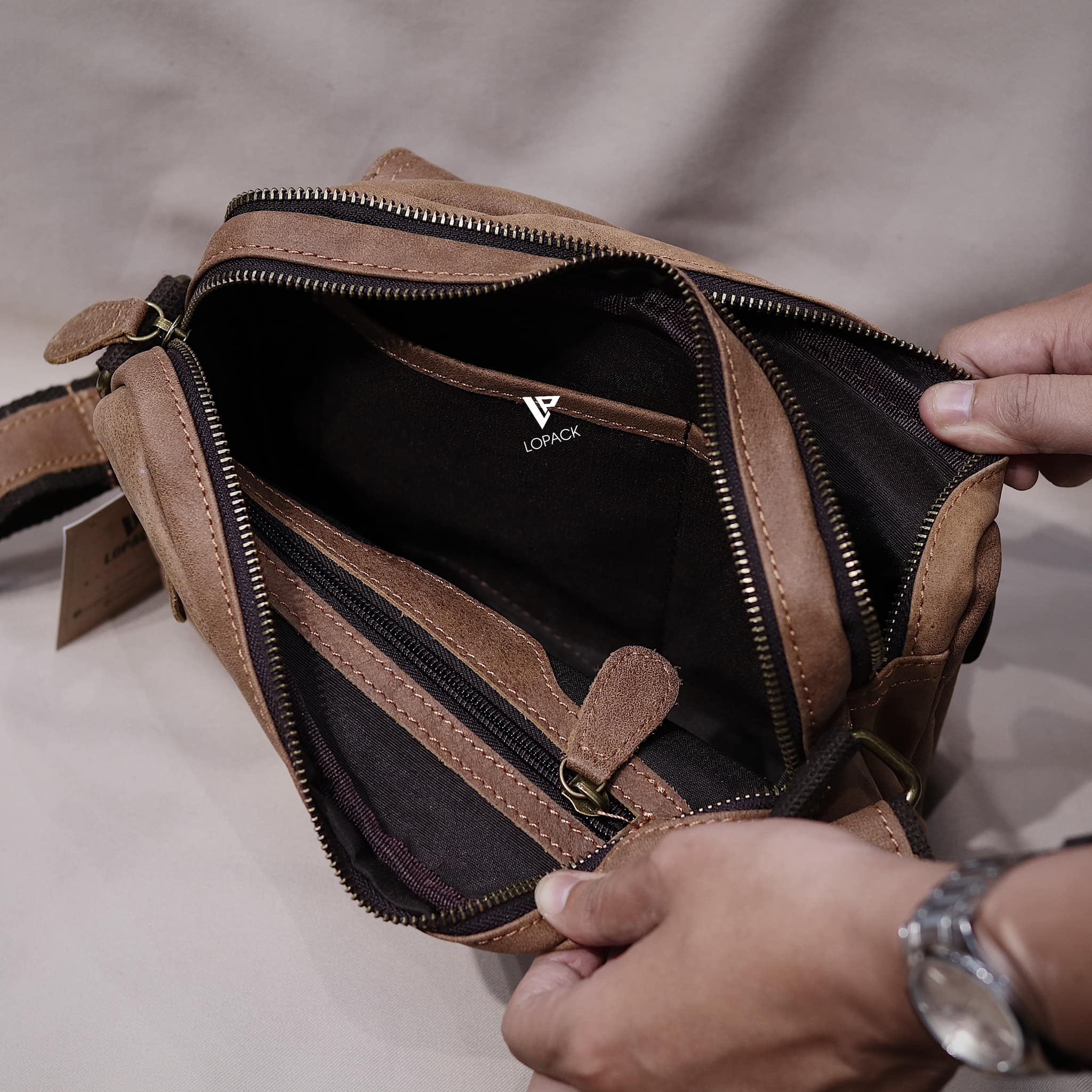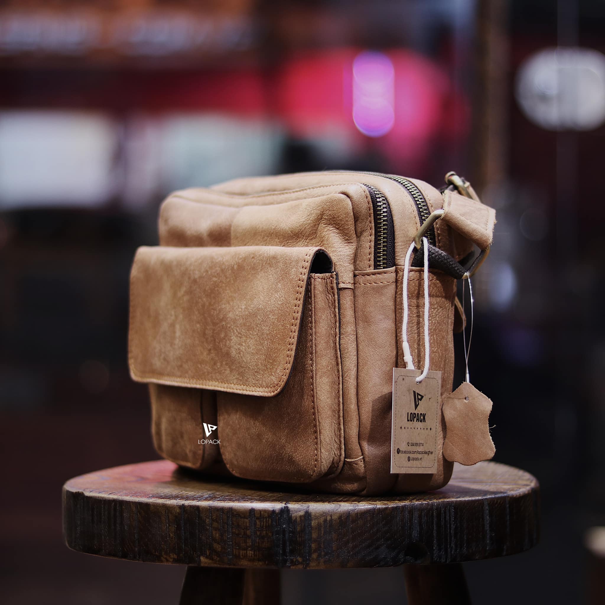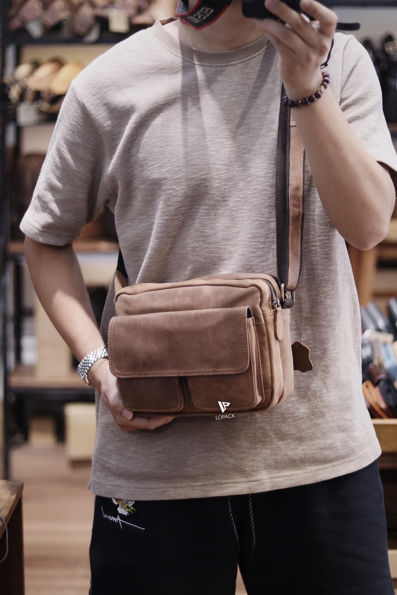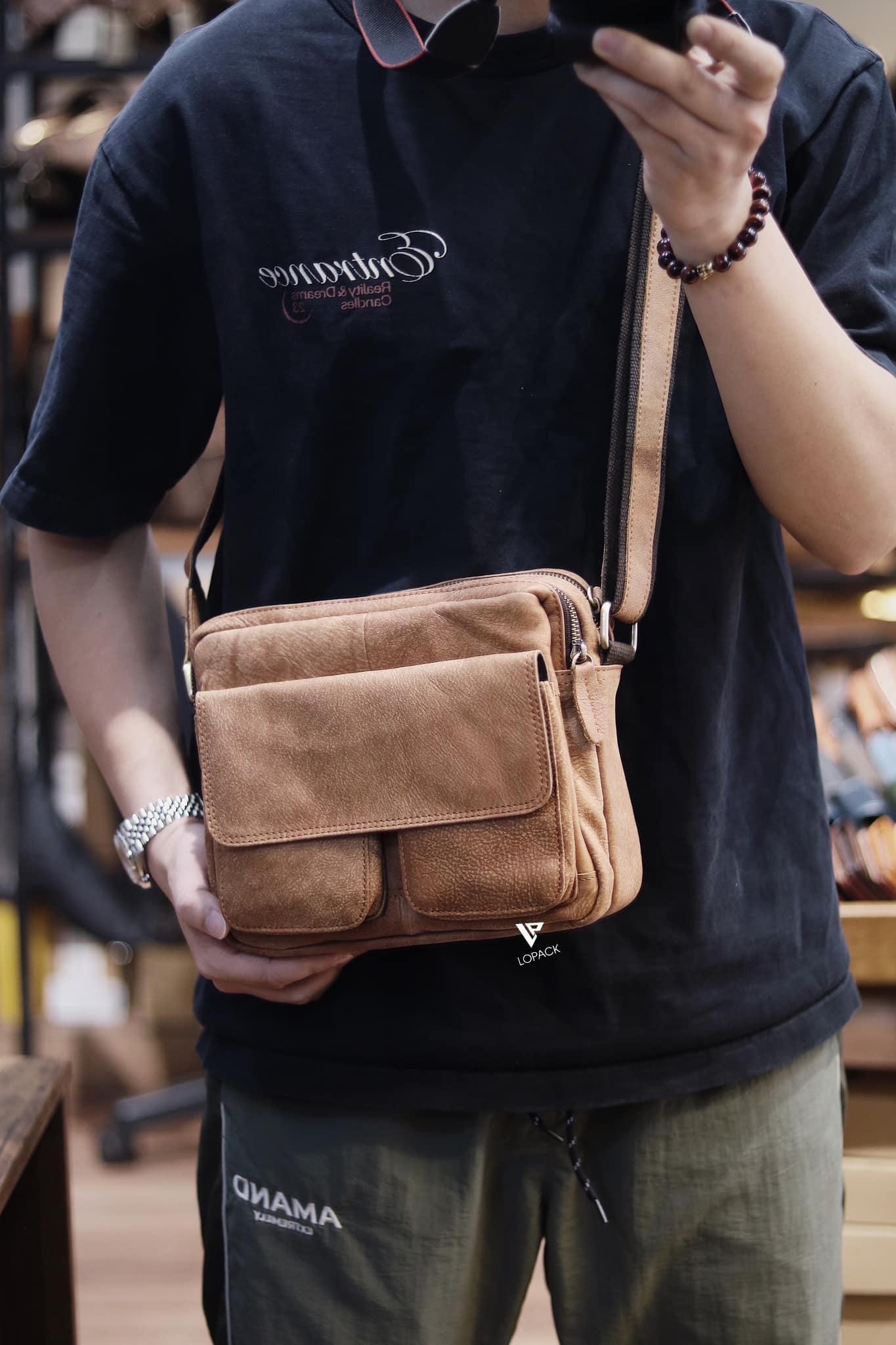 - Chất da mềm, vân da nhăn nguyên bản, nhiều ngăn đựng.