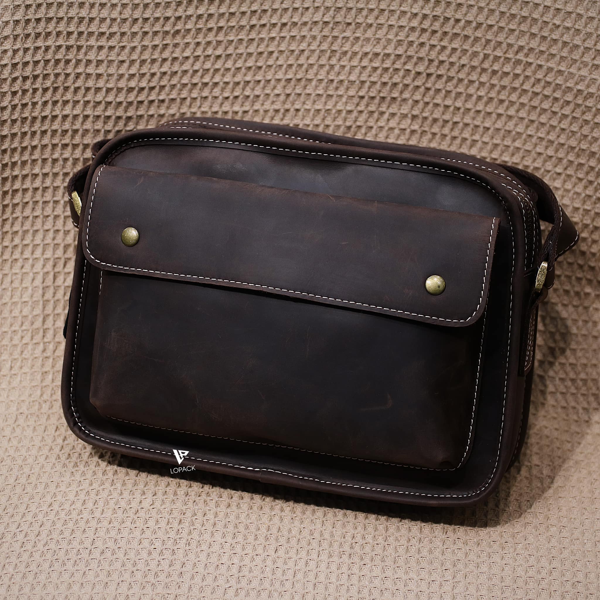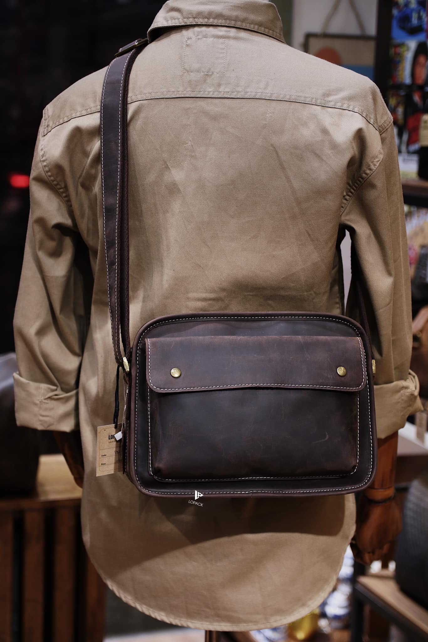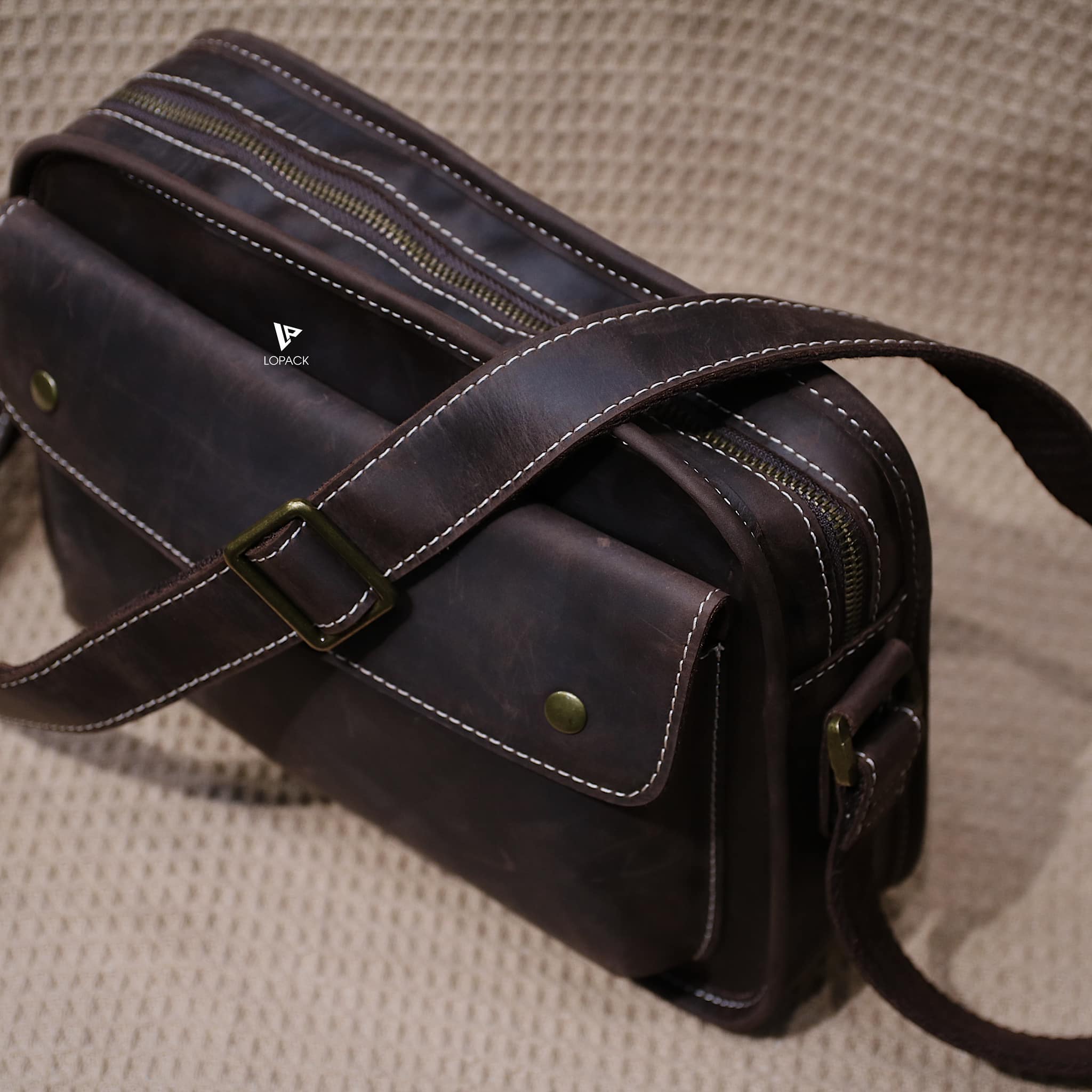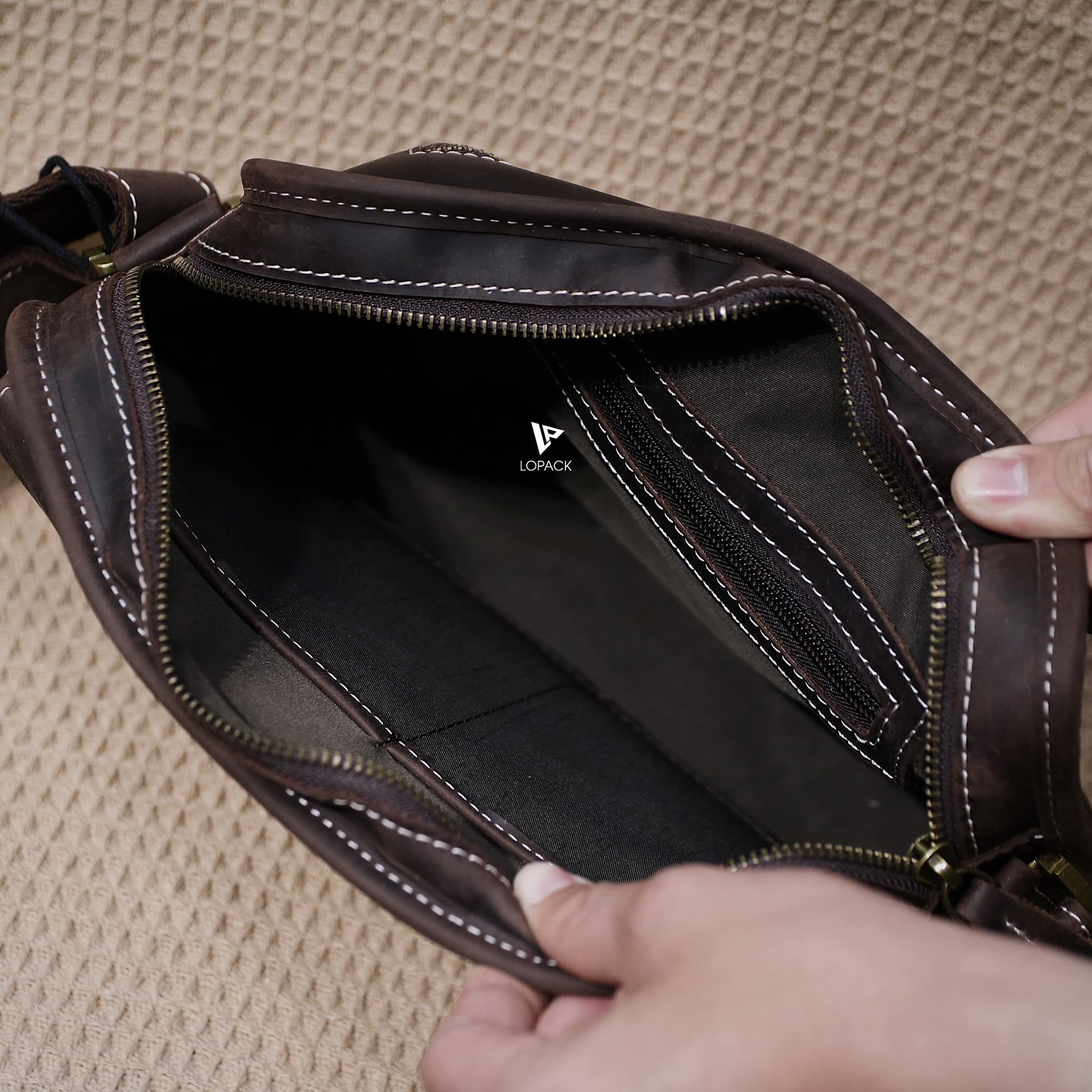 - Túi có 1 ngăn chính và 1 ngăn phụ, dây đeo bọc da hoàn toàn mặt trước.
