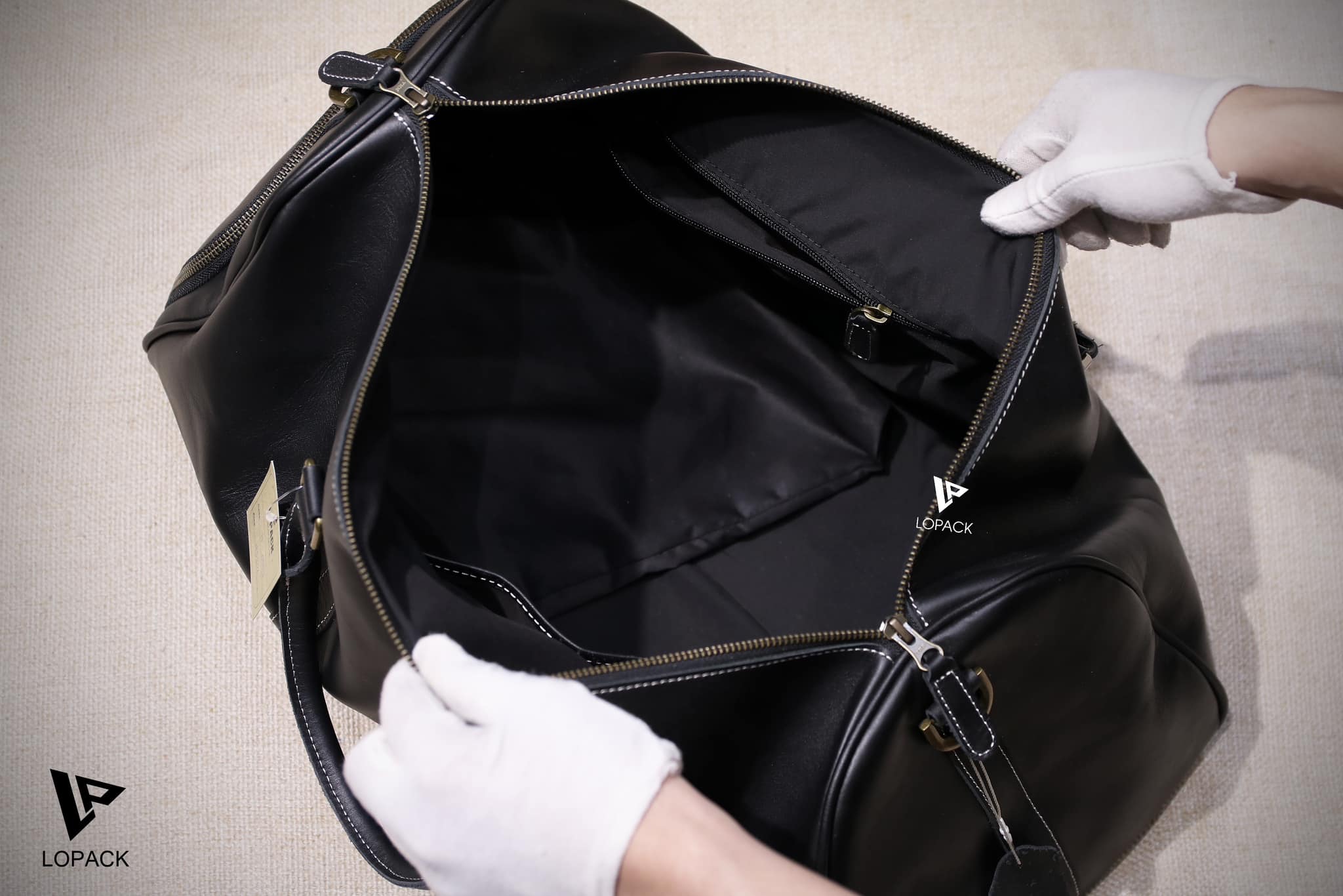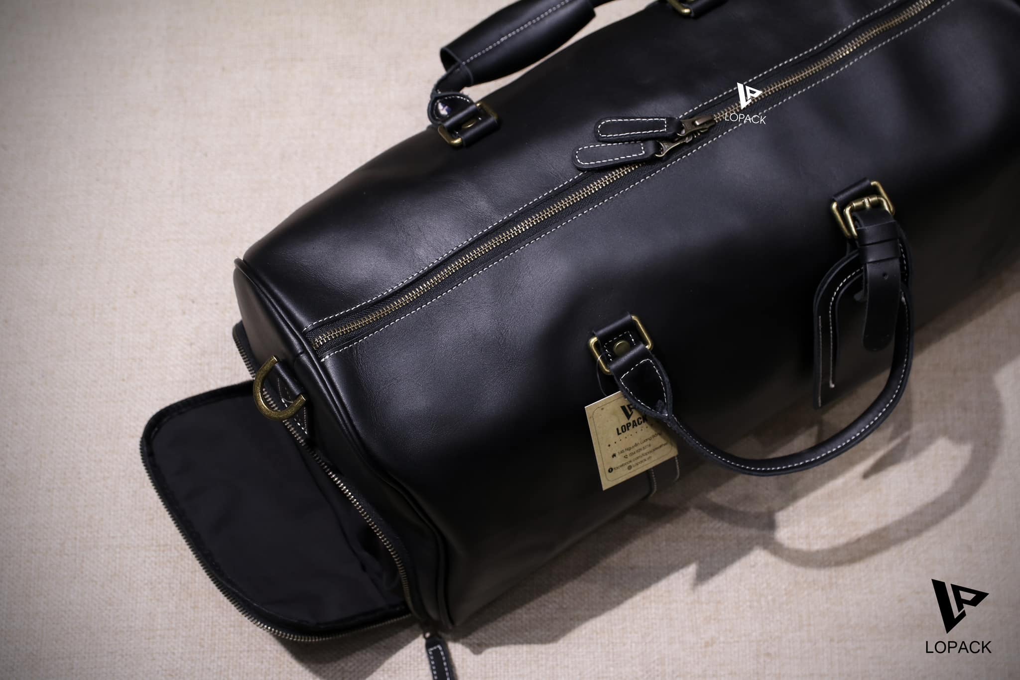 - Da nguyên miếng siêu bền, bên cạnh có ngăn đựng giày tiện lợi.