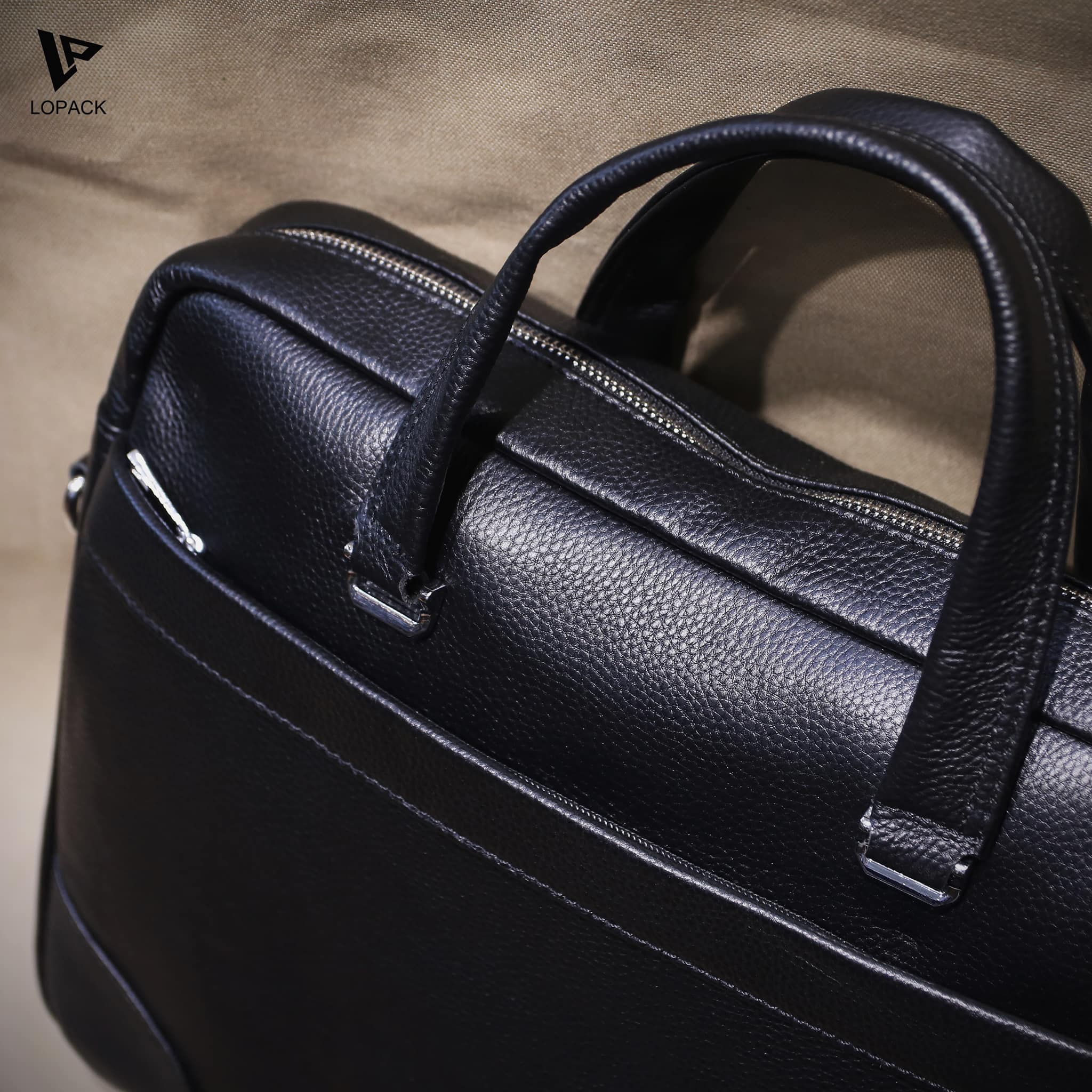 - 2 mặt túi giống nhau, bề mặt đen trơn, dập vân hạt đồng đều.