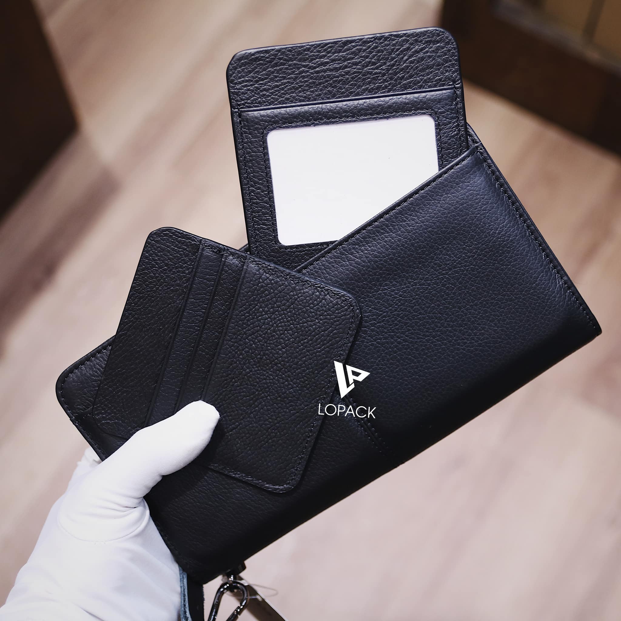 - Mặt trước có 2 ví thẻ mini có thể tháo rời.