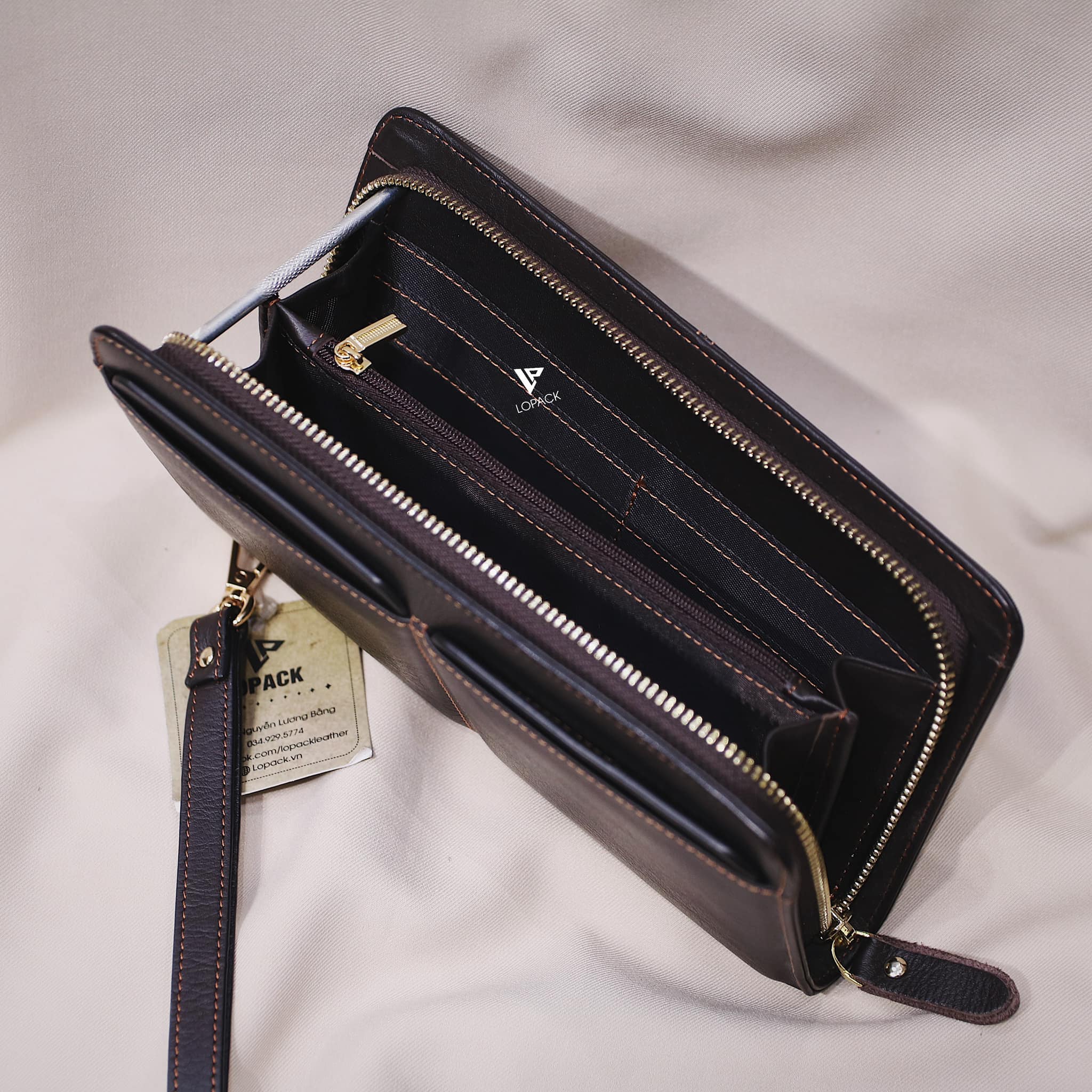 - Ngăn chính rộng rãi đựng thoải mái điện thoại và tiền thẻ.