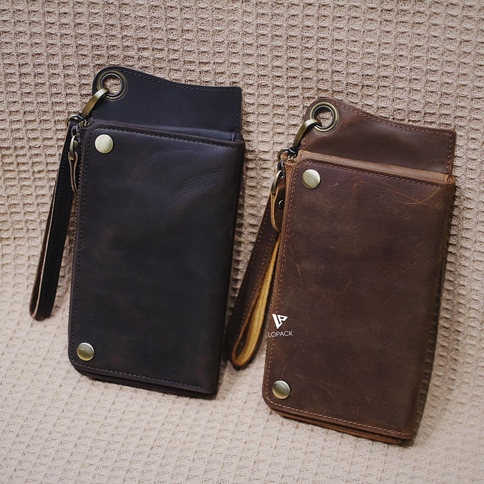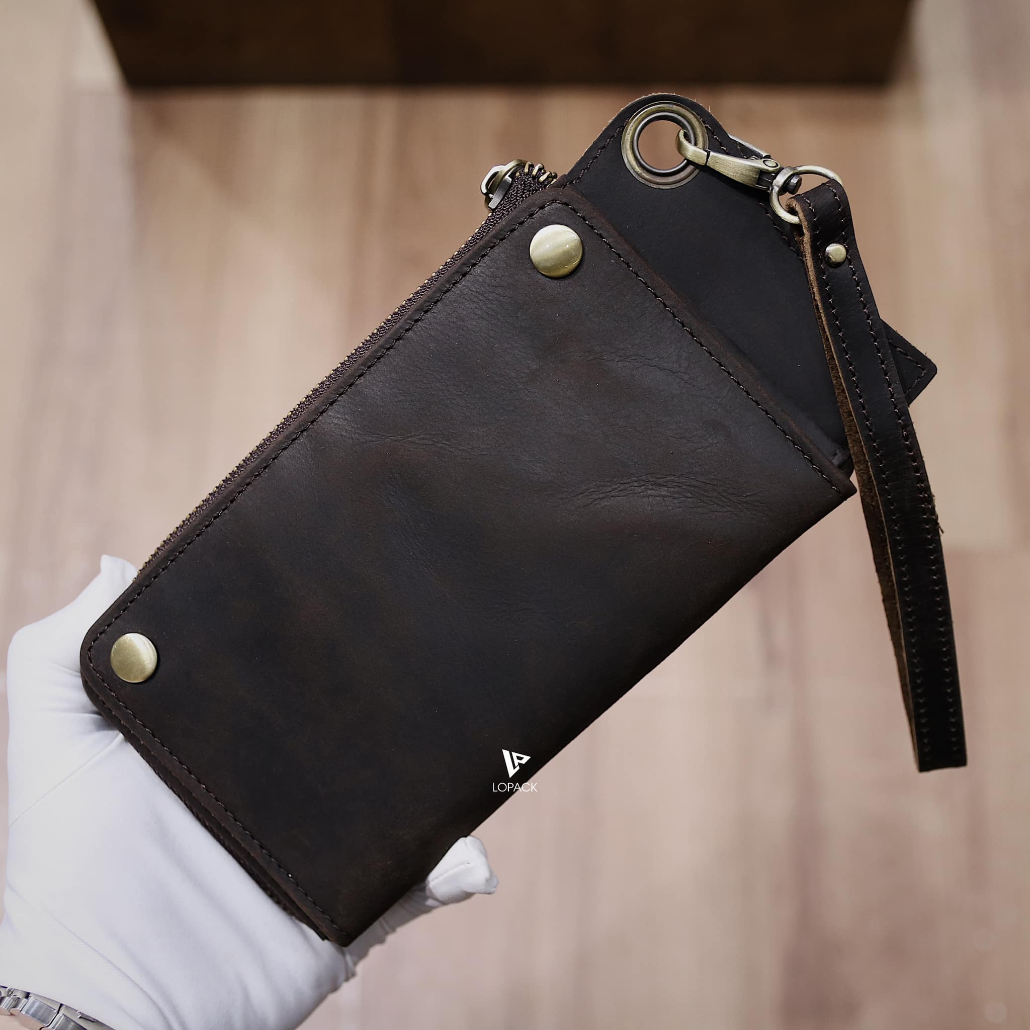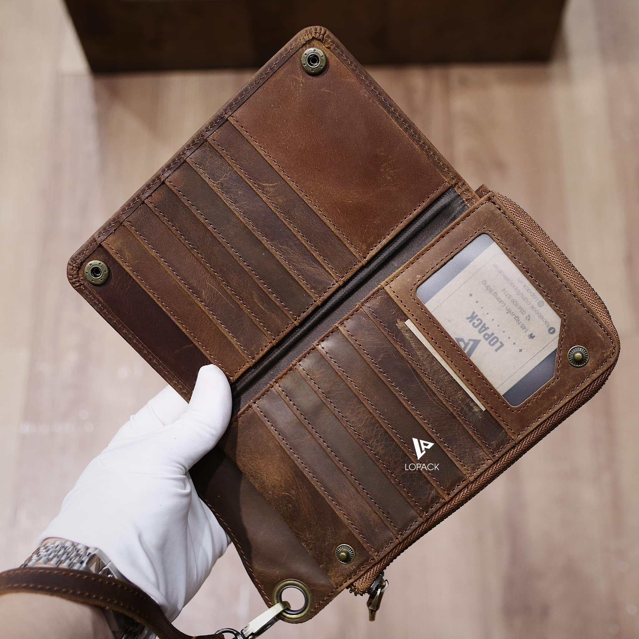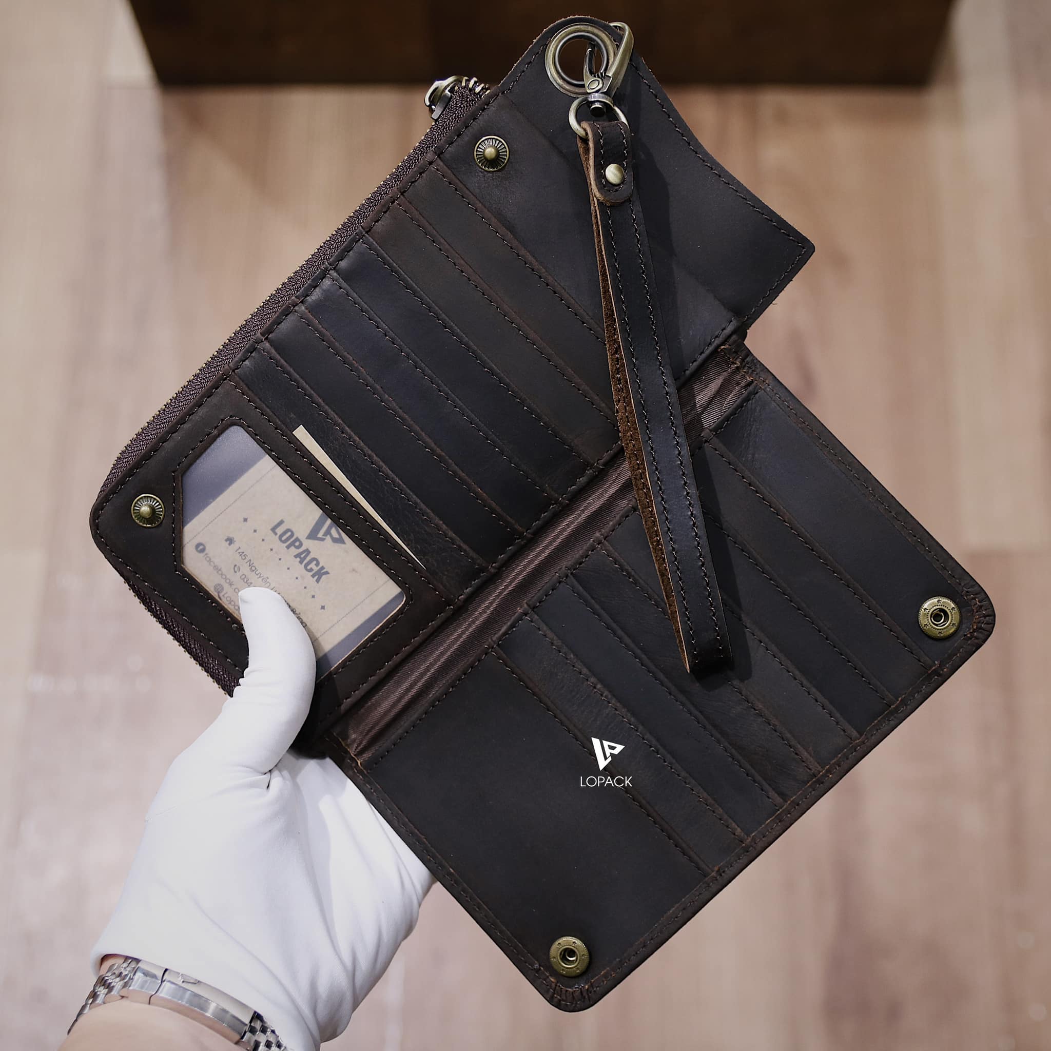 - Dây cầm tay móc trực tiếp vào khuyên tròn ở phần tai ví chắc chắn.
