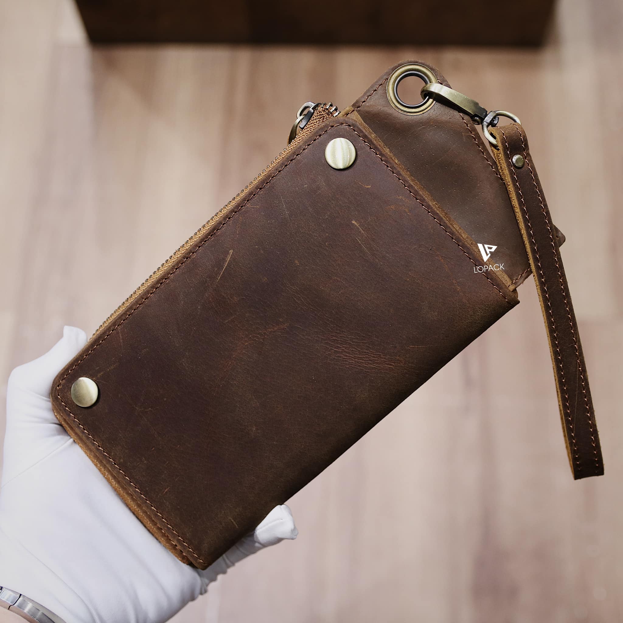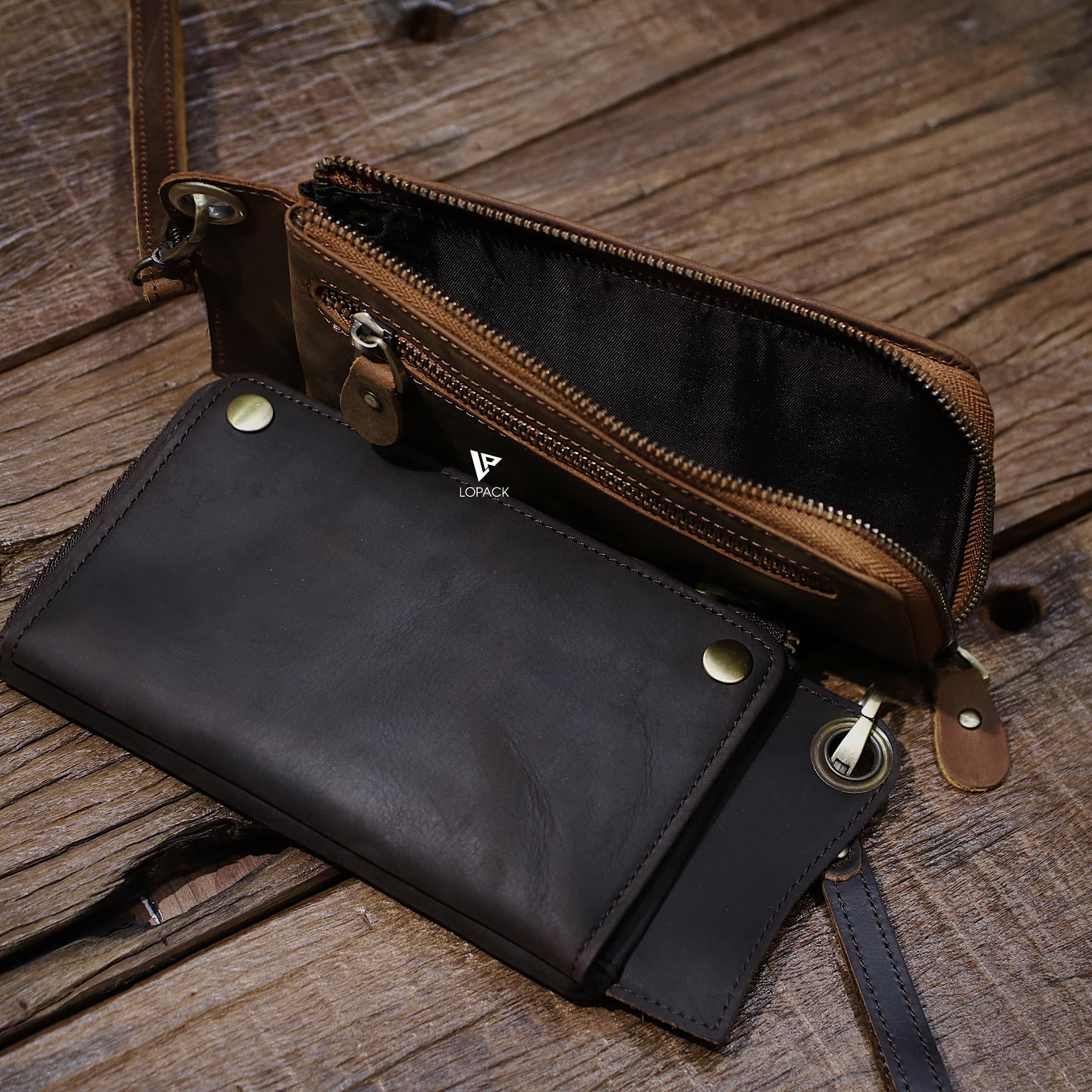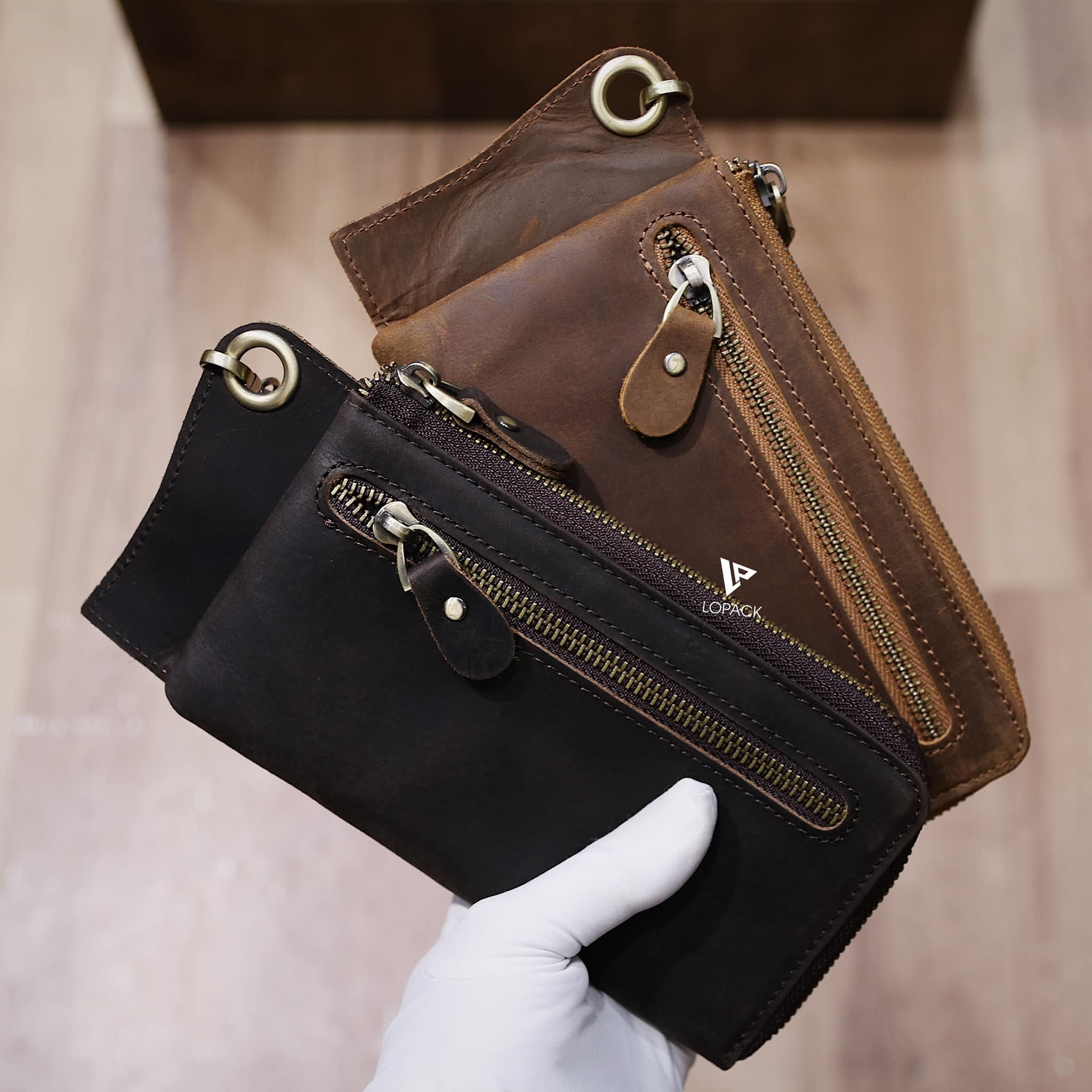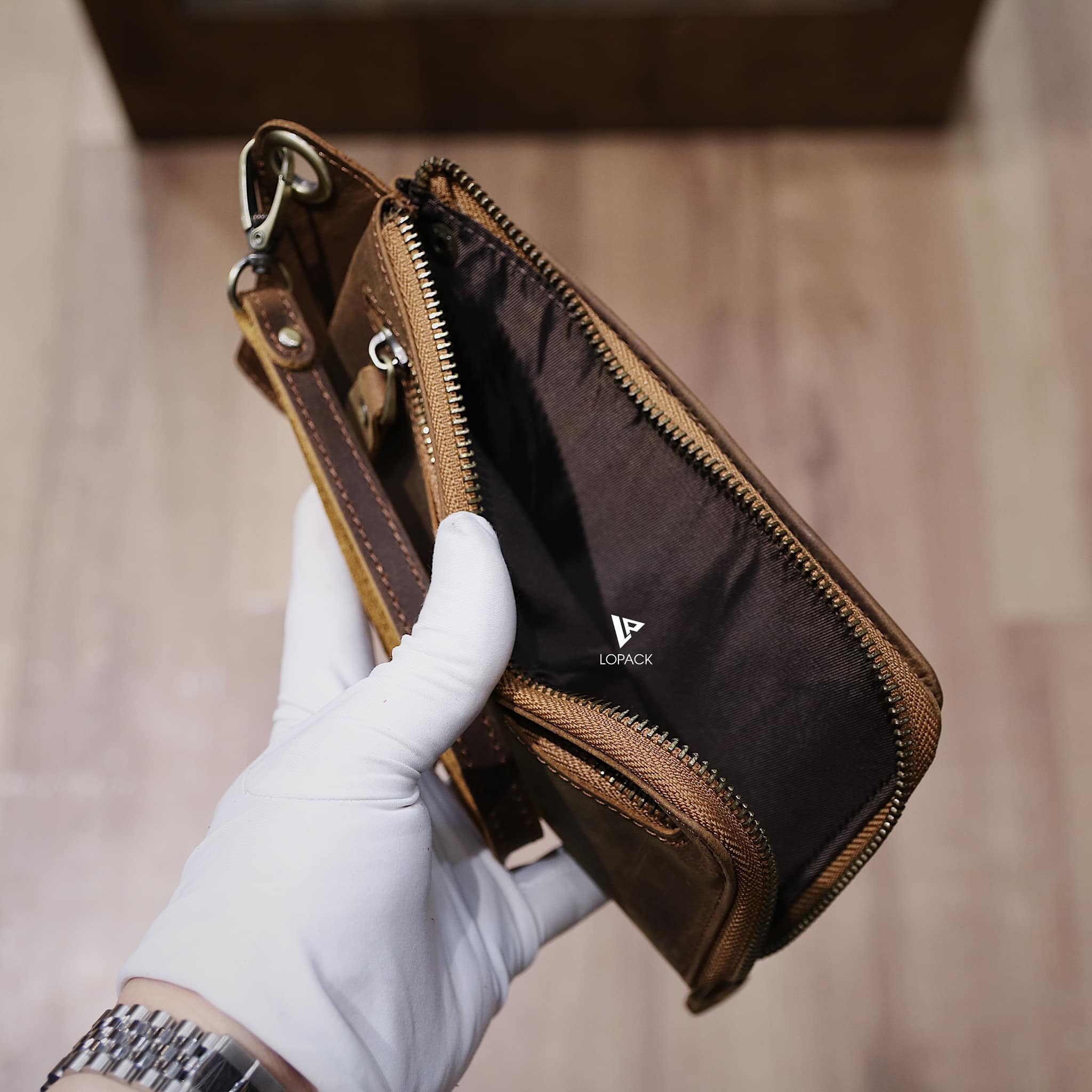 - Dây cầm tay móc trực tiếp vào khuyên tròn ở phần tai ví chắc chắn.