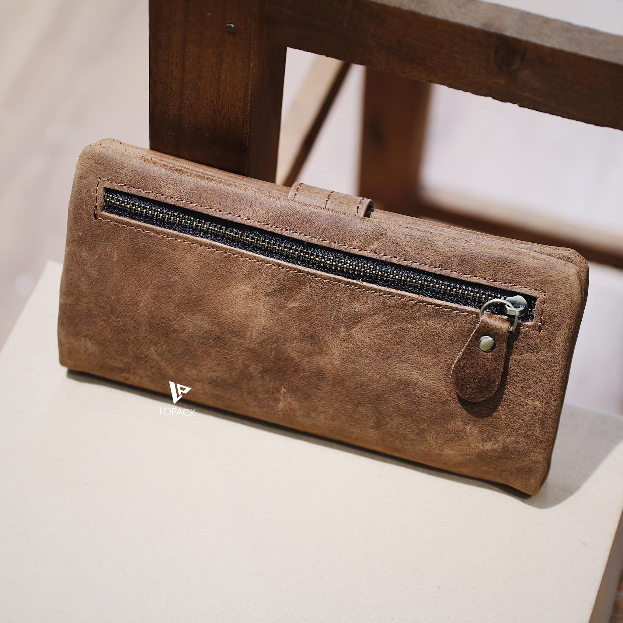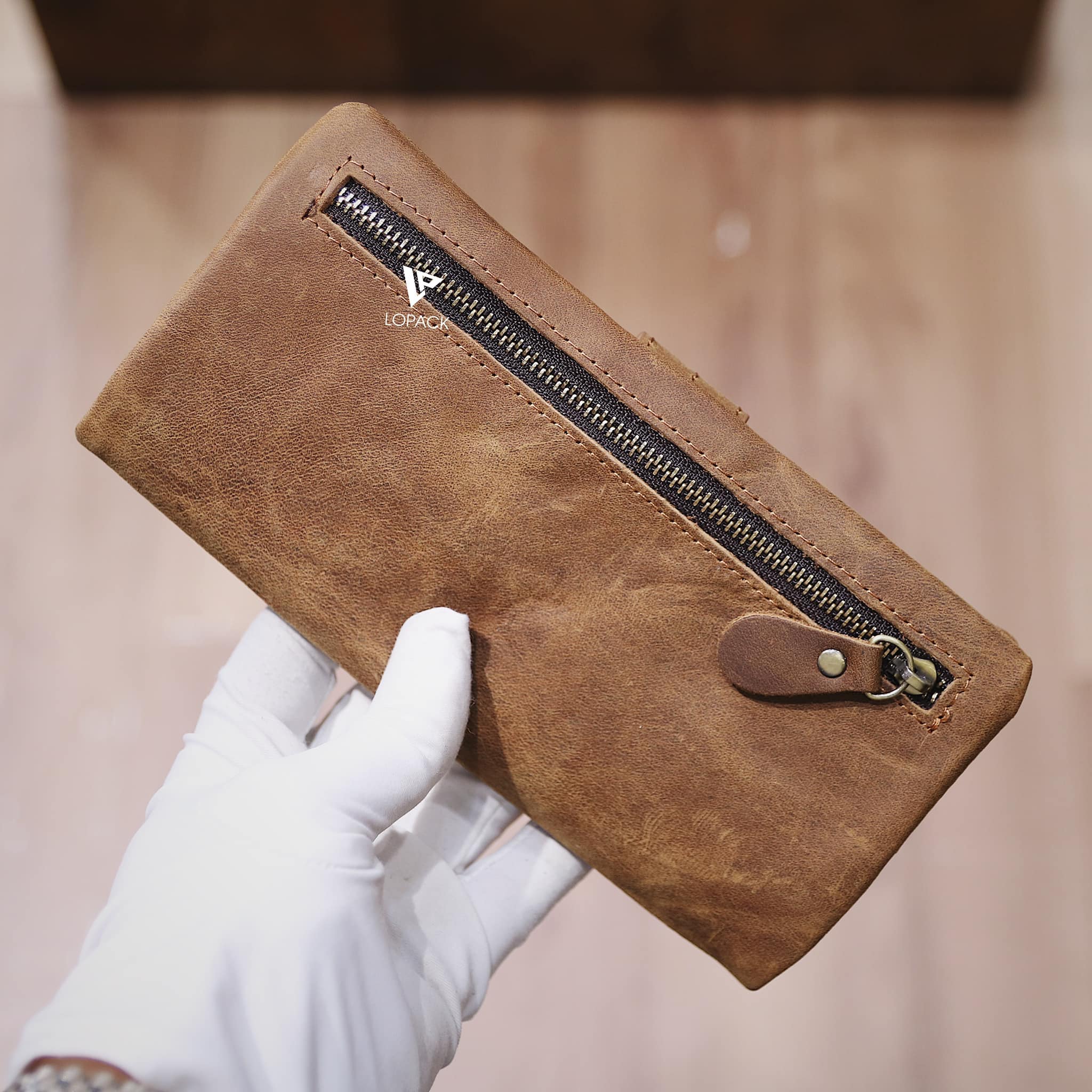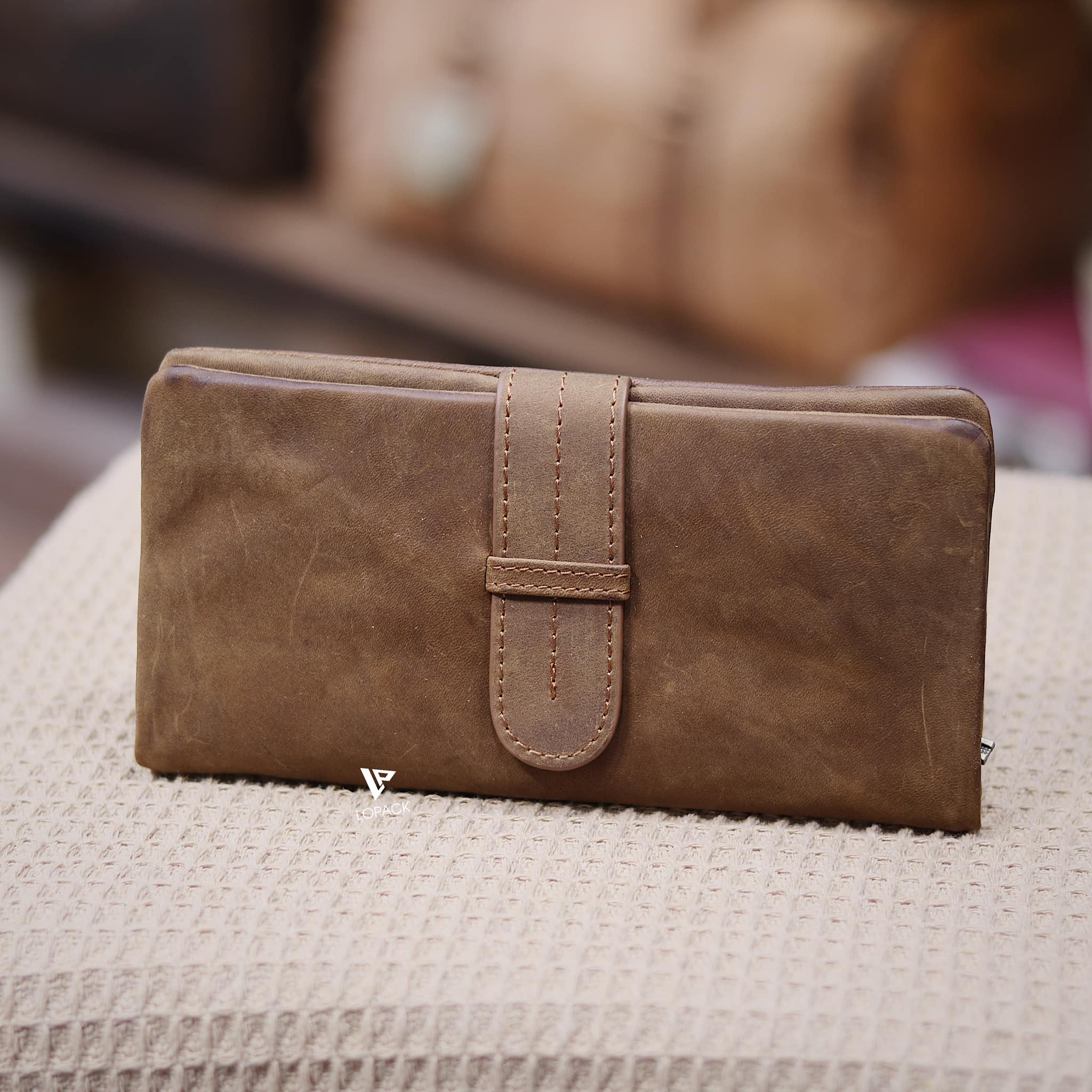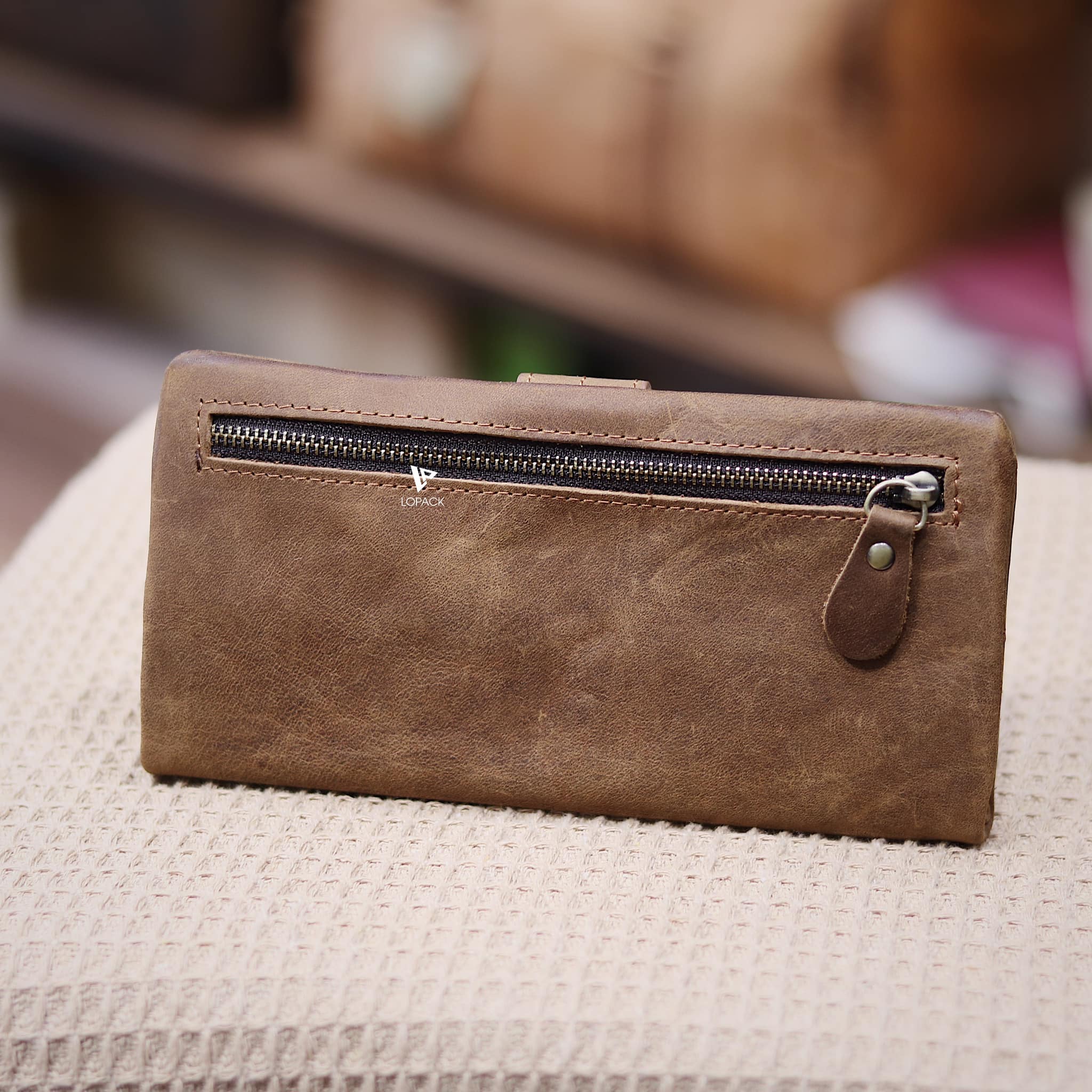 - Màu Nâu bò nổi bật, cạnh ví may ẩn vào trong, form ví mềm.