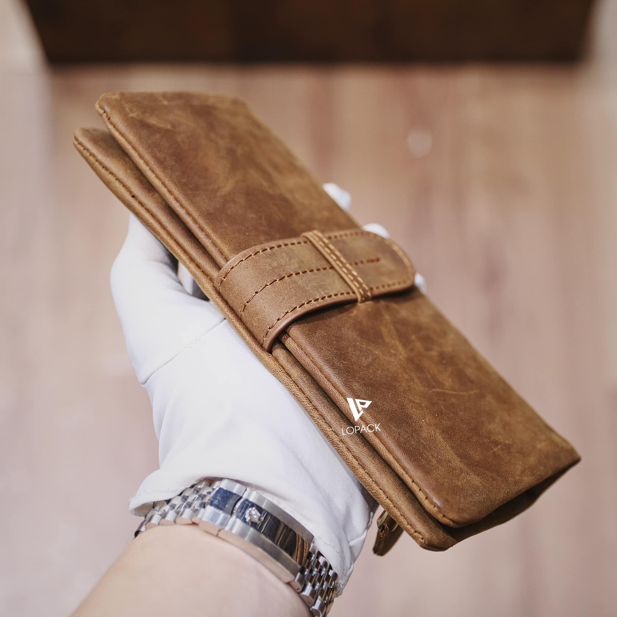 - Giữ bằng cài da bên ngoài nổi bật.