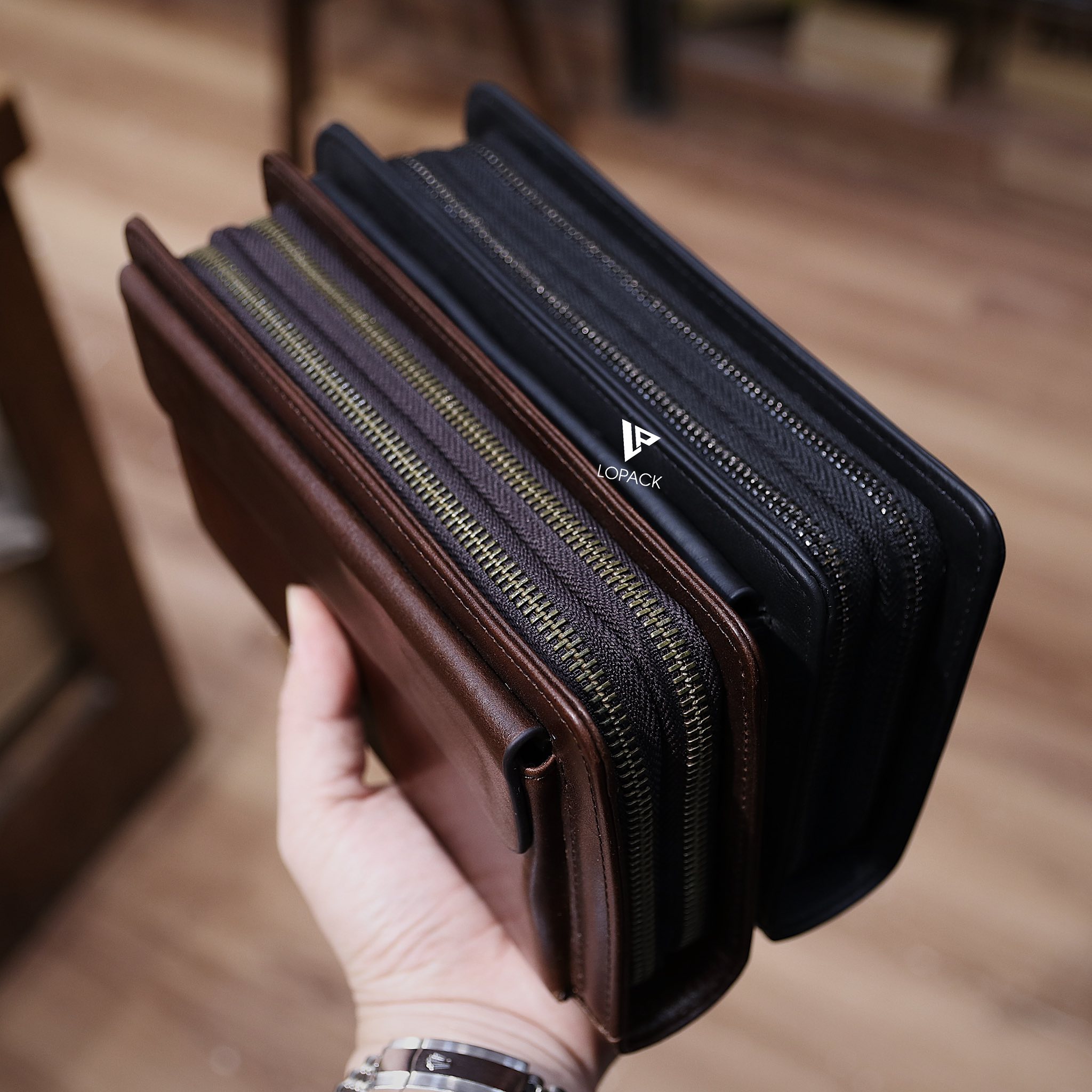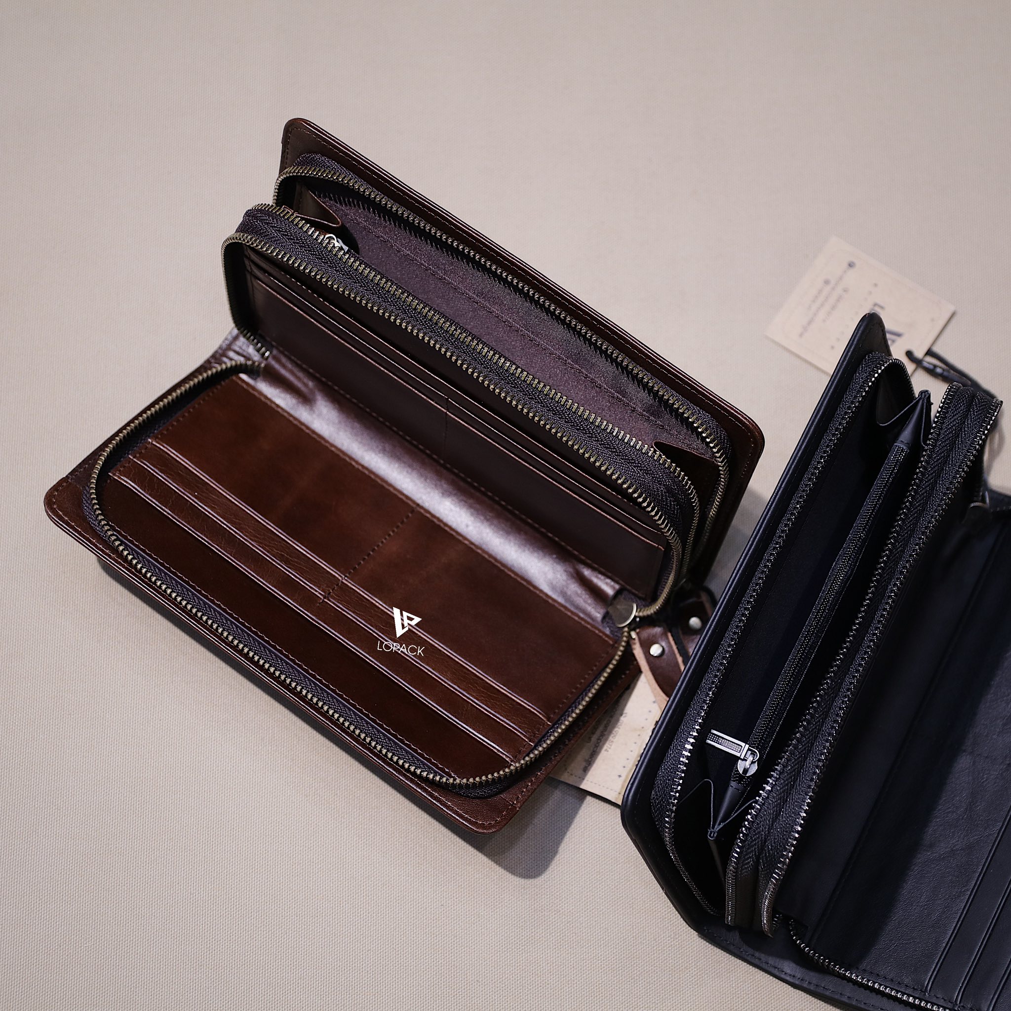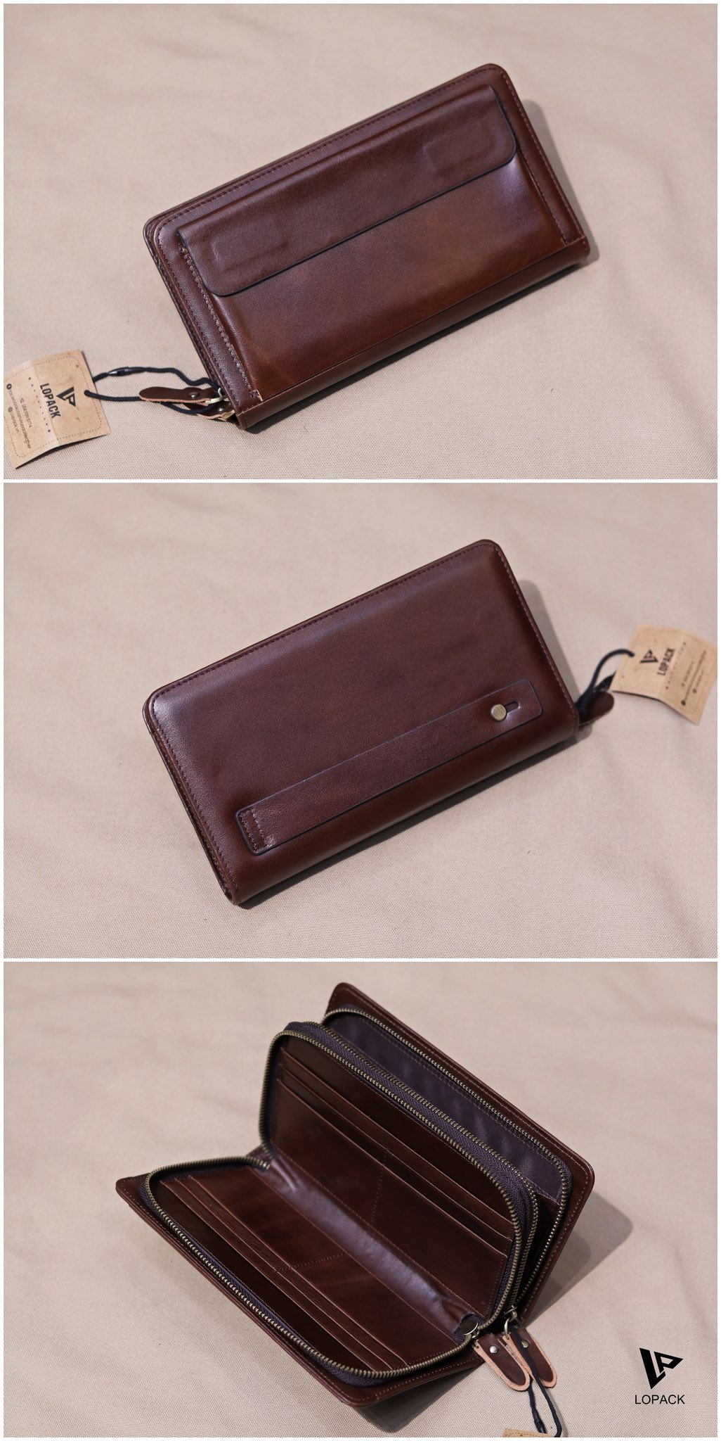 - 2 ngăn khoá, ví có thể đựng đến 3 điện thoại và vẫn đựng tiền thẻ thoải mái.