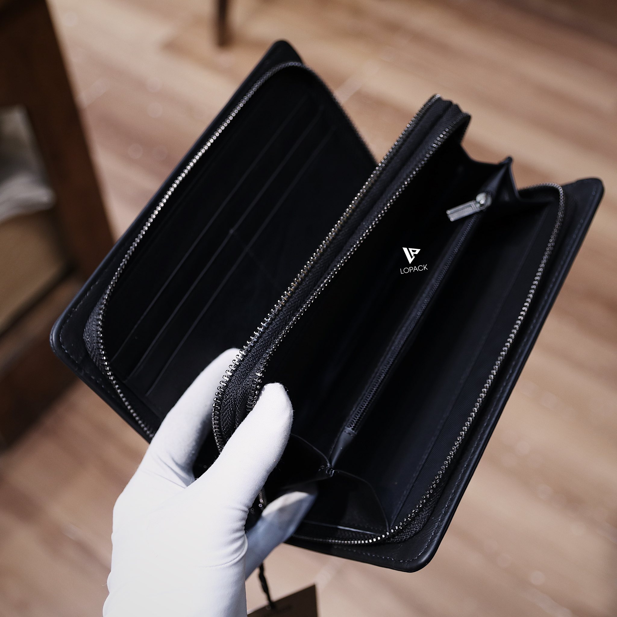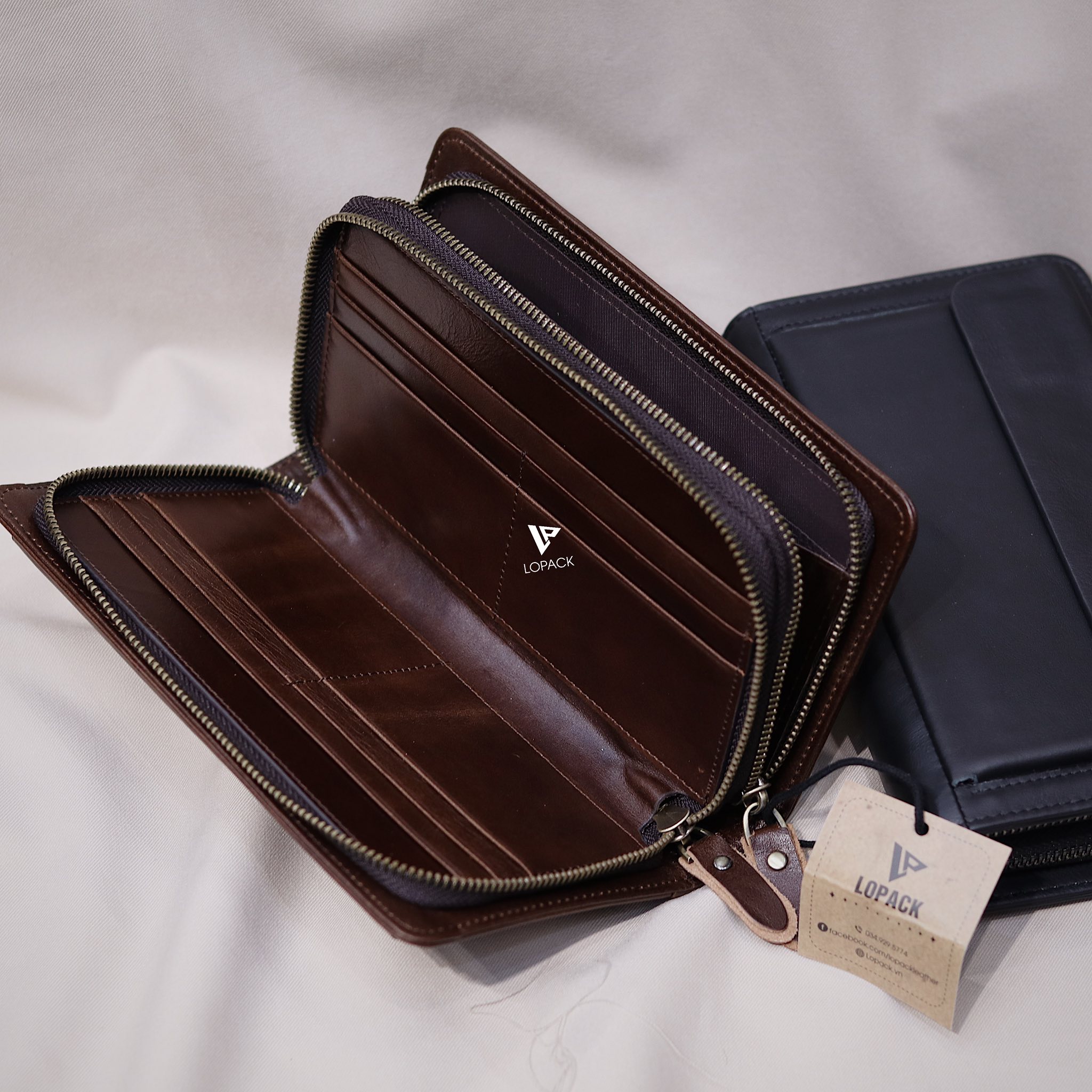 - 2 ngăn khoá, ví có thể đựng đến 3 điện thoại và vẫn đựng tiền thẻ thoải mái.