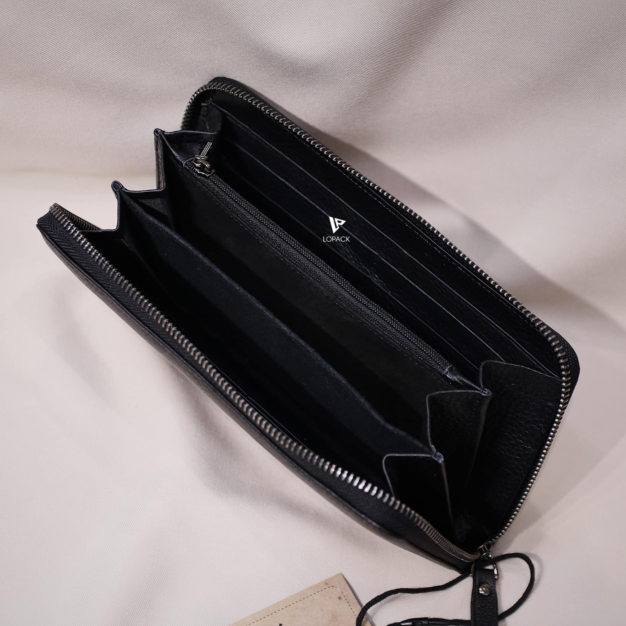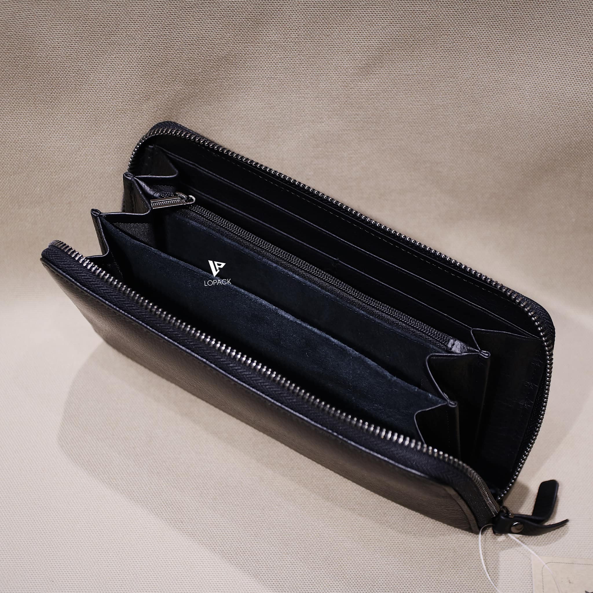 - Thiết kế 1 ngăn khoá bên trong chia nhiều ngăn đựng tiền và thẻ, lót full da.