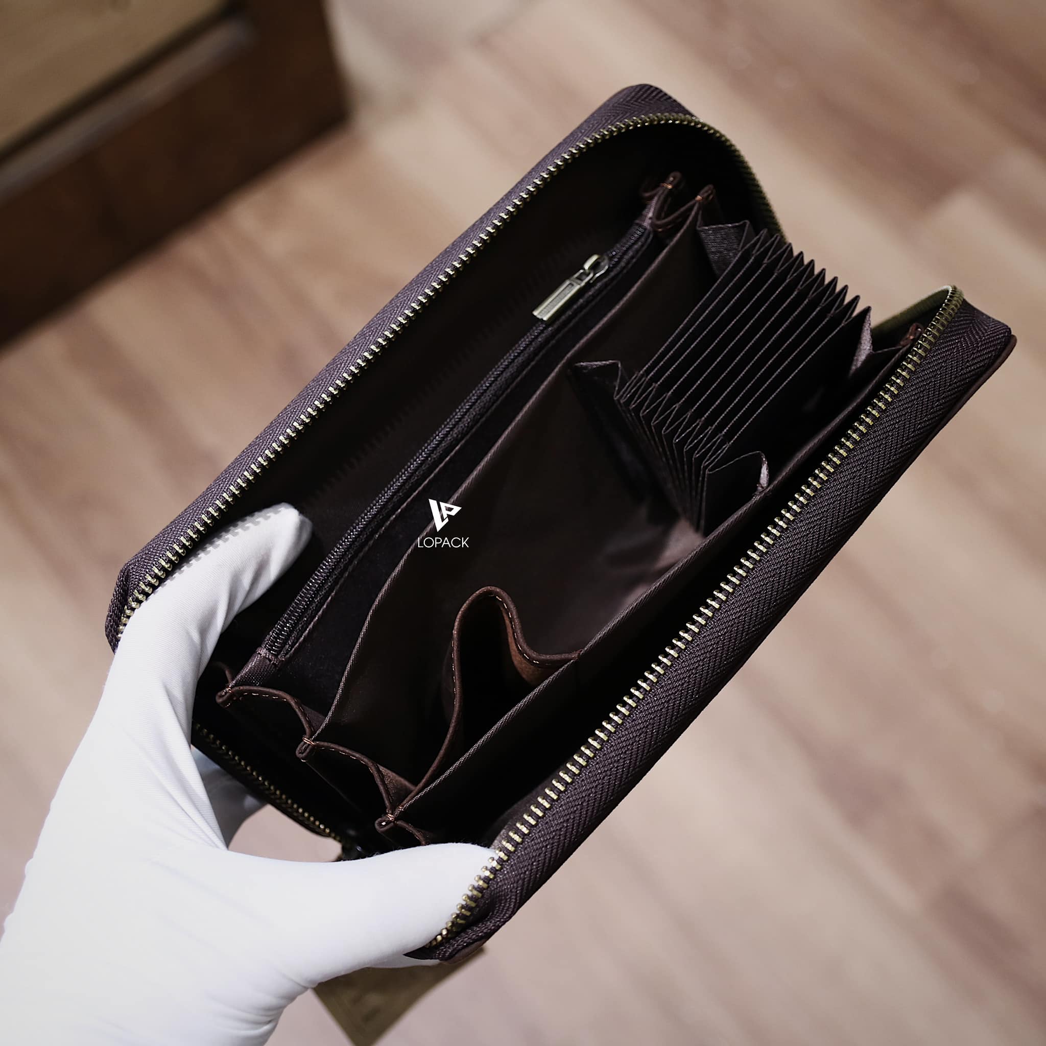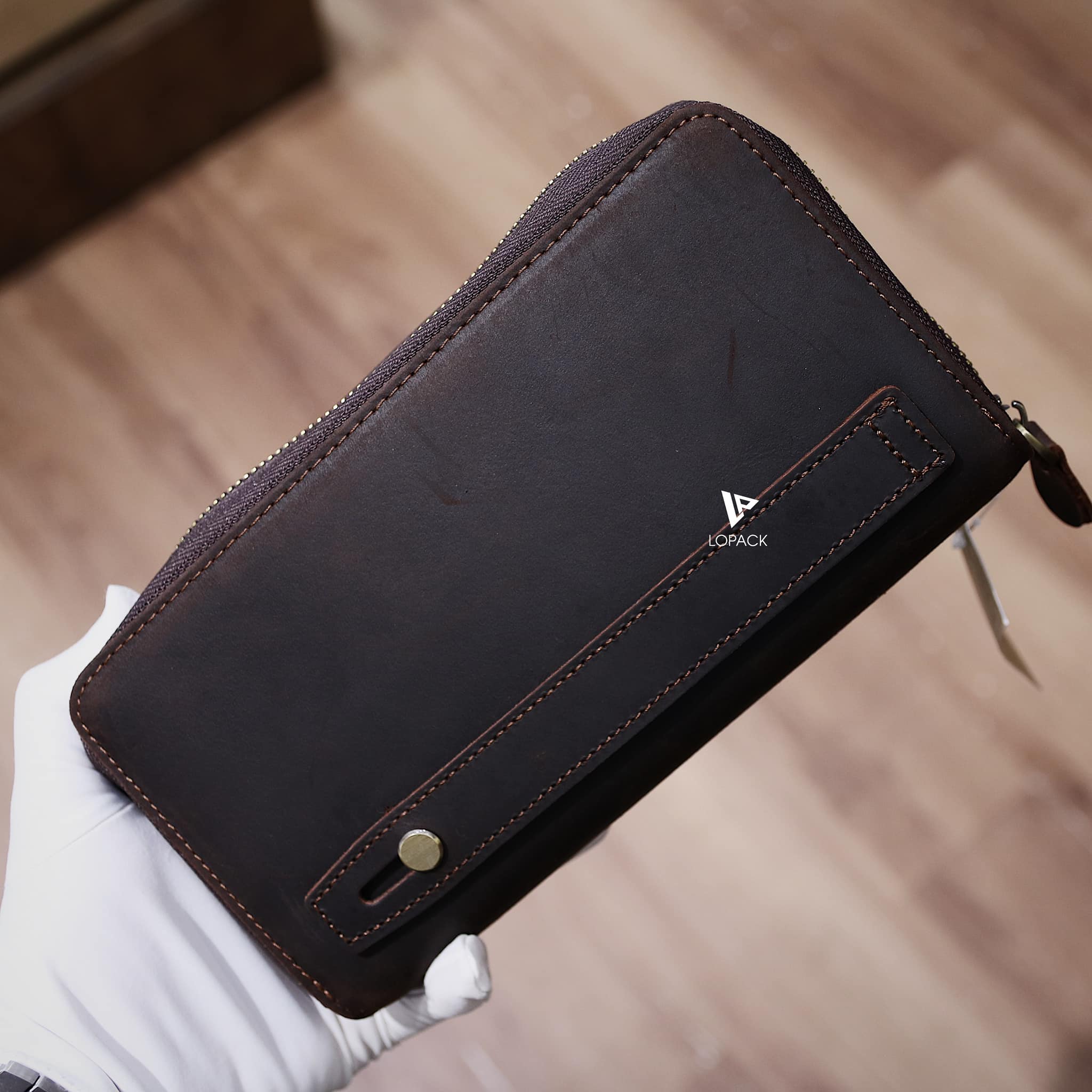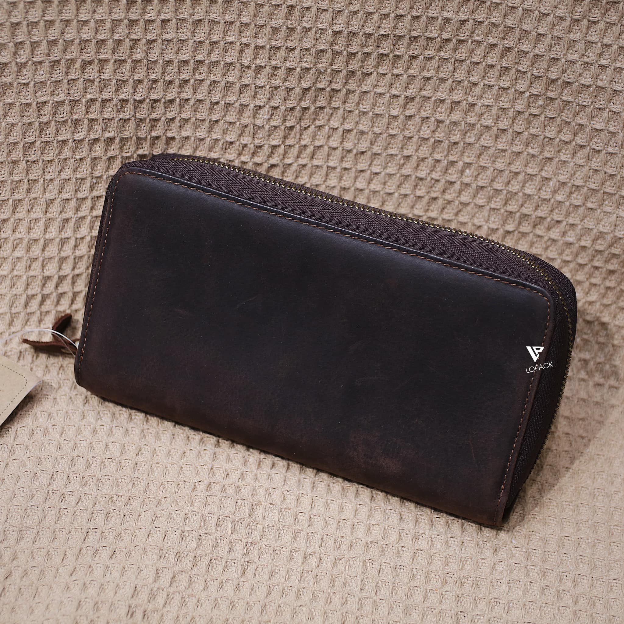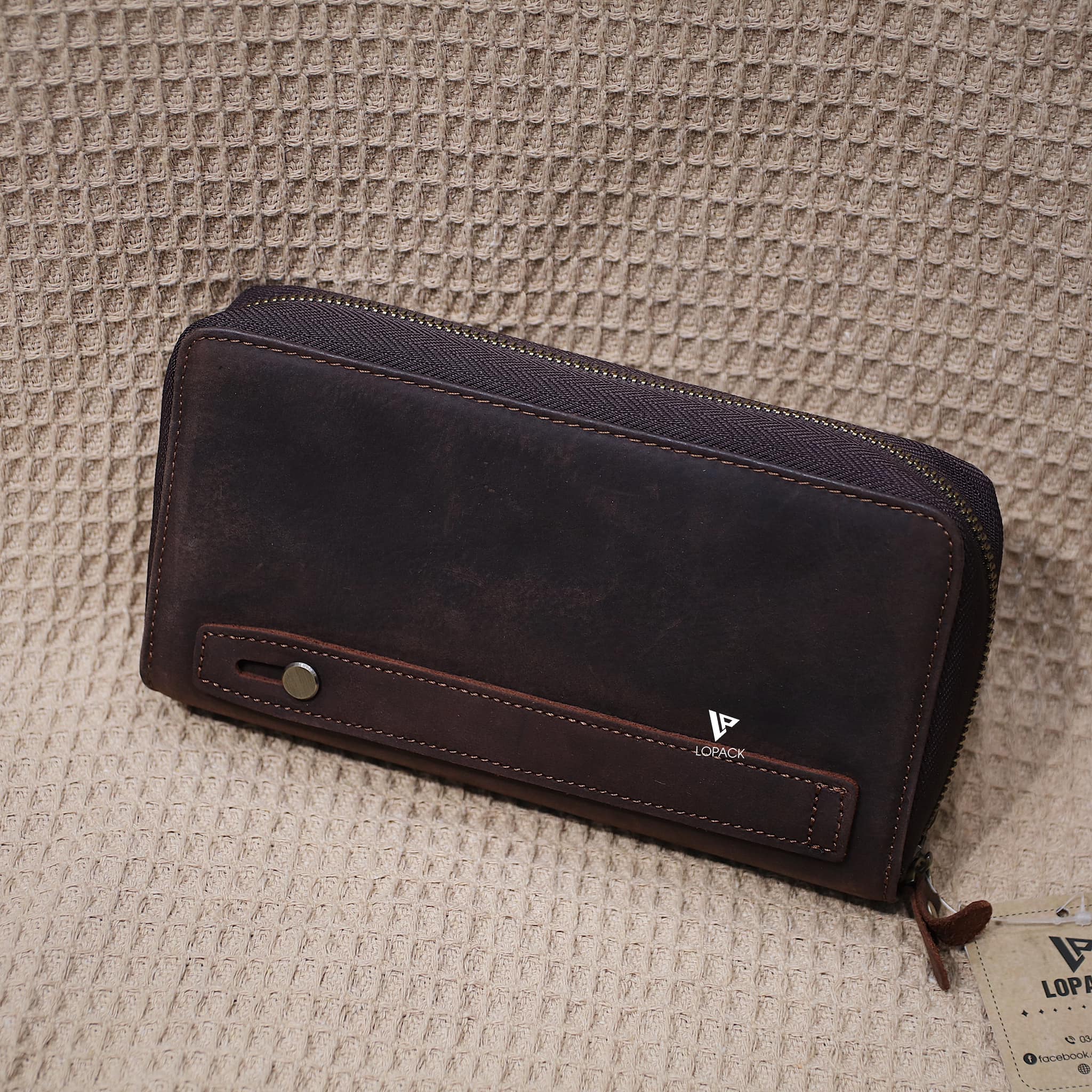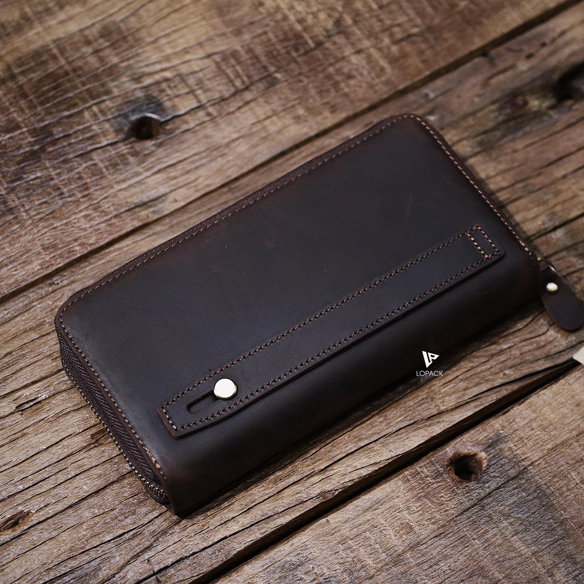- Ví dài kéo khoá size to màu nâu, phong cách bụi bặm.