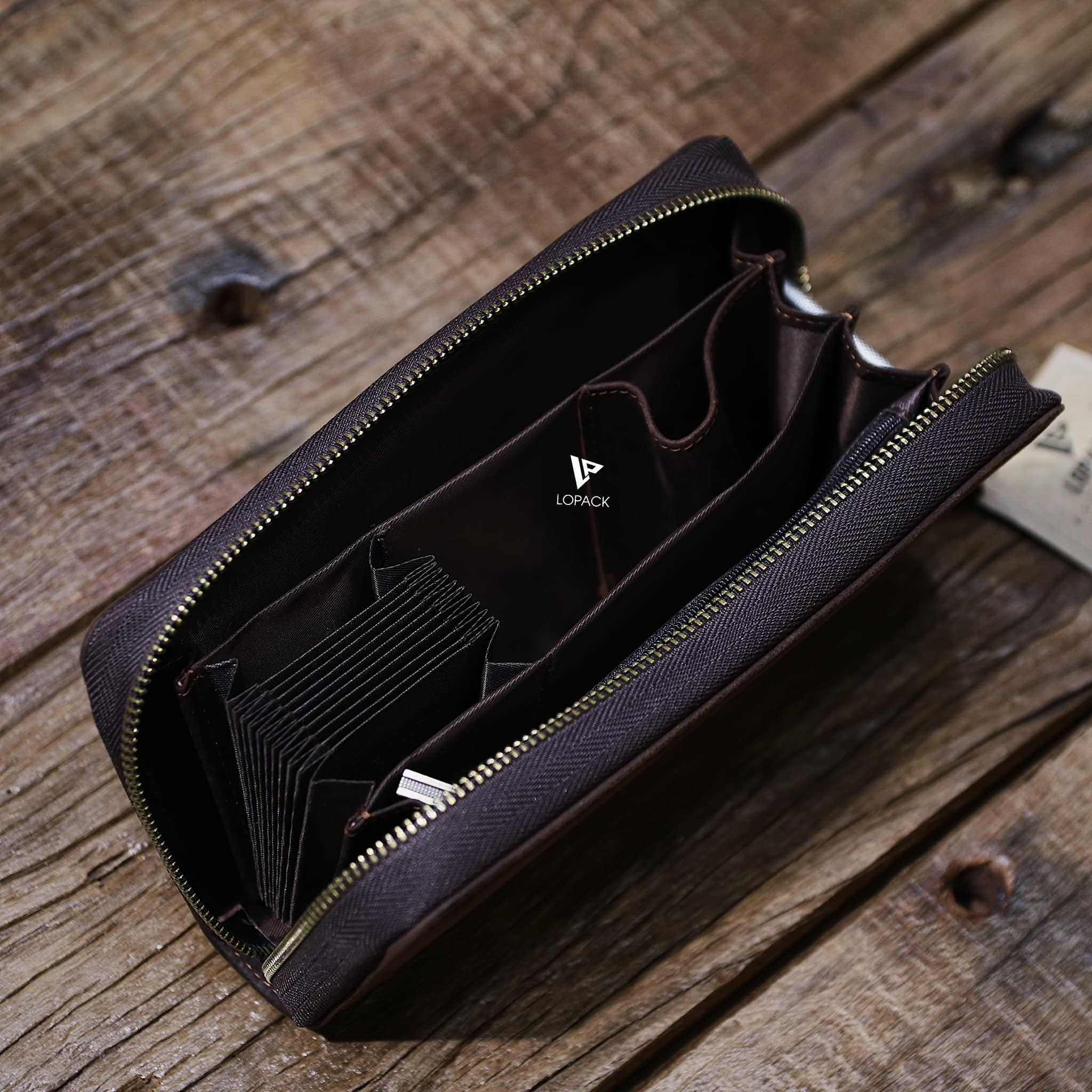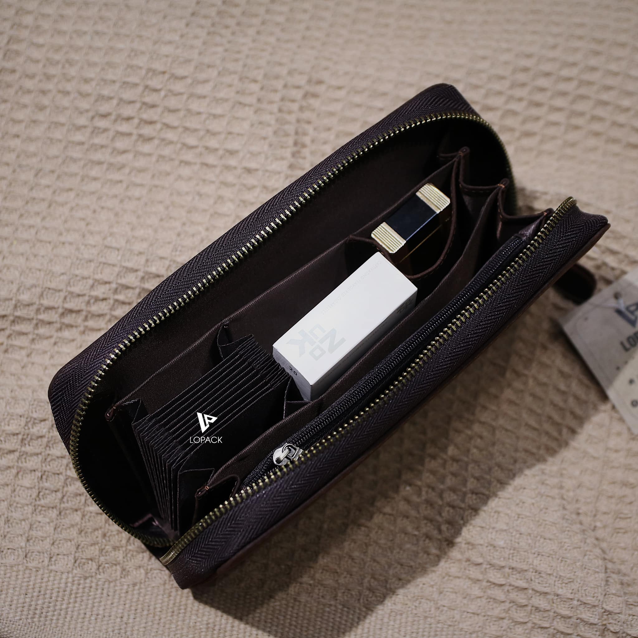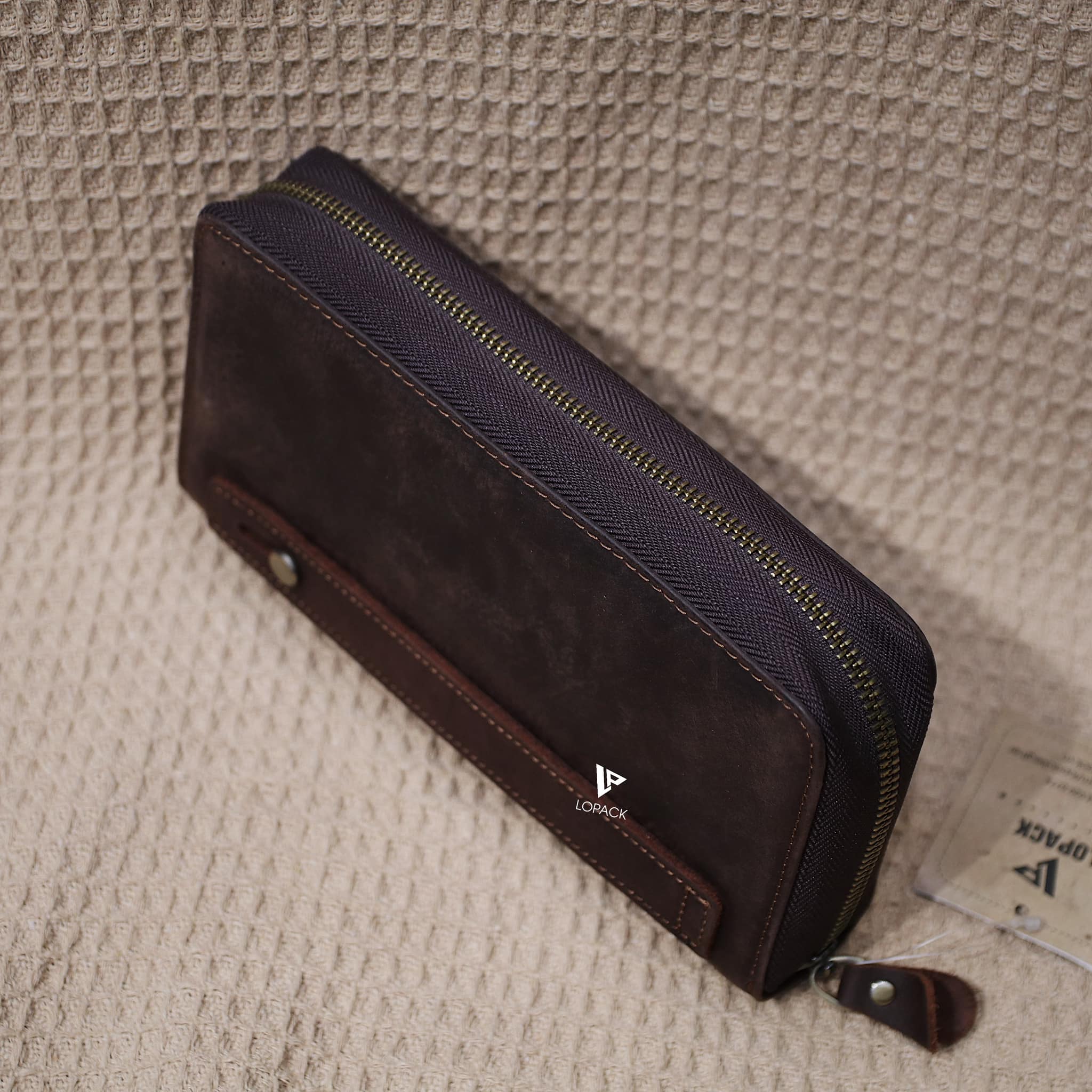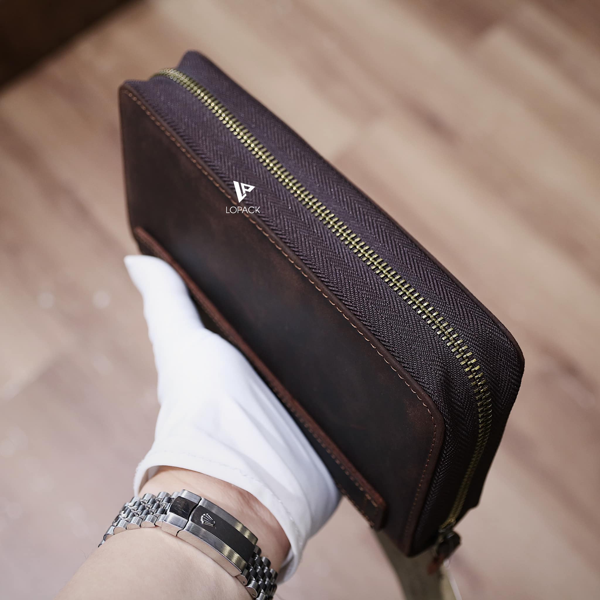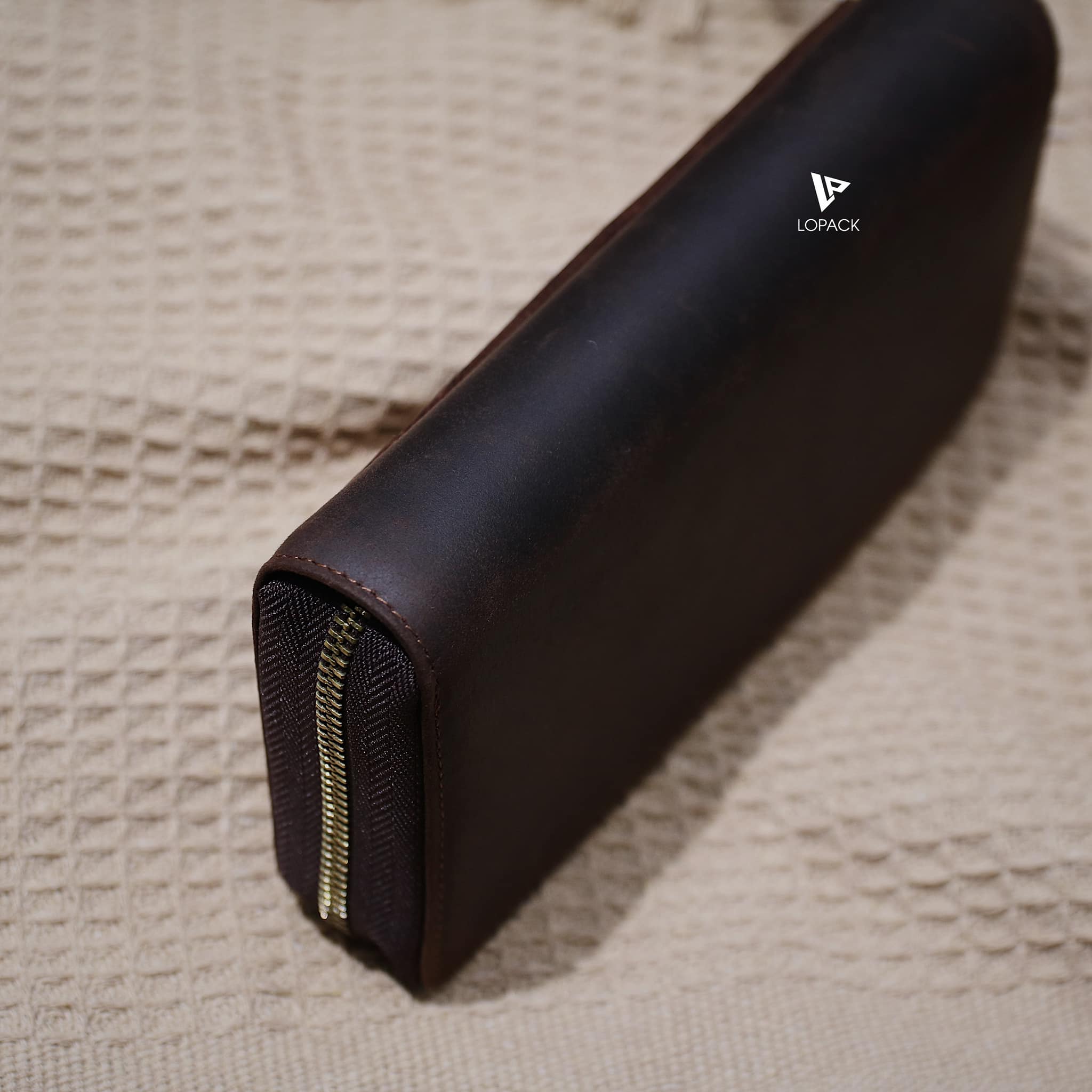 - Ví dài kéo khoá size to màu nâu, phong cách bụi bặm.