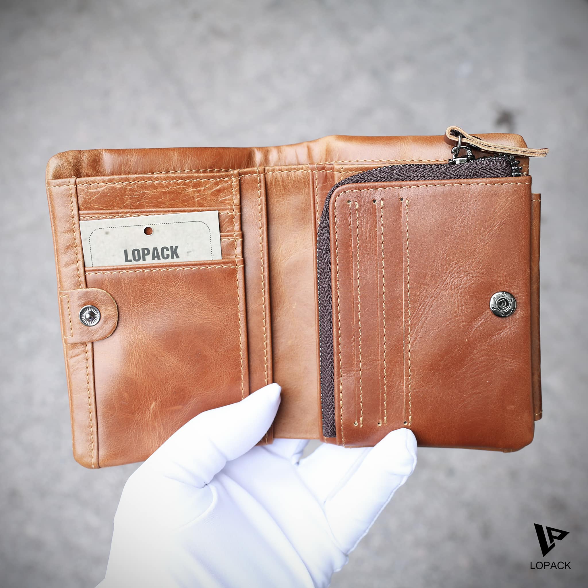 - Đường chỉ may ẩn tinh tế, bên trong thiết kế nhiều ngăn đựng thẻ.